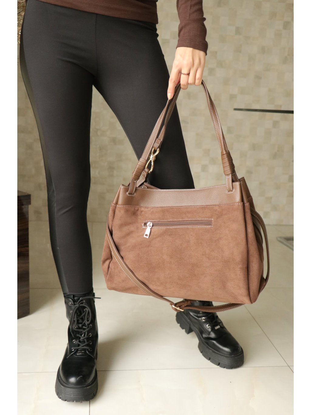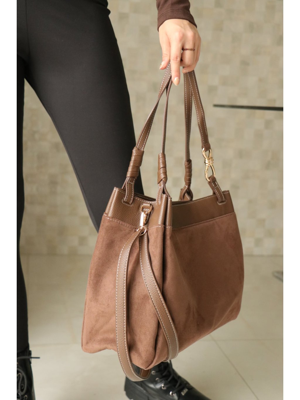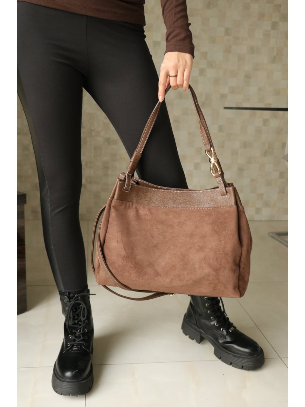# Dámská hnědá broušená kabelka z umělé kůže