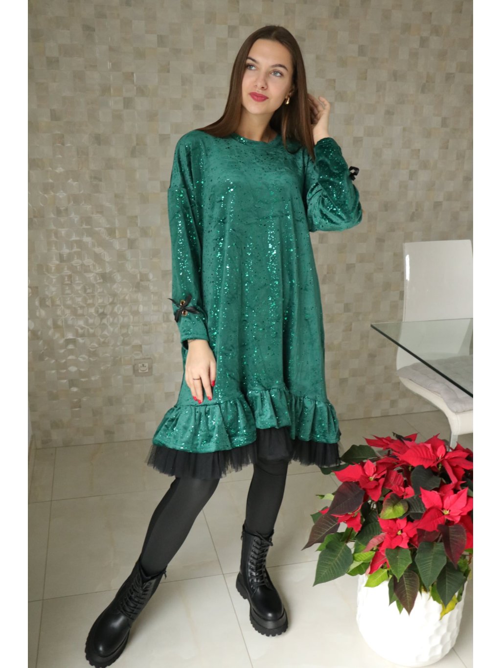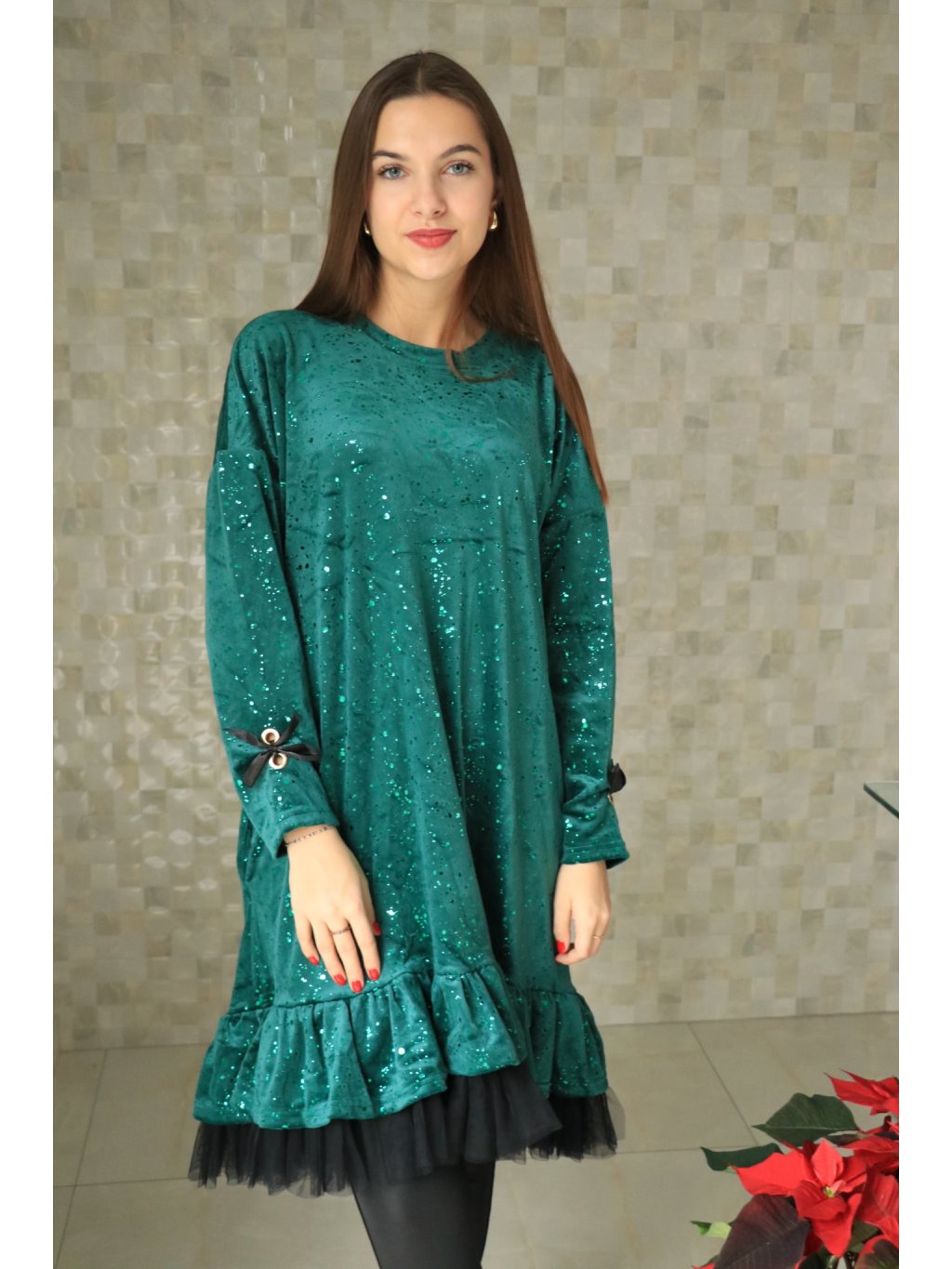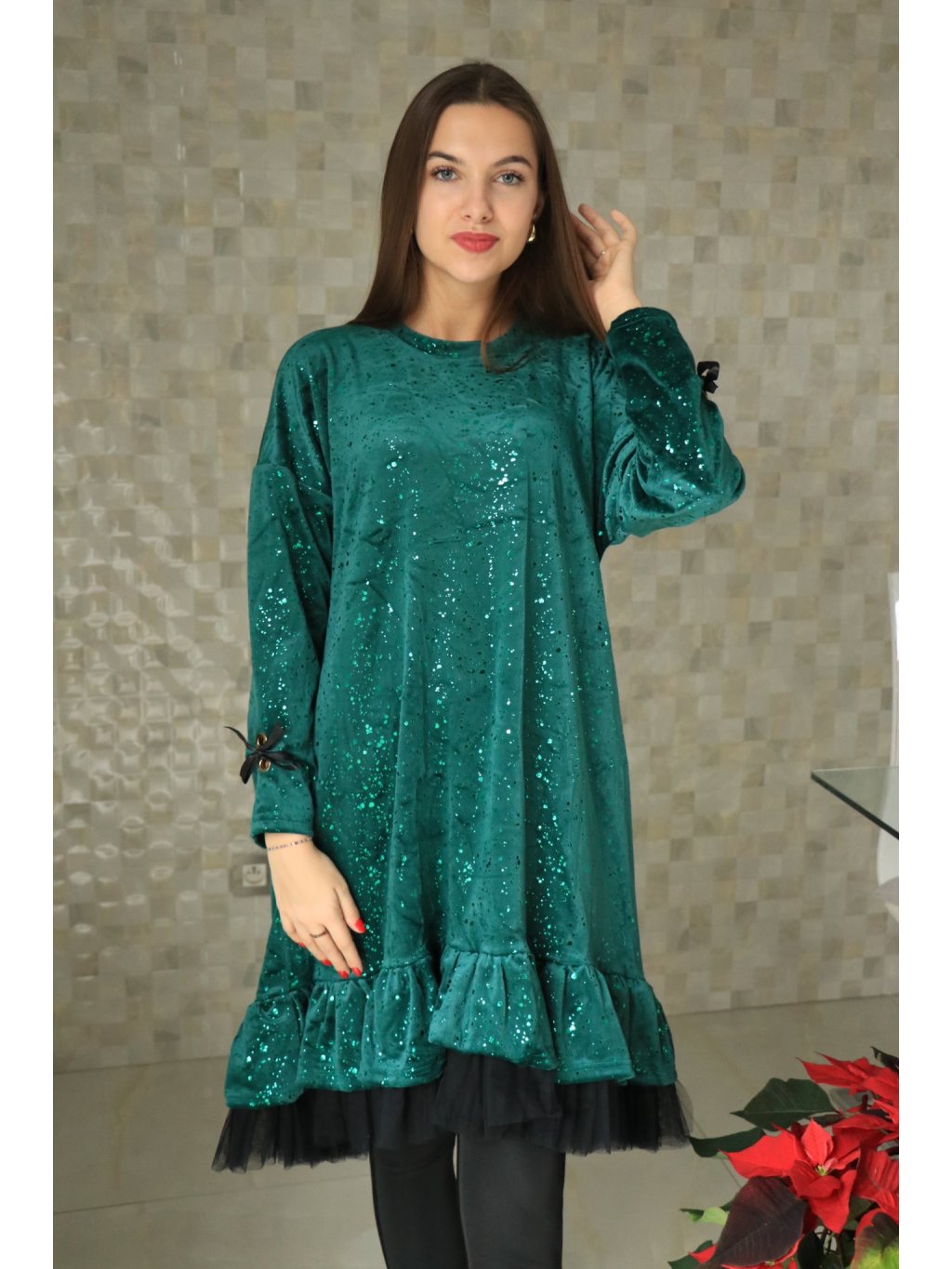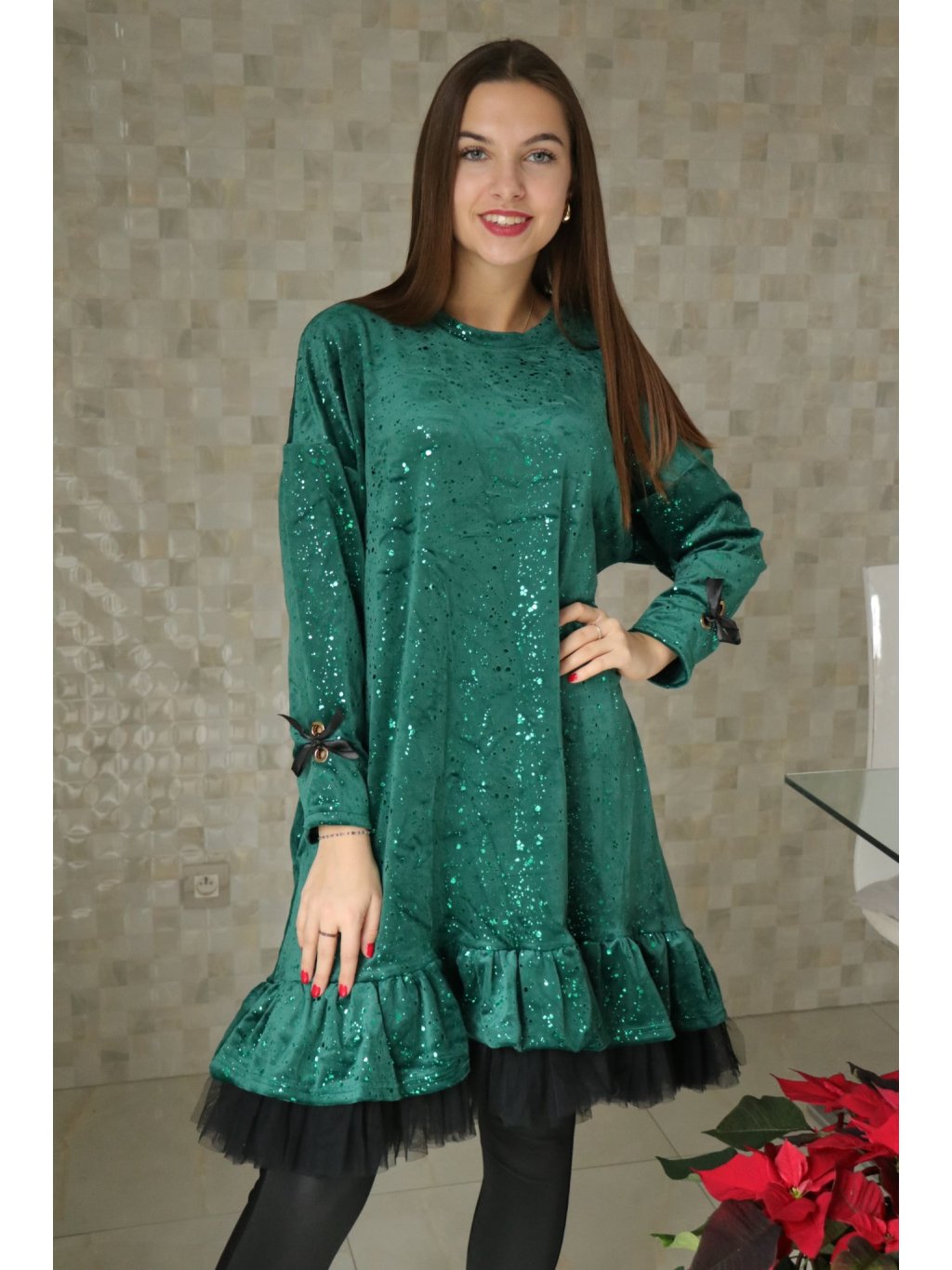 Dámské zelené šaty zdobené tylem
