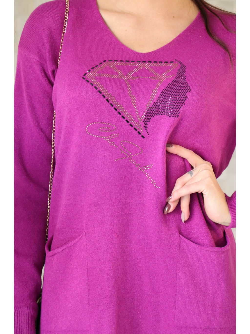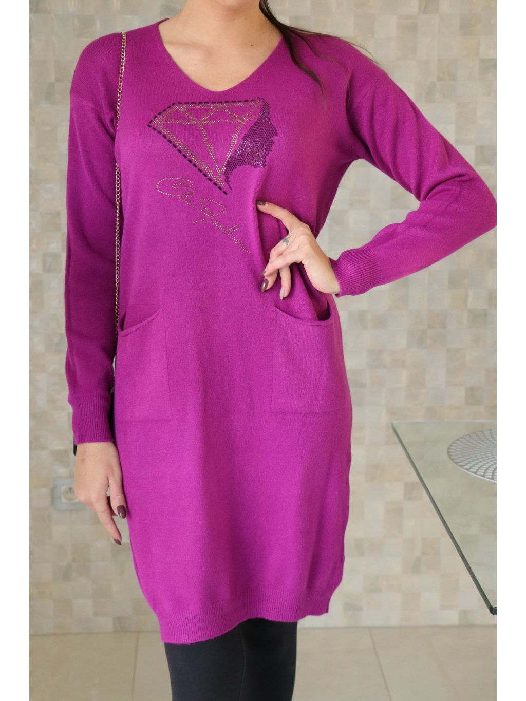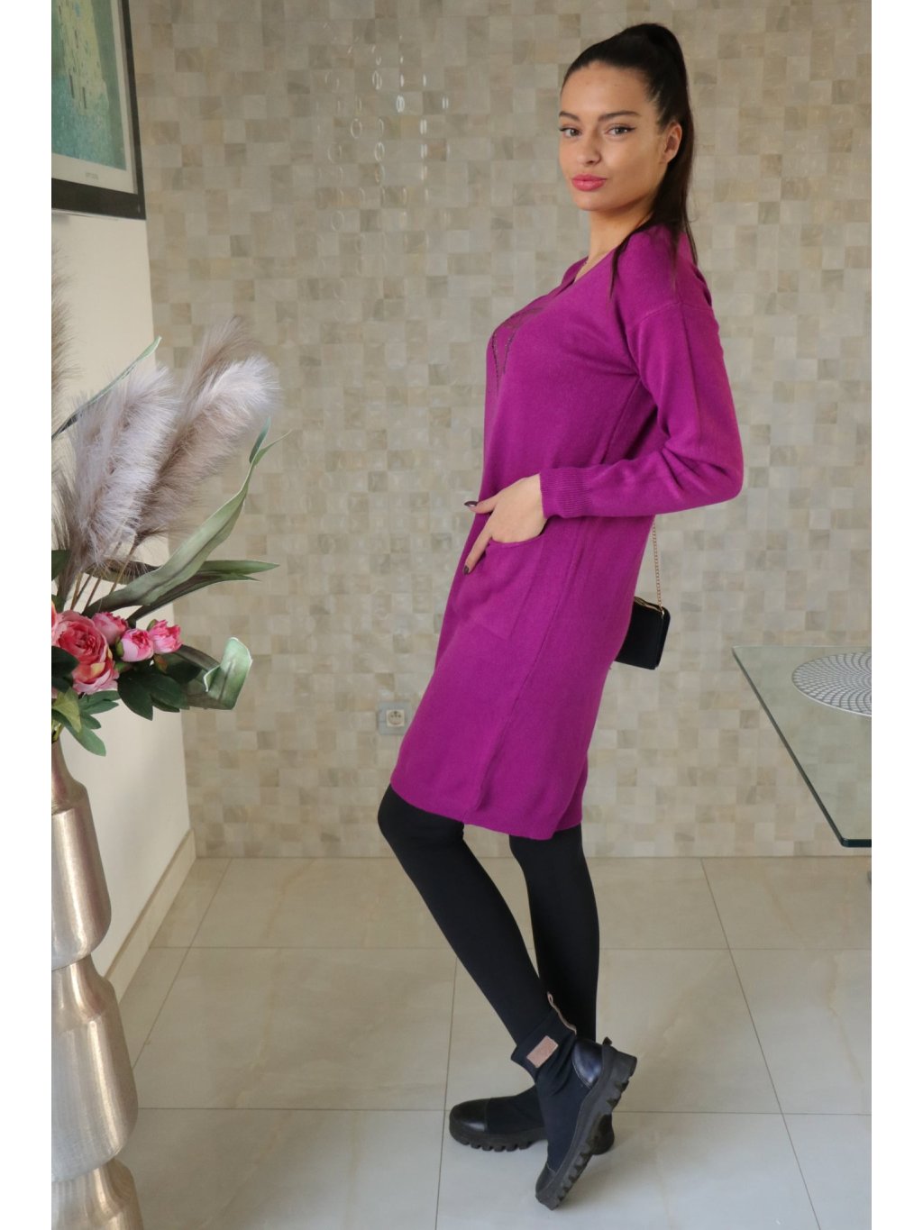 Fuchsiové šaty s kapsami a kamínky vel. UNI
