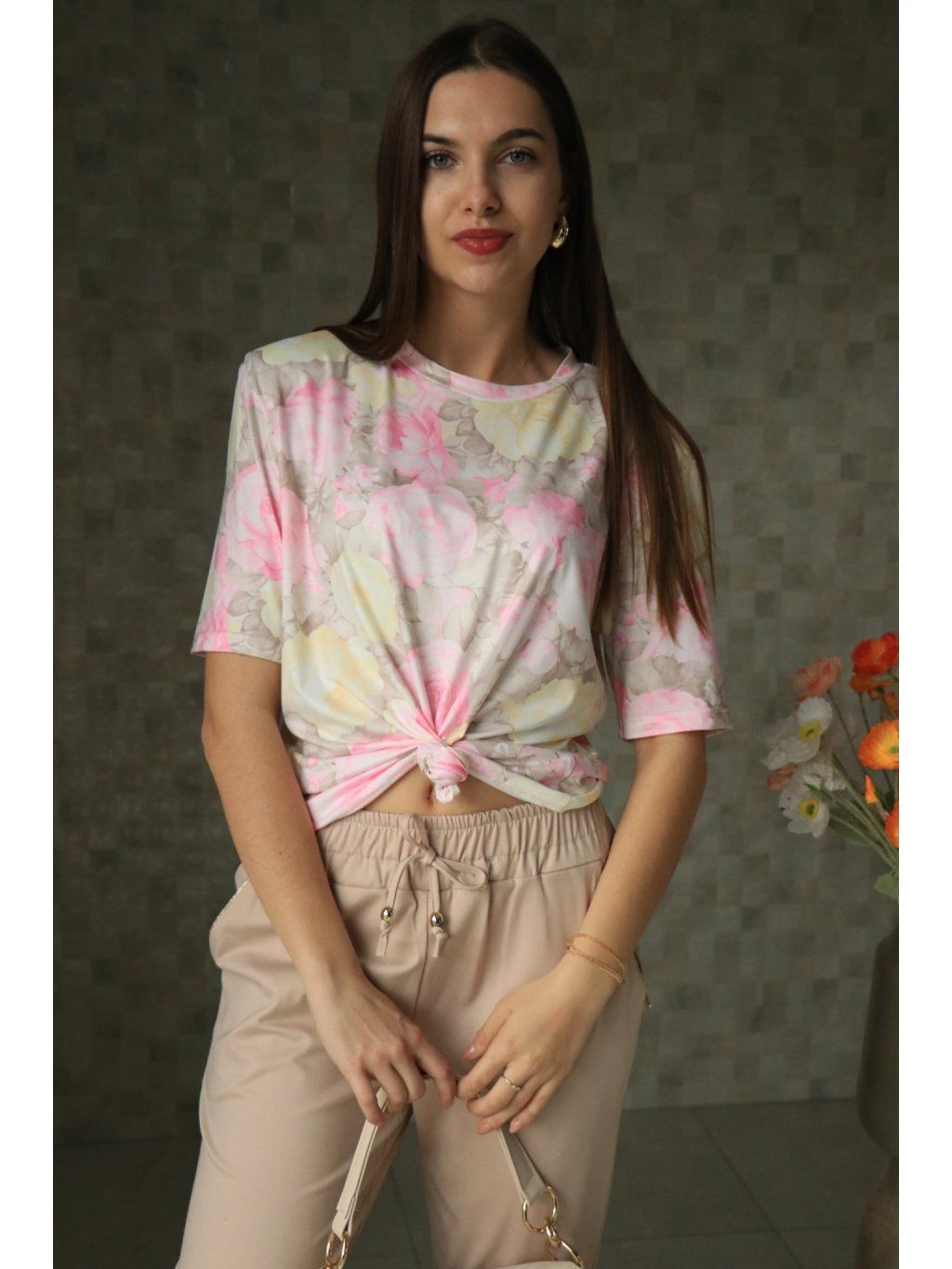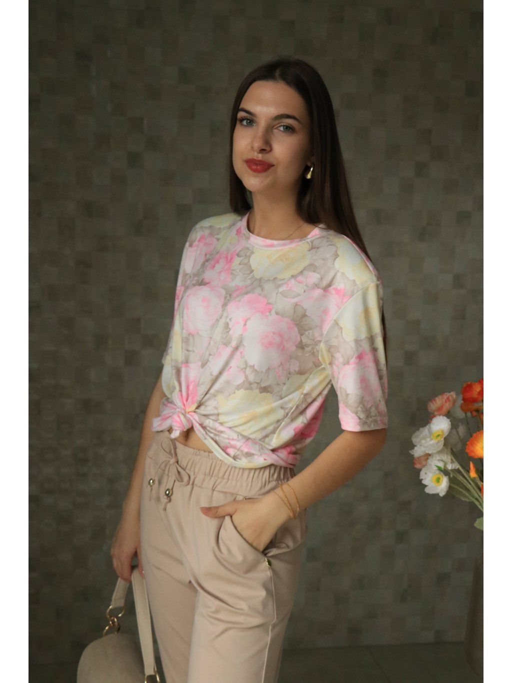 💐 Nádherný květinový vzor s růžemi dodává halenče romantiku a sofistikovaný vzhled