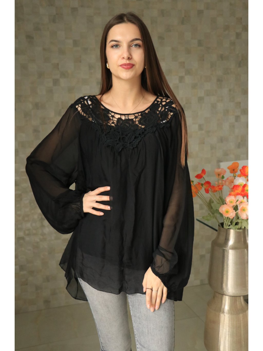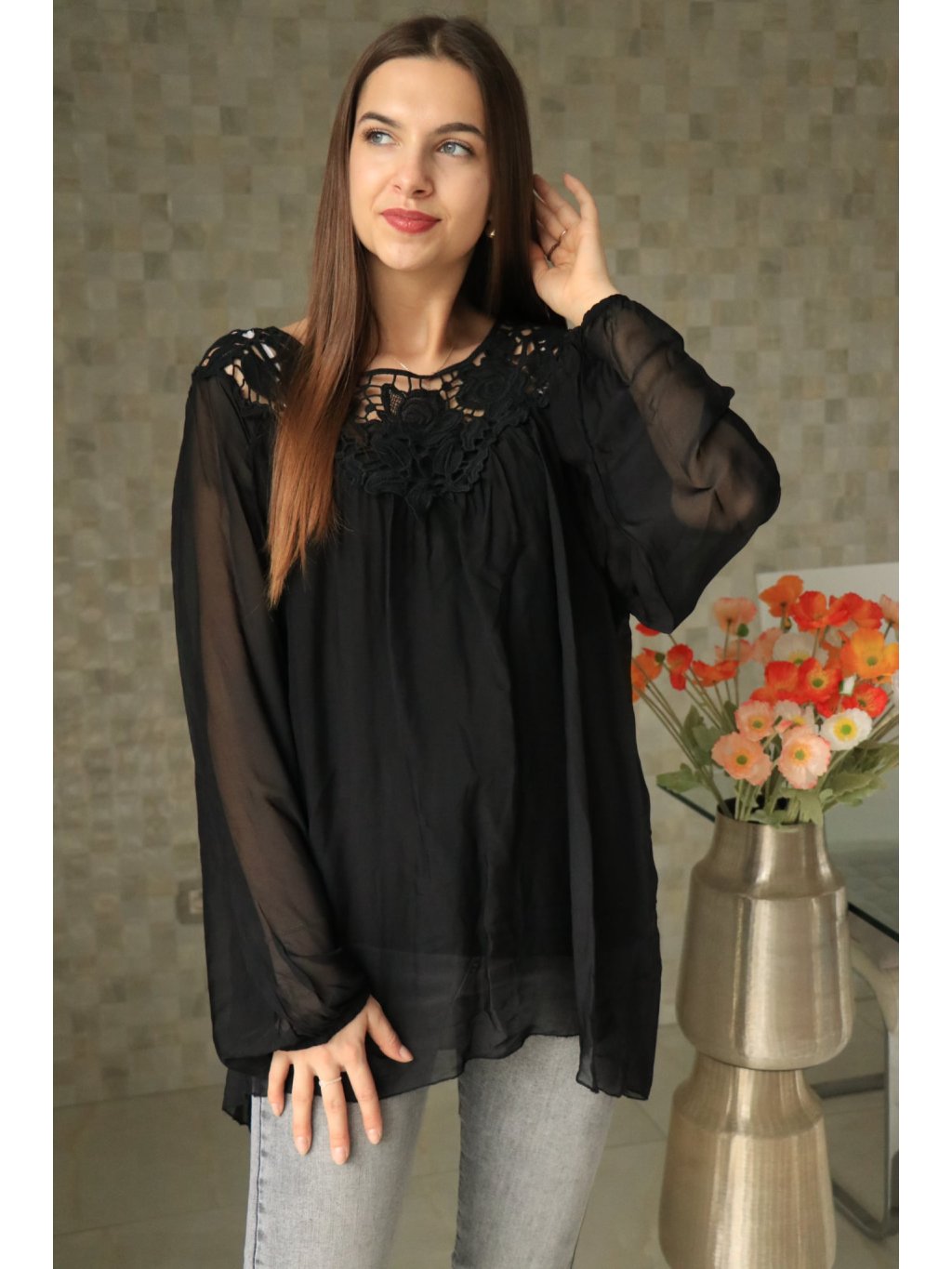 Hedvábná černá halenka vel. UNI