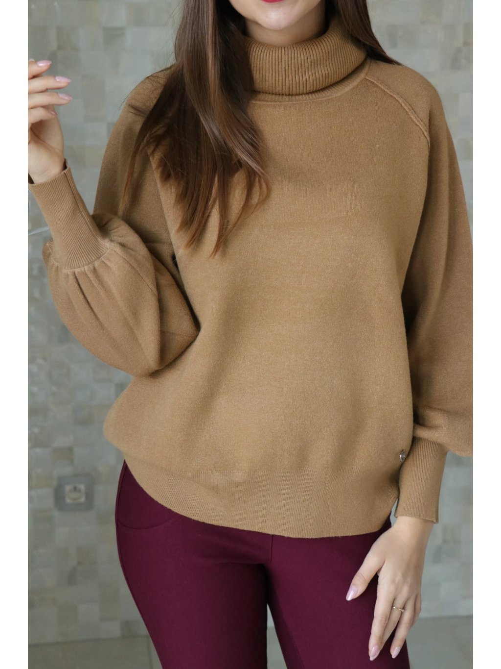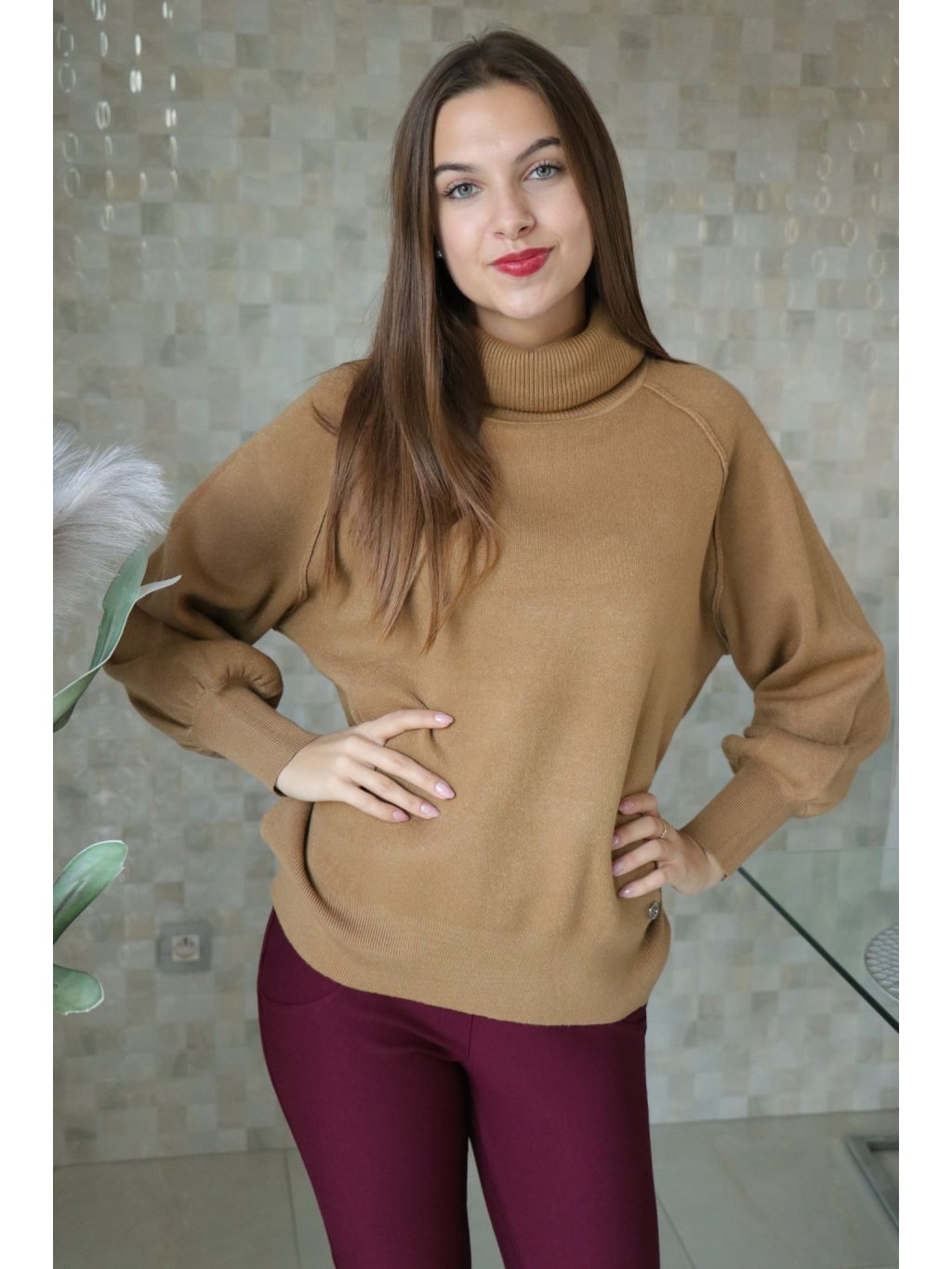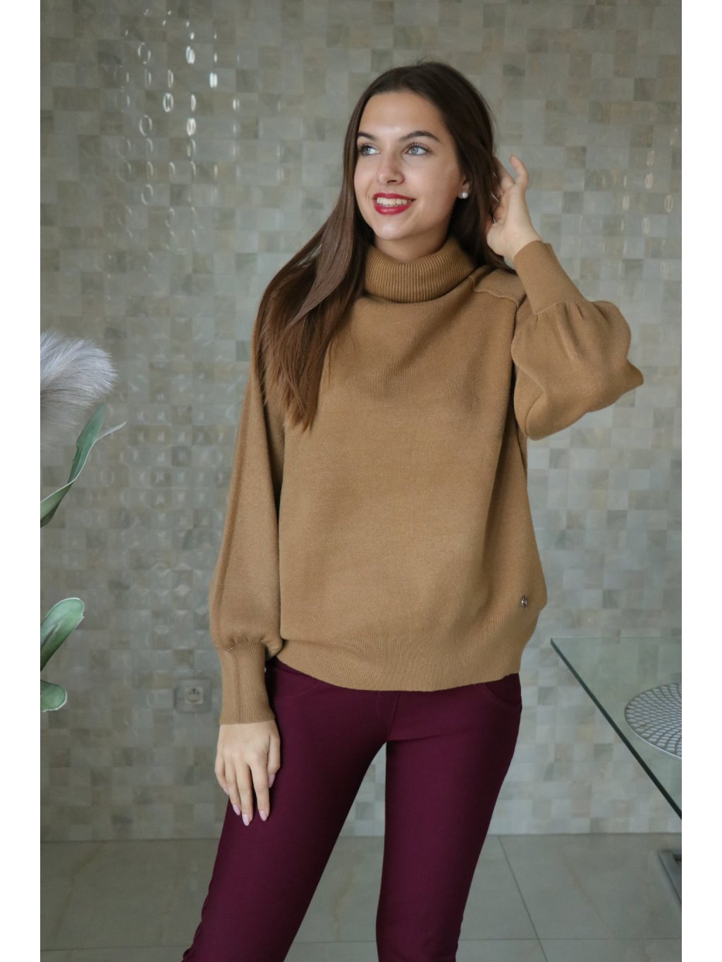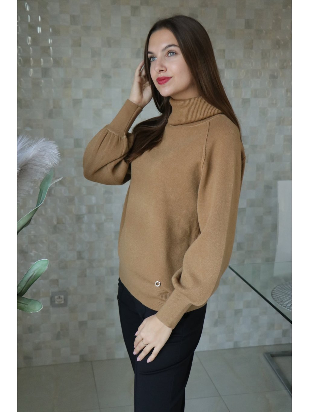 Kamelový svetr s límcem a spojem u rukávů 🤎