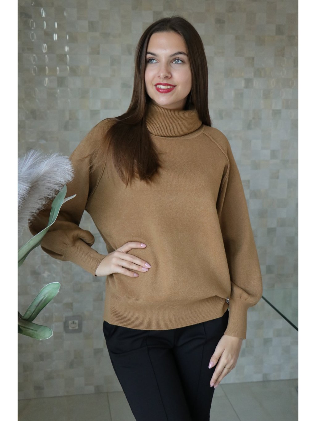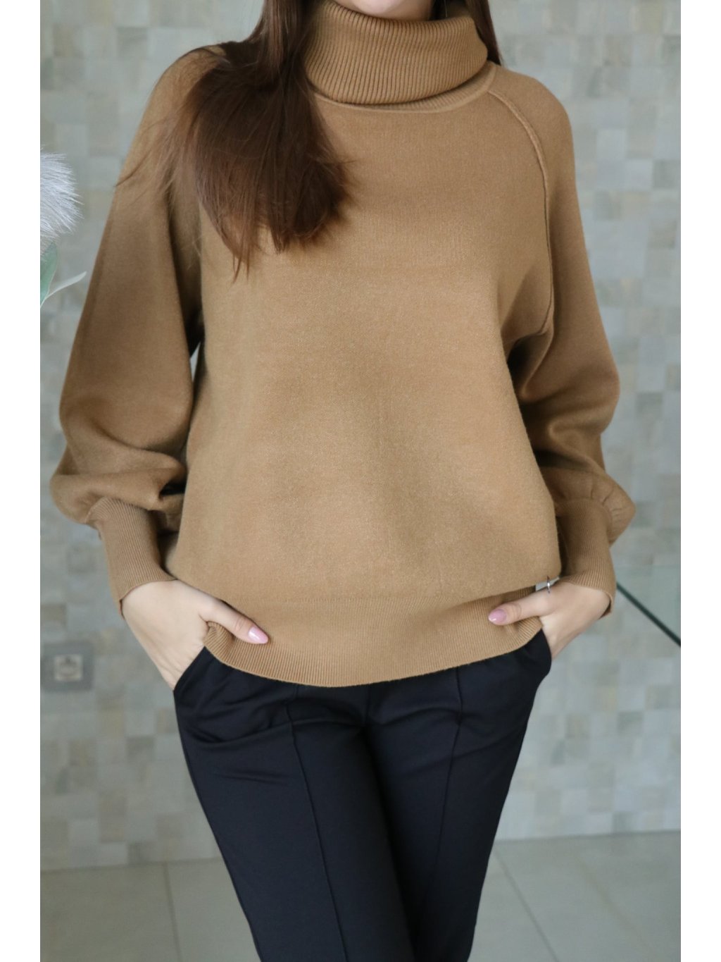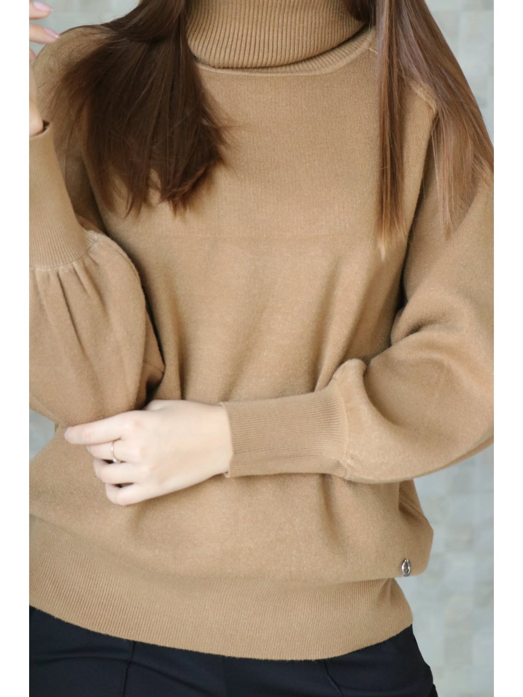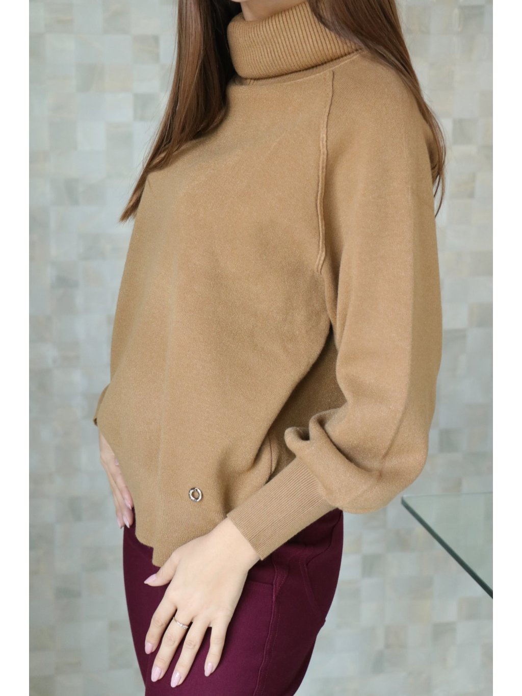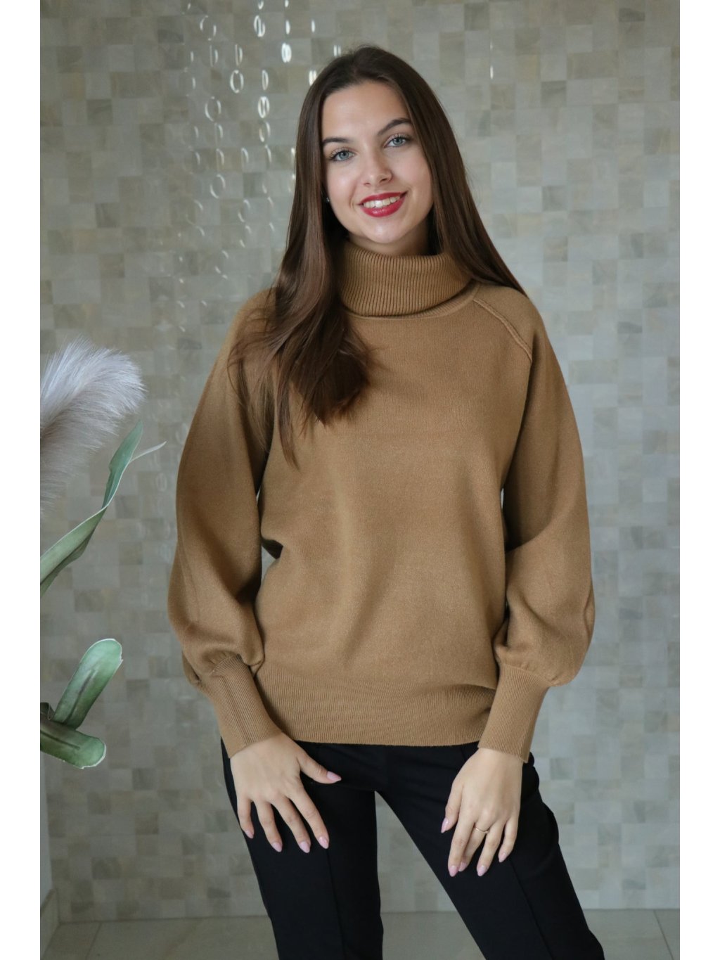 Kamelový svetr s límcem a spojem u rukávů 🤎
