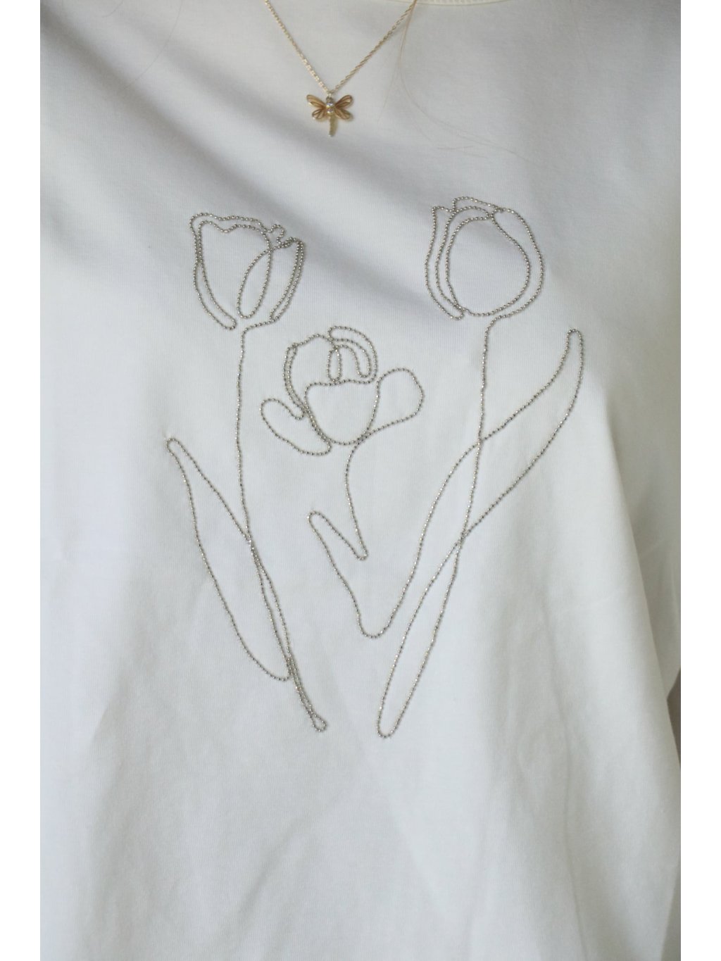 Krémová halenka se stříbrnou kytkou vel. M/L, L/XL