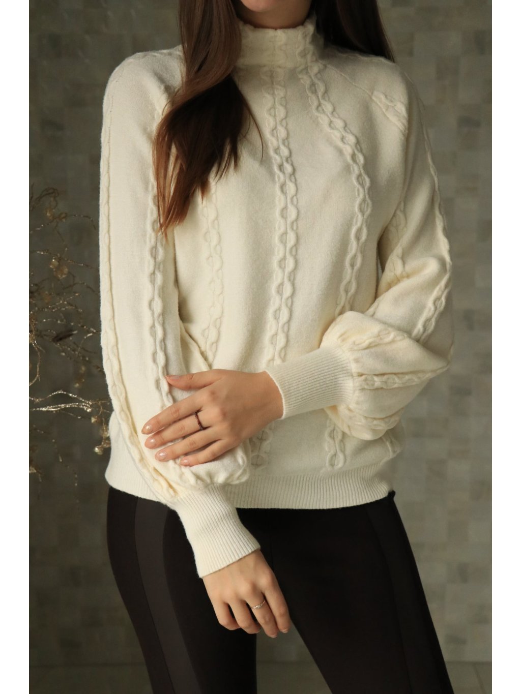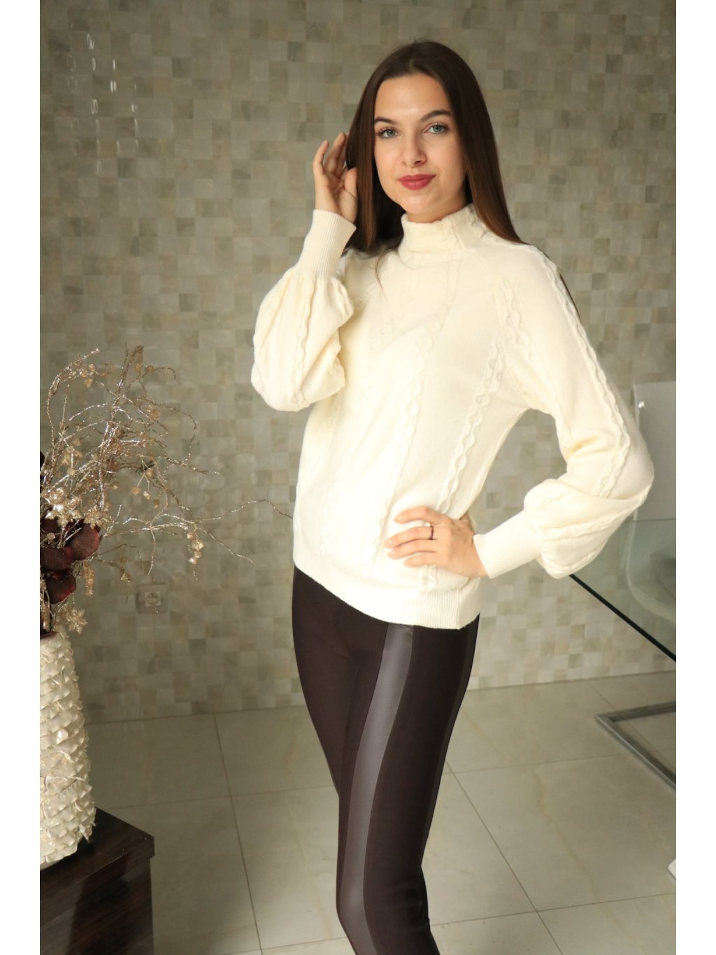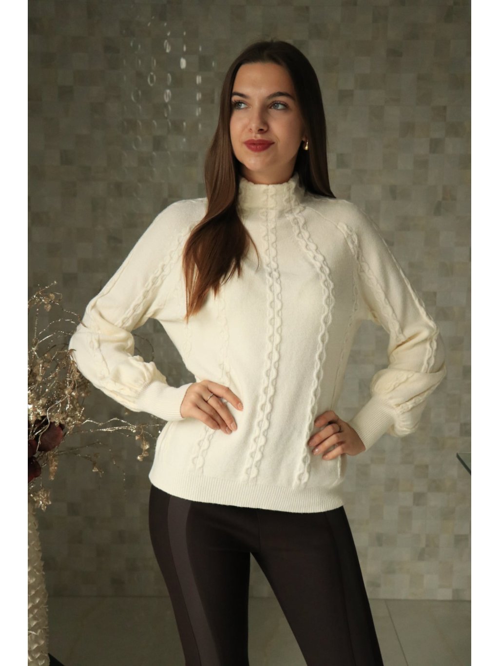 Objevte nadčasovou eleganci s naším nádherným krémovým svetrem zdobeným jemnými pletýnky. Tento sofistikovaný kousek s rafinovanou texturou dokonale kombinuje jemnou barvu s elegantními detaily a stane se vaším nepostradatelným společníkem pro každou příležitost.