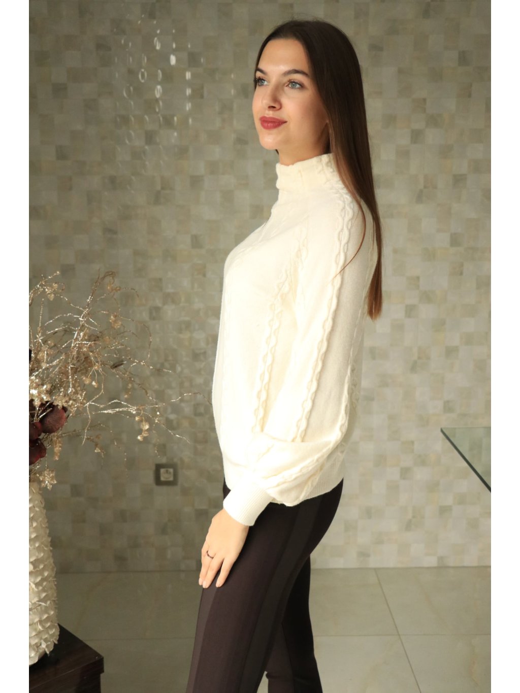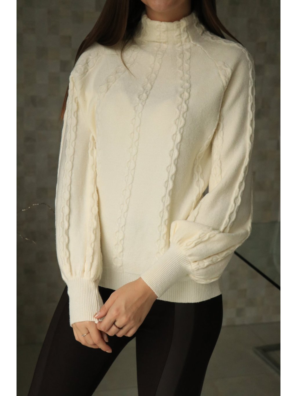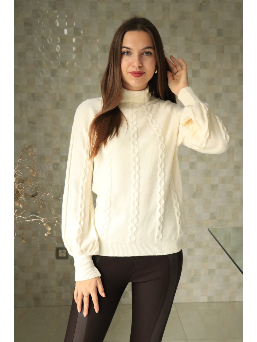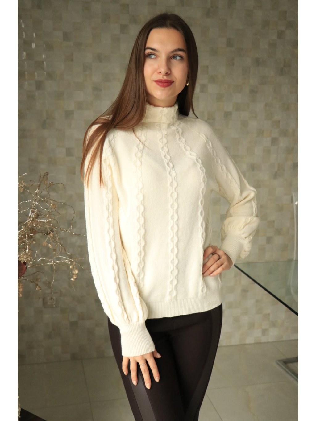 Objevte nadčasovou eleganci s naším nádherným krémovým svetrem zdobeným jemnými pletýnky. Tento sofistikovaný kousek s rafinovanou texturou dokonale kombinuje jemnou barvu s elegantními detaily a stane se vaším nepostradatelným společníkem pro každou příležitost.