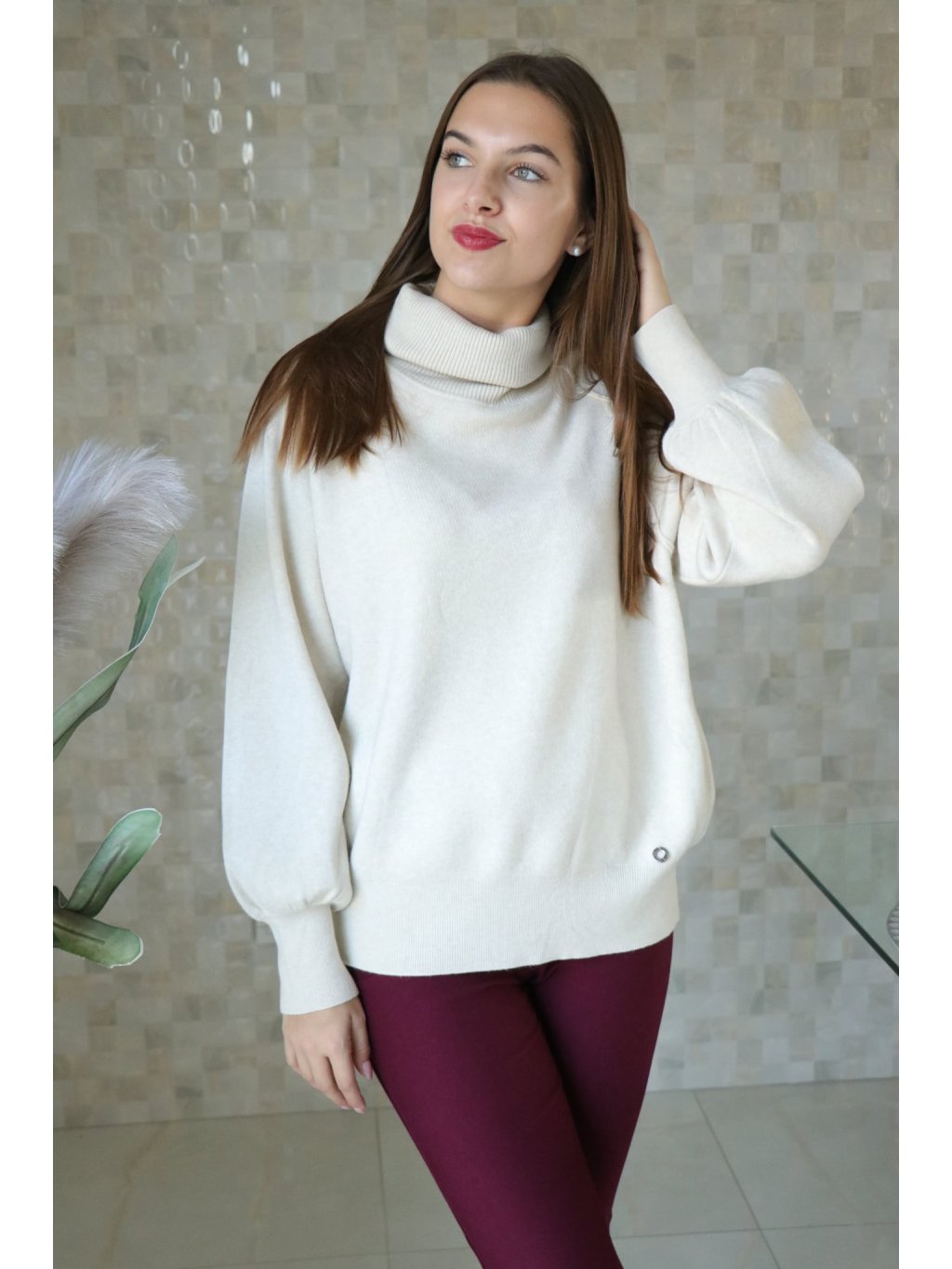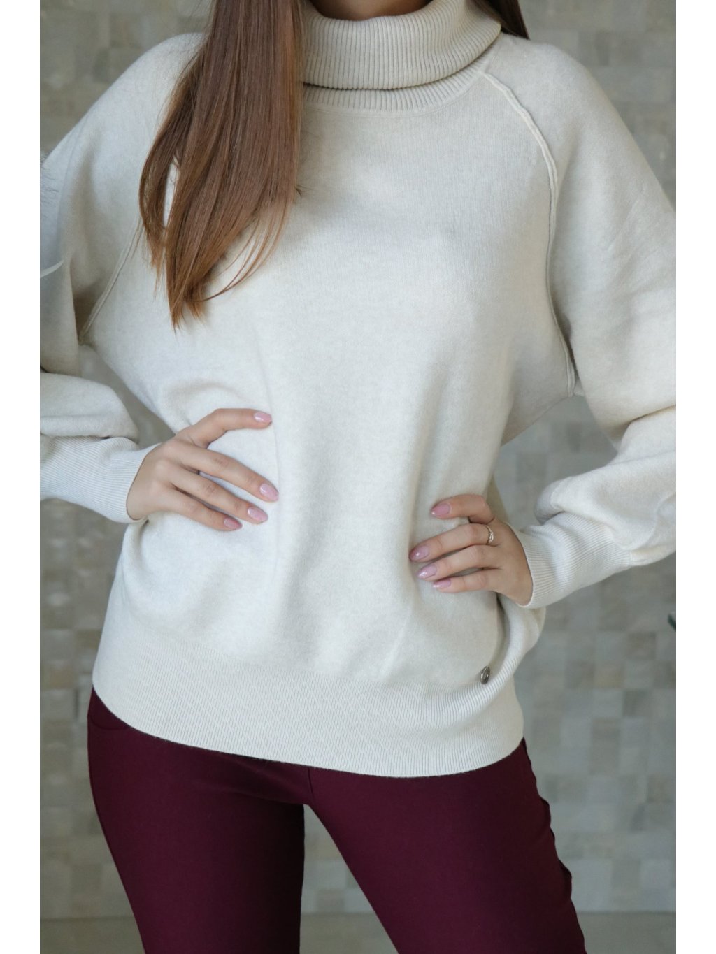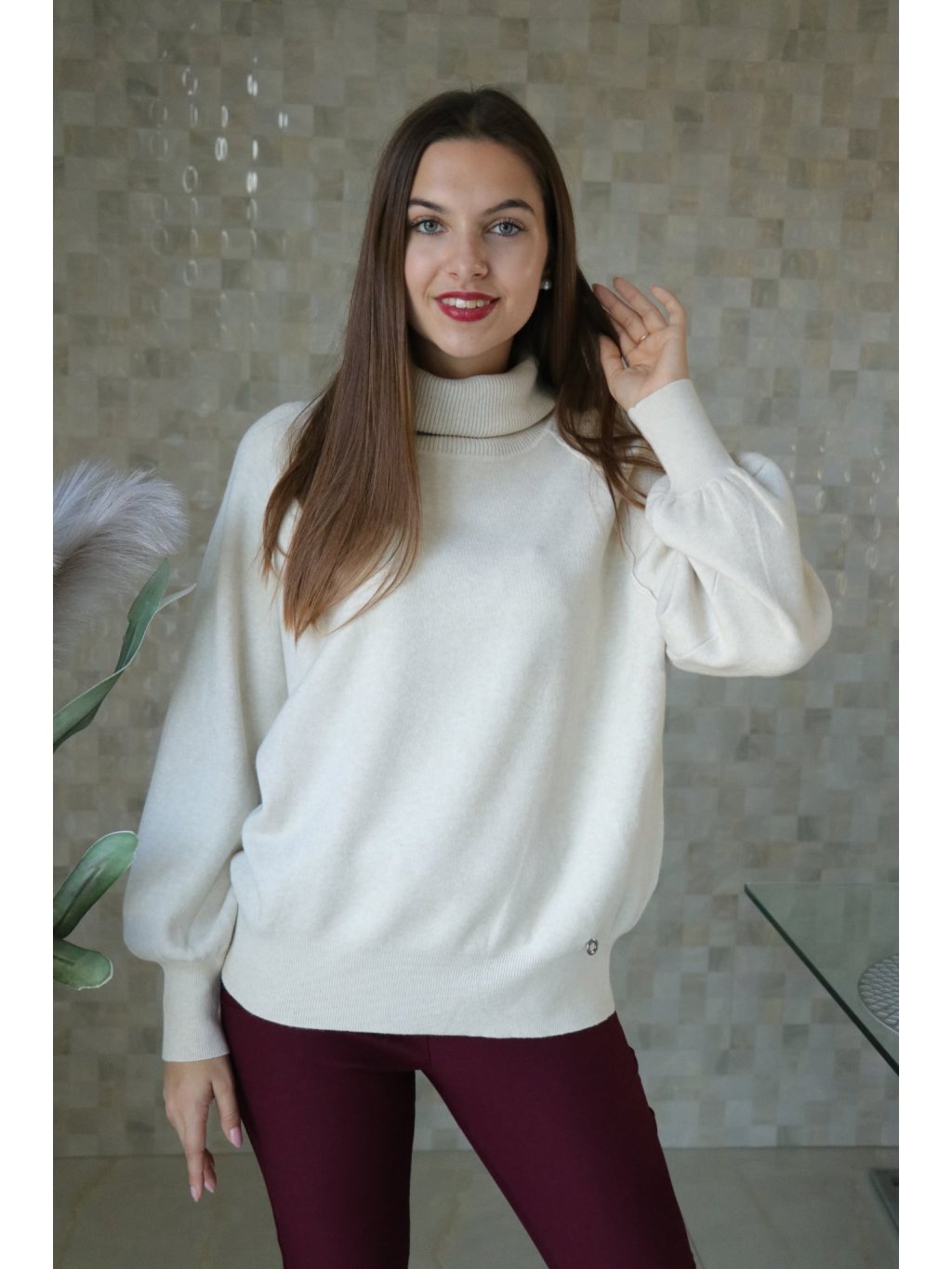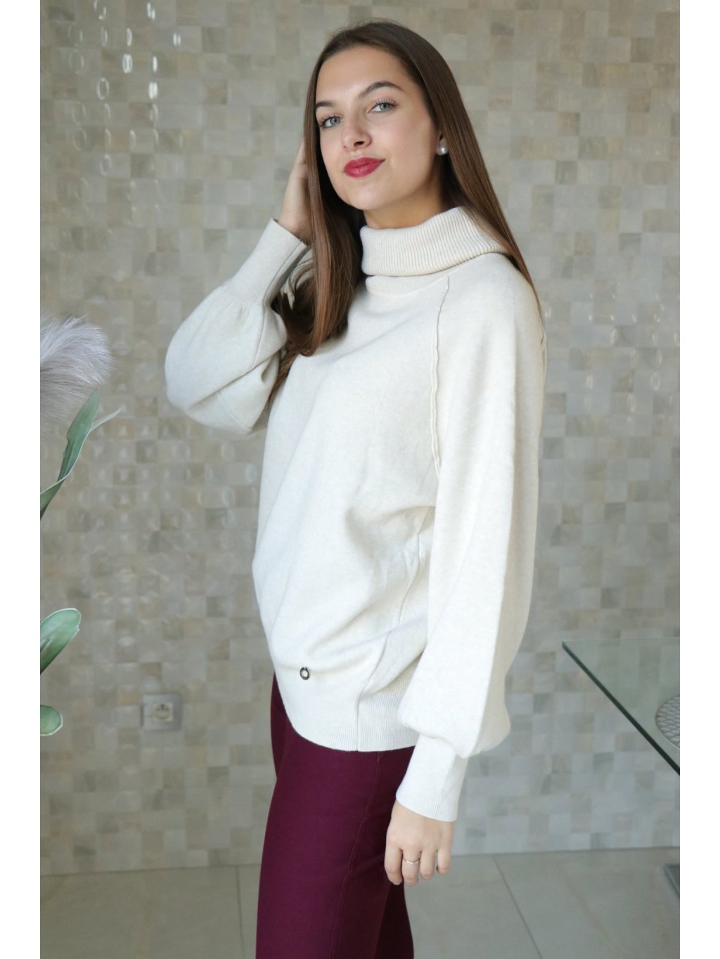 # Krémový svetr s límcem a spojem u rukávů 🤍