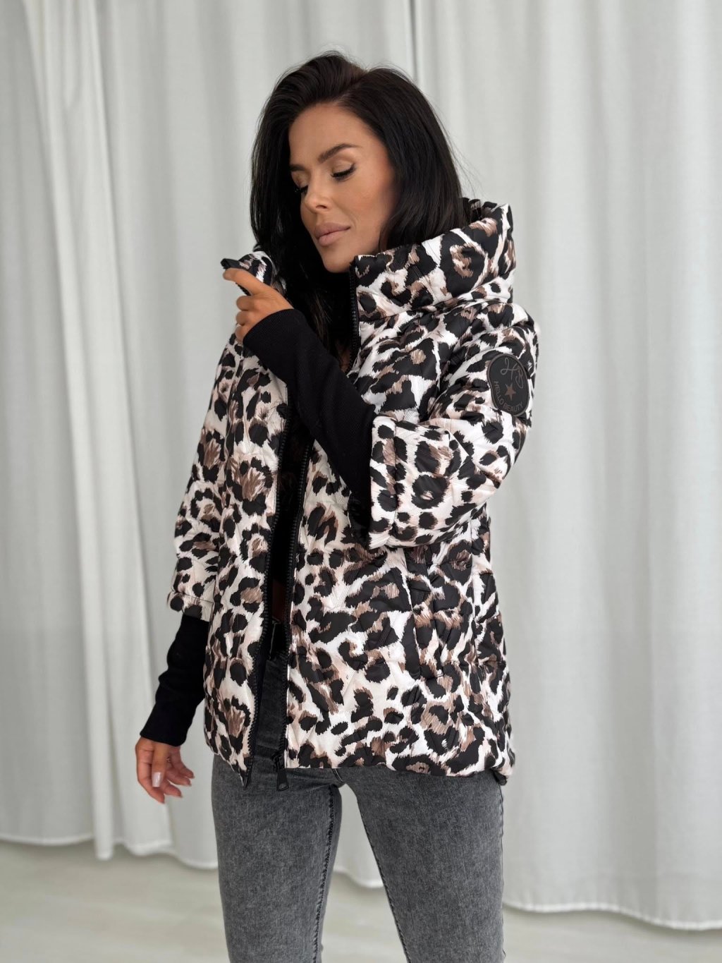 Leopardí podzimní bunda s náplety od vel. S-2XL
