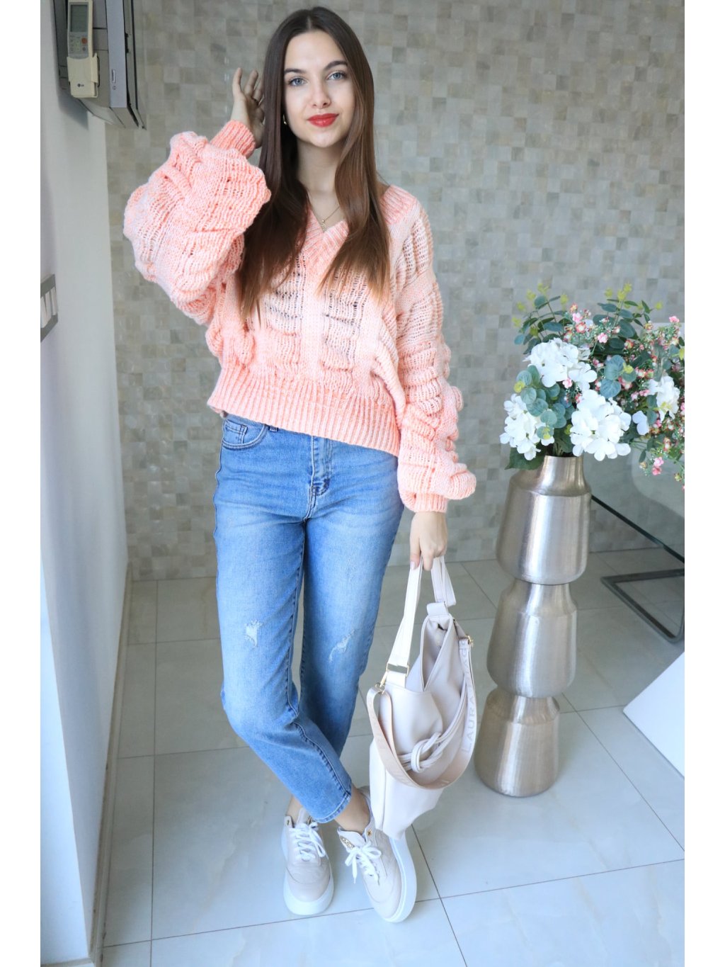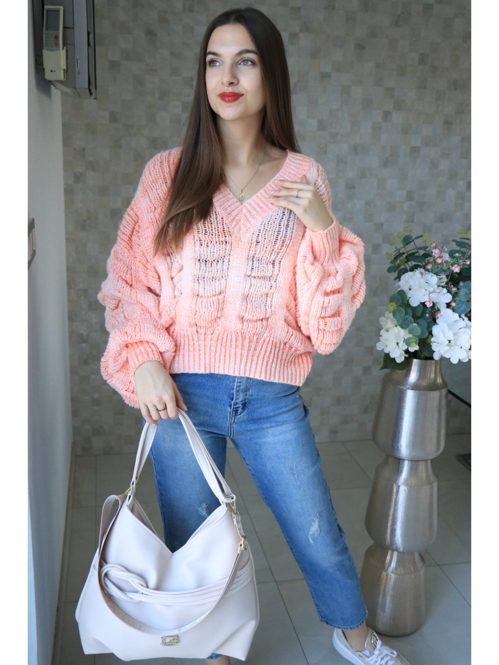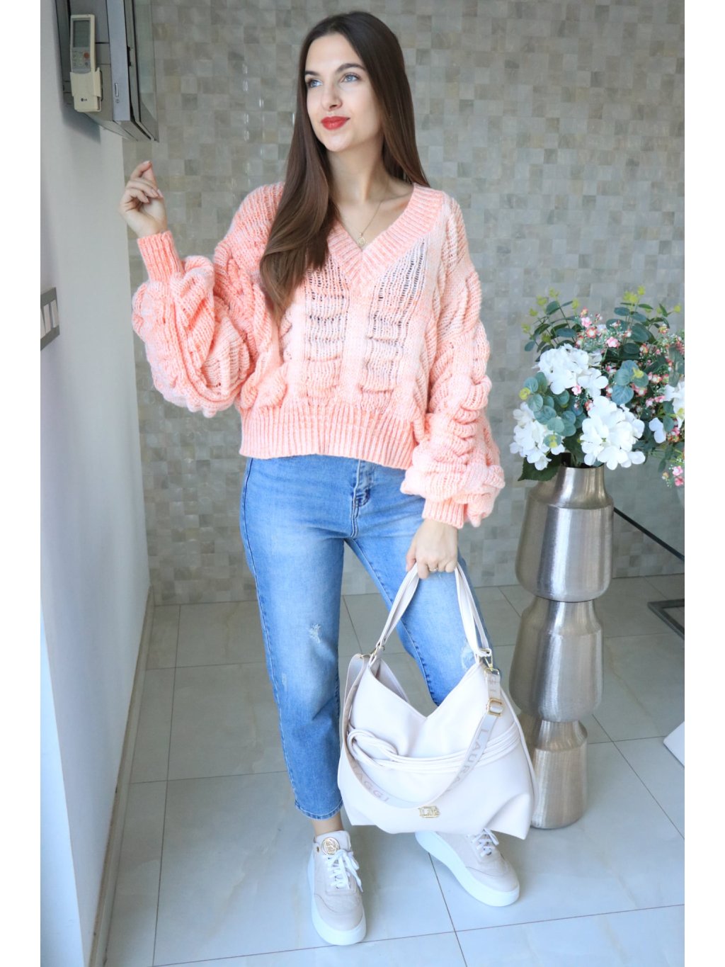🧡 Lososový barevný svetr se širokými rukávy – jarní kolekce 🧡