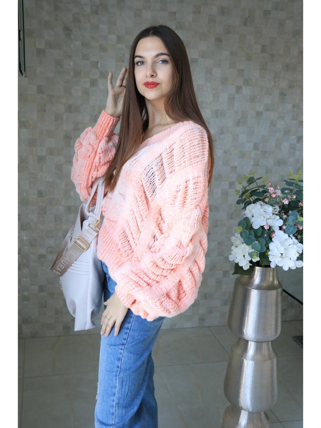 Lososový barevný svetr se širokými rukáv vel. UNI