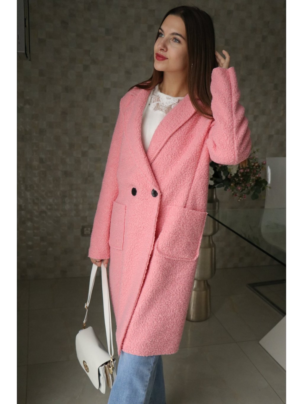 🧡 Lososový buklé beránkový kabátek – jarní kolekce 🧡