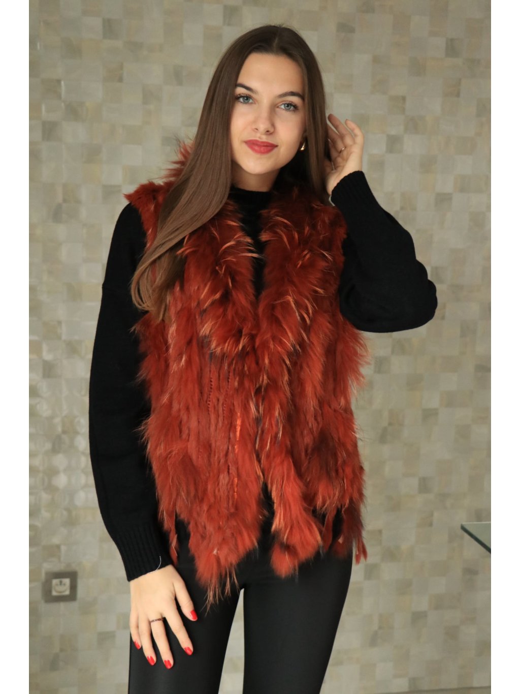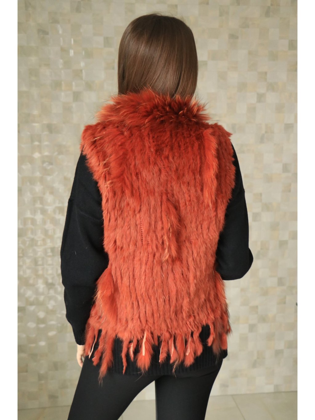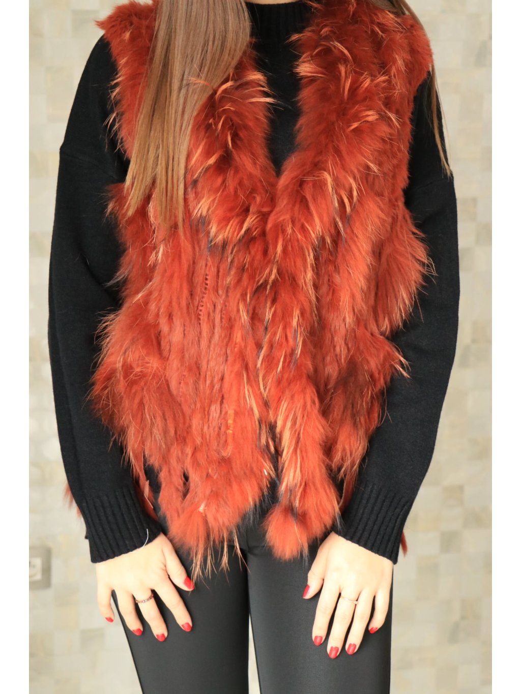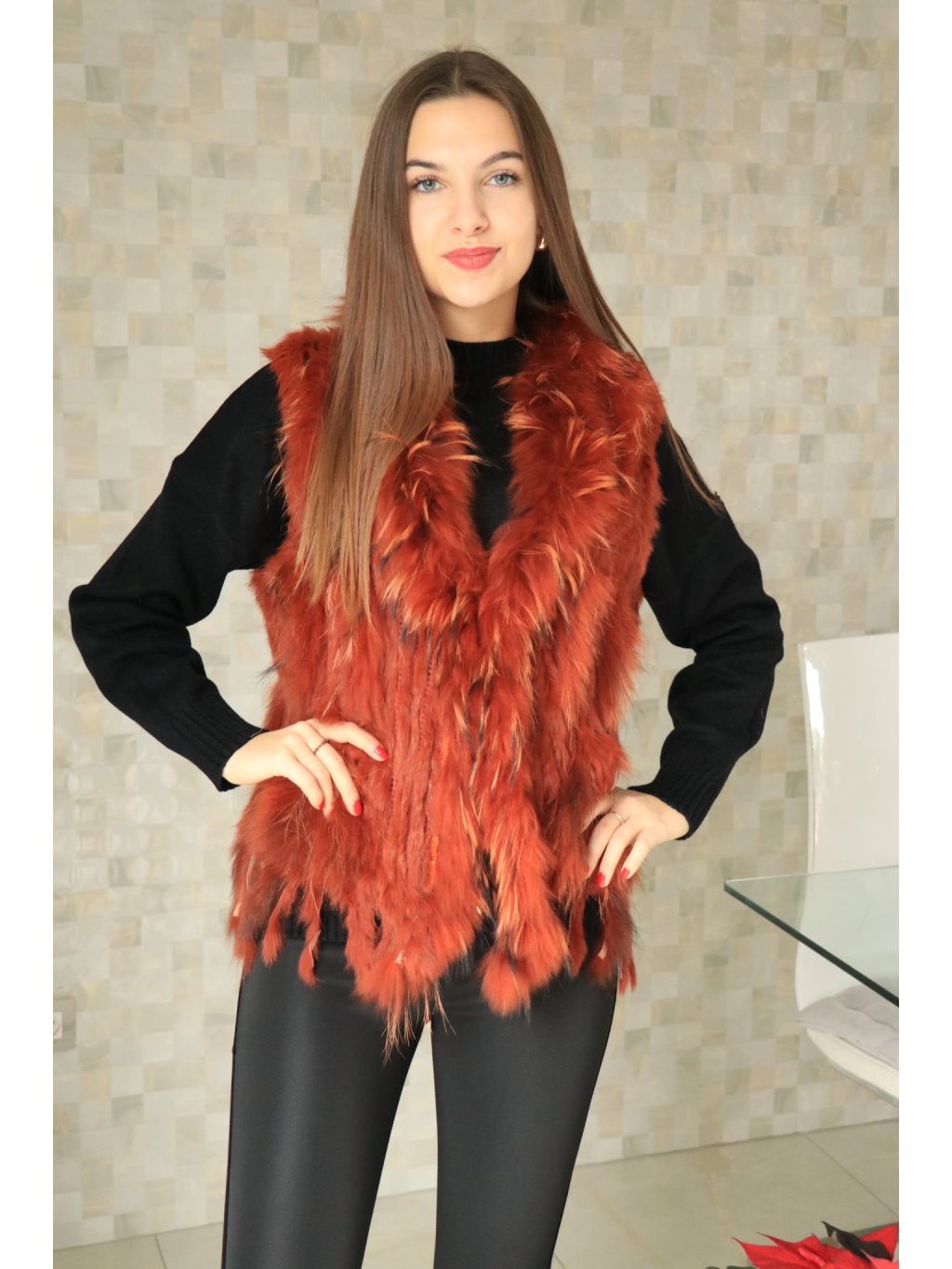 # 🧥 Luxusní dámská vesta s pravou králičí kožešinou - oranžová