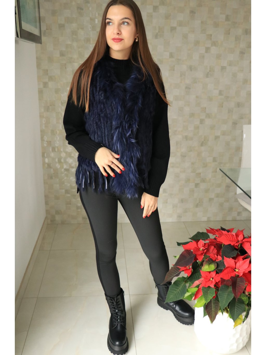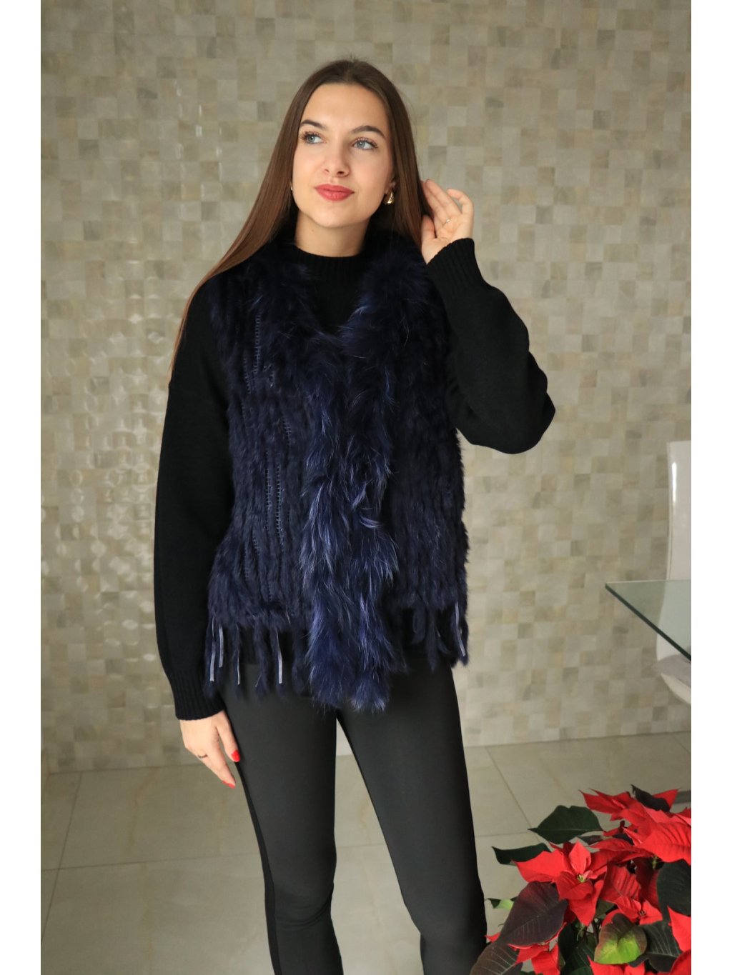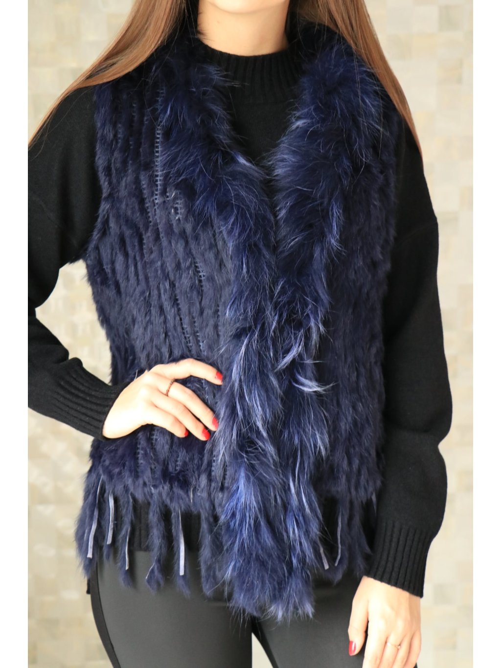 # 🧥 Luxusní dámská vesta s pravou králičí kožešinou - modrá