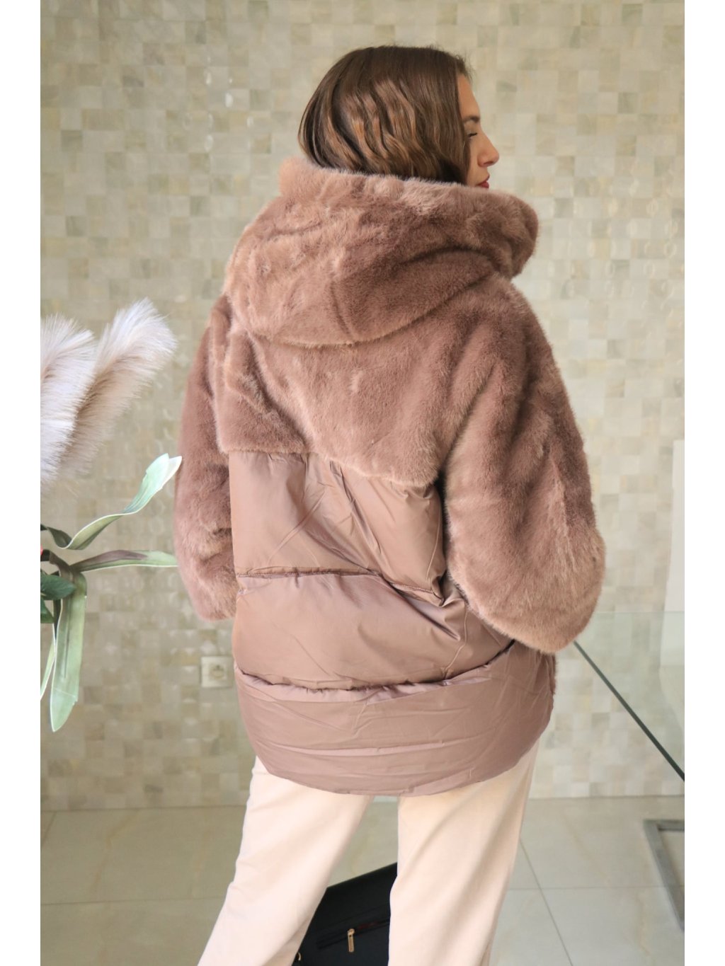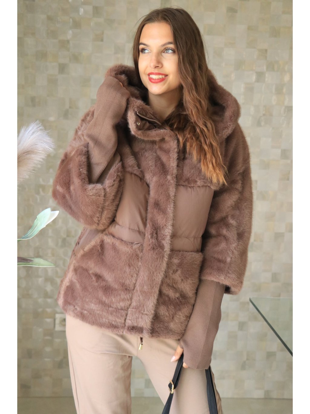 Hřejivá medová bunda s chlupatou kožešinou a praktickým zapínáním na zip