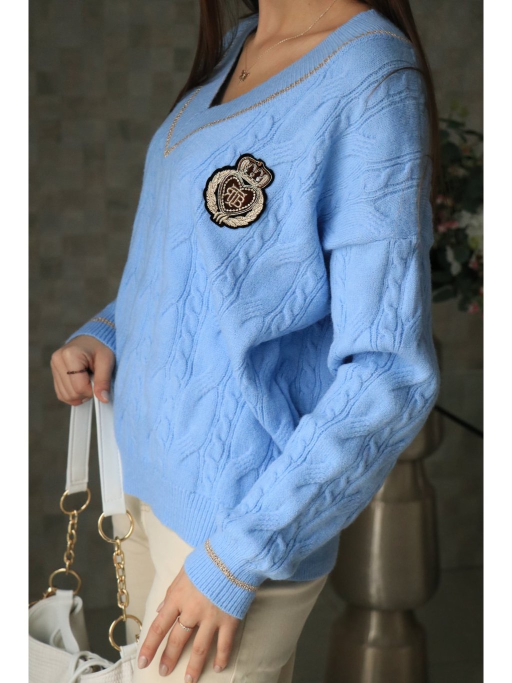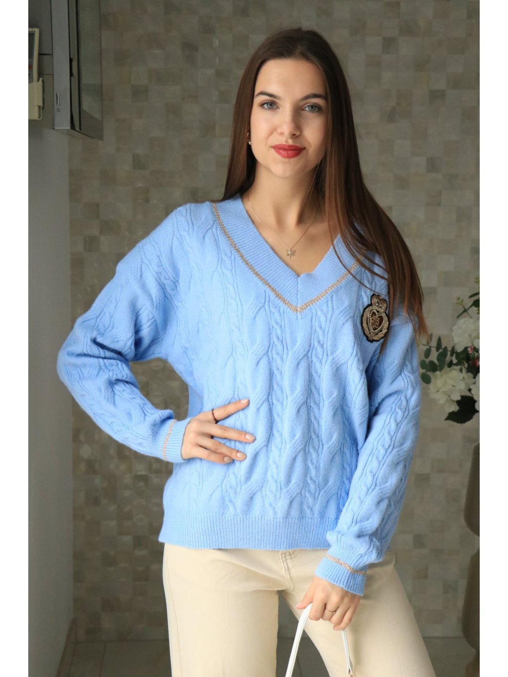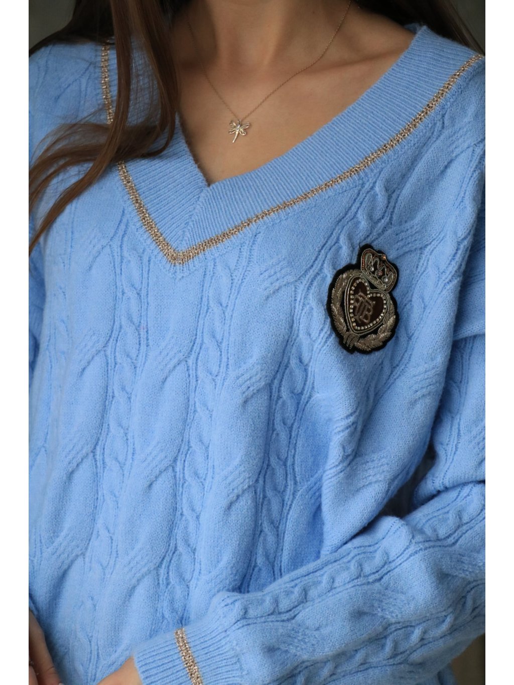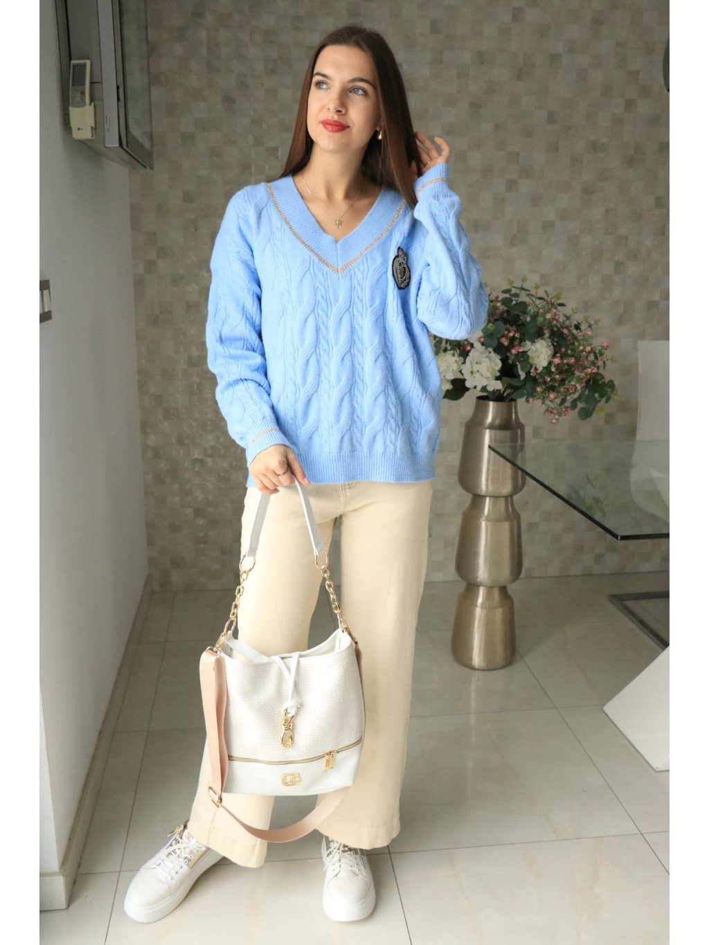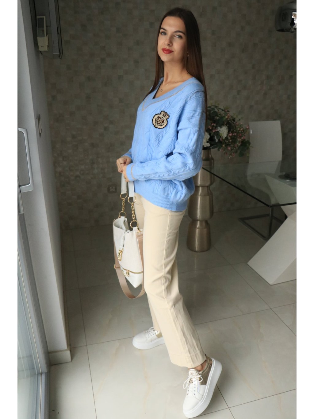 💙 Modrý svetr do V se znakem – jarní kolekce 💙