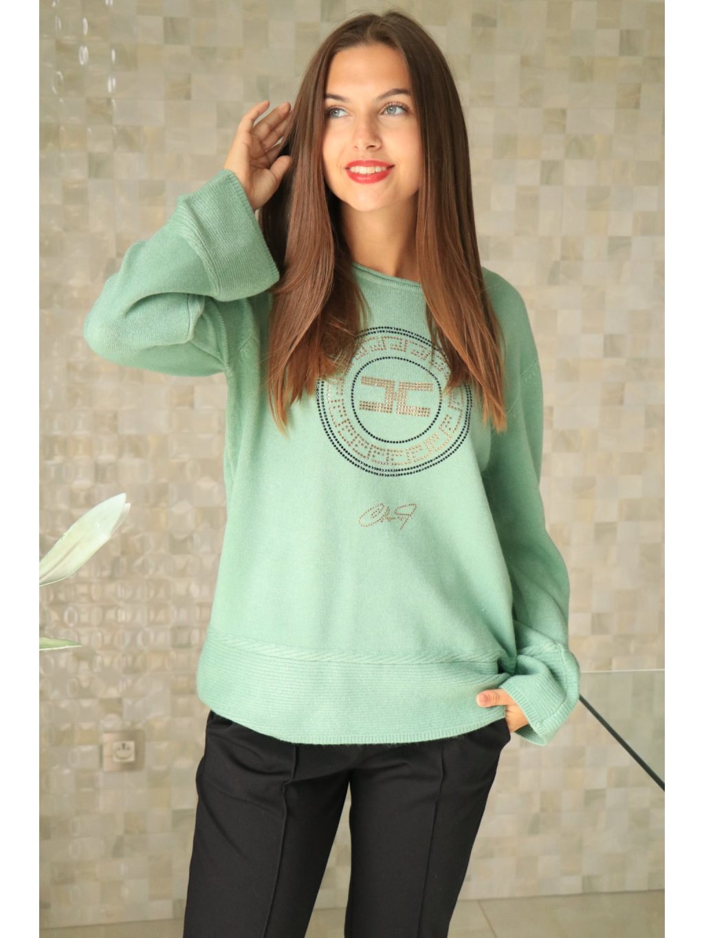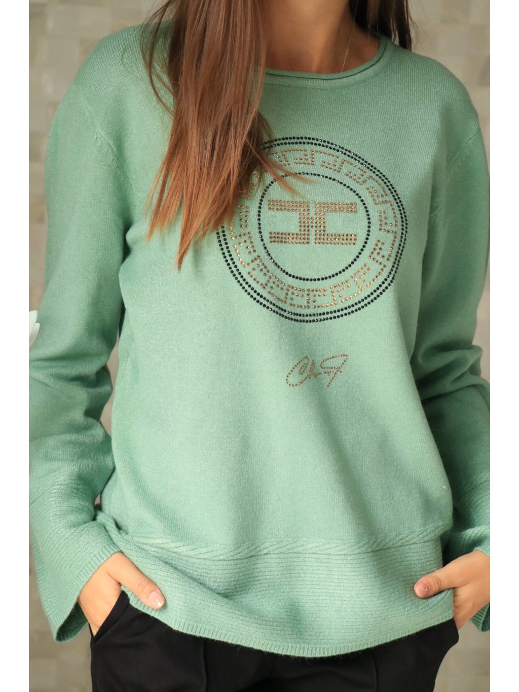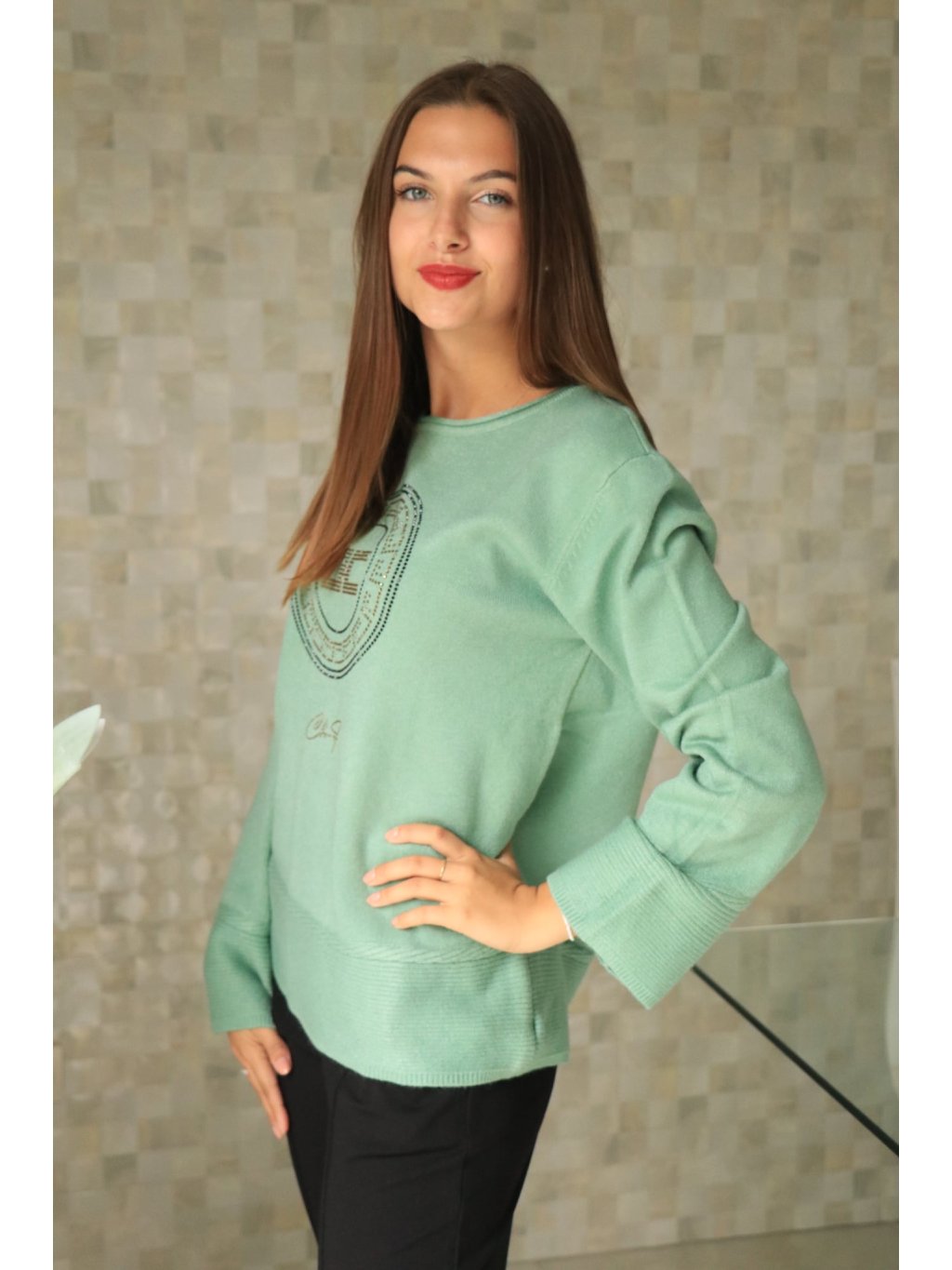 Pastelově-zelený svetr se širšími rukávy a kamínky vel. UNI