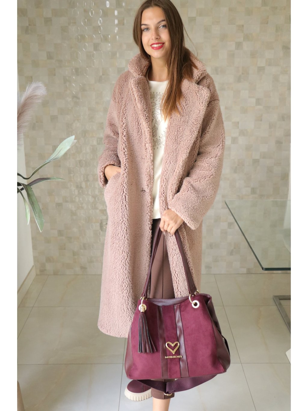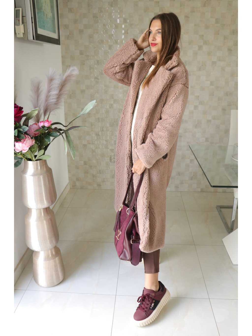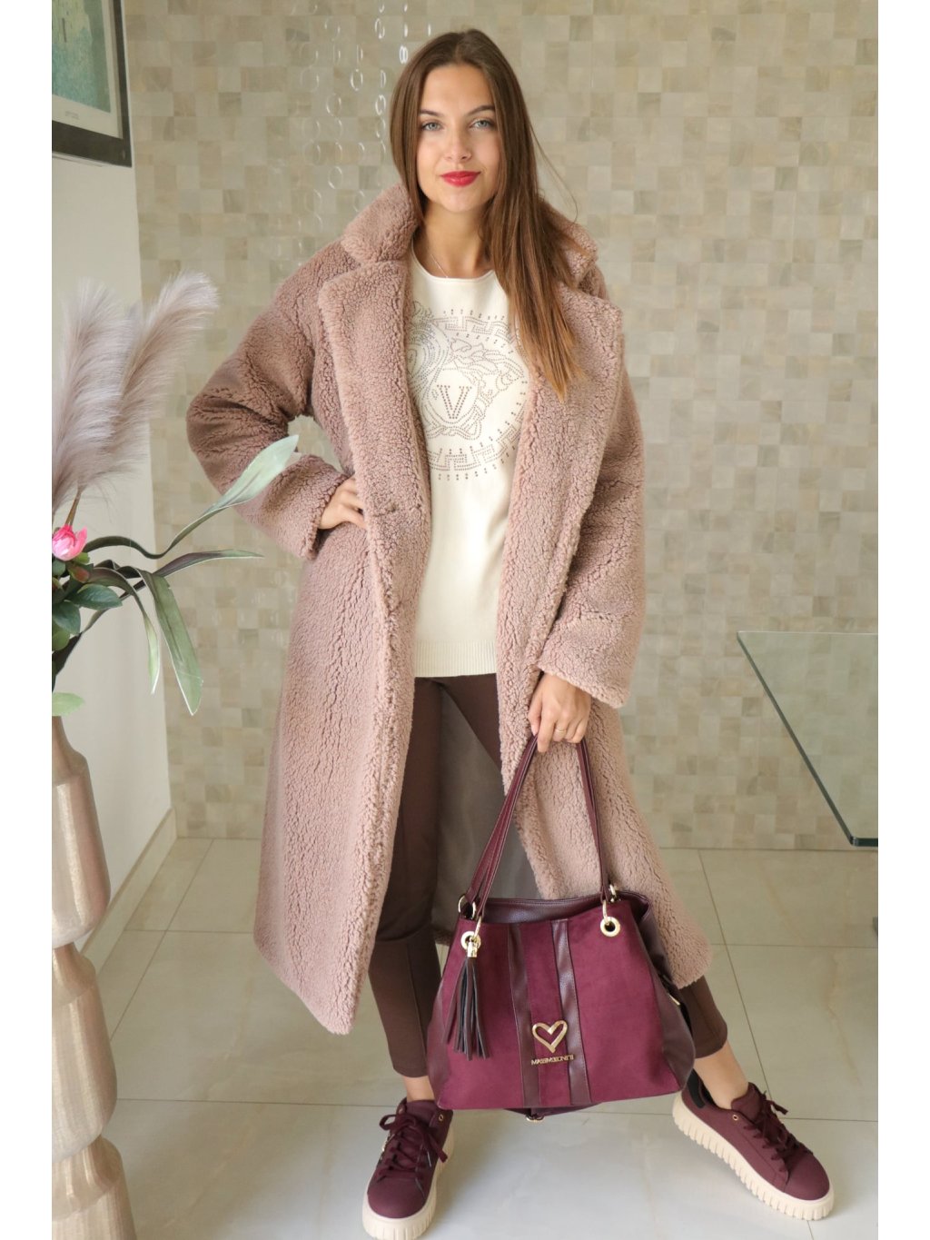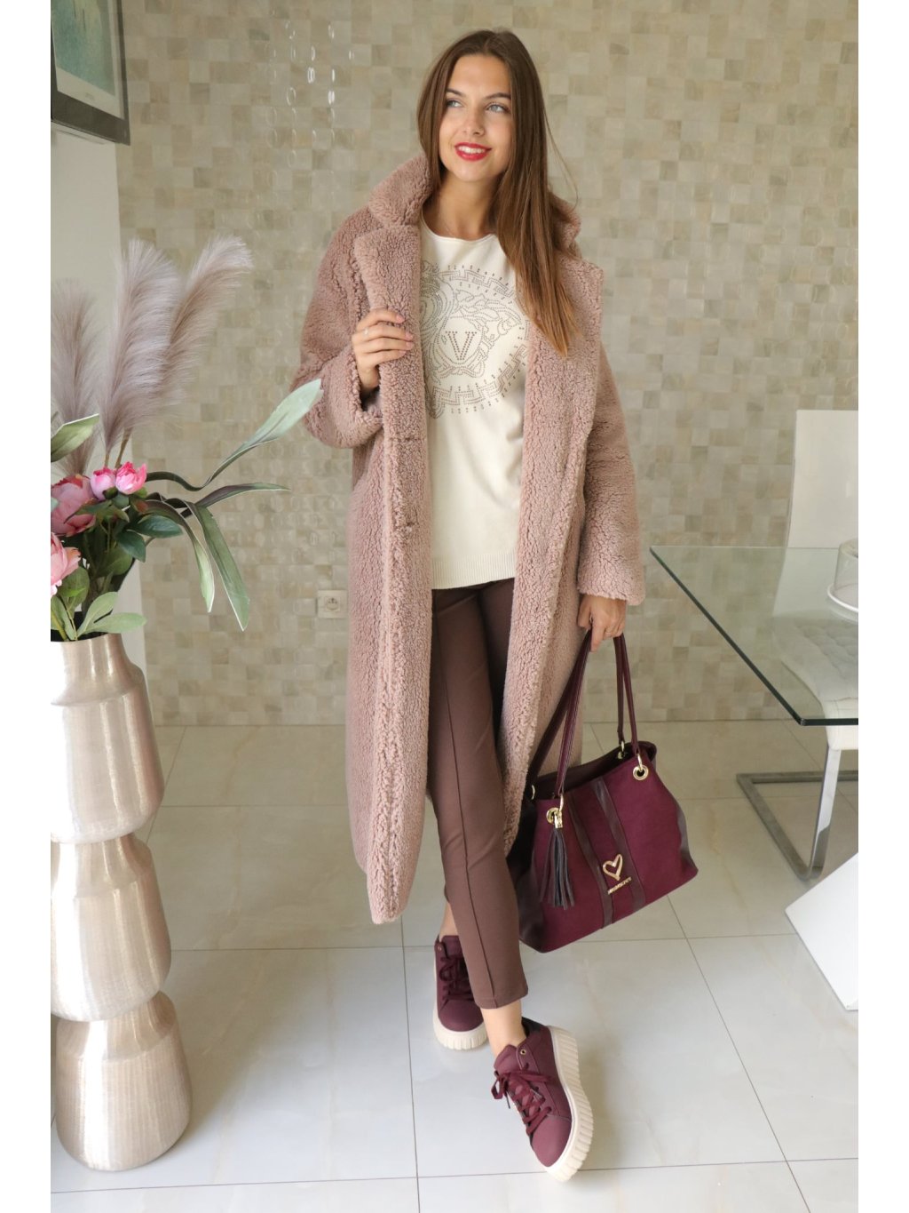 Měkký teddy kabátek v teplé světle béžové barvě, ideální pro chladné podzimní dny — pohodlný, stylový a snadno kombinovatelný.