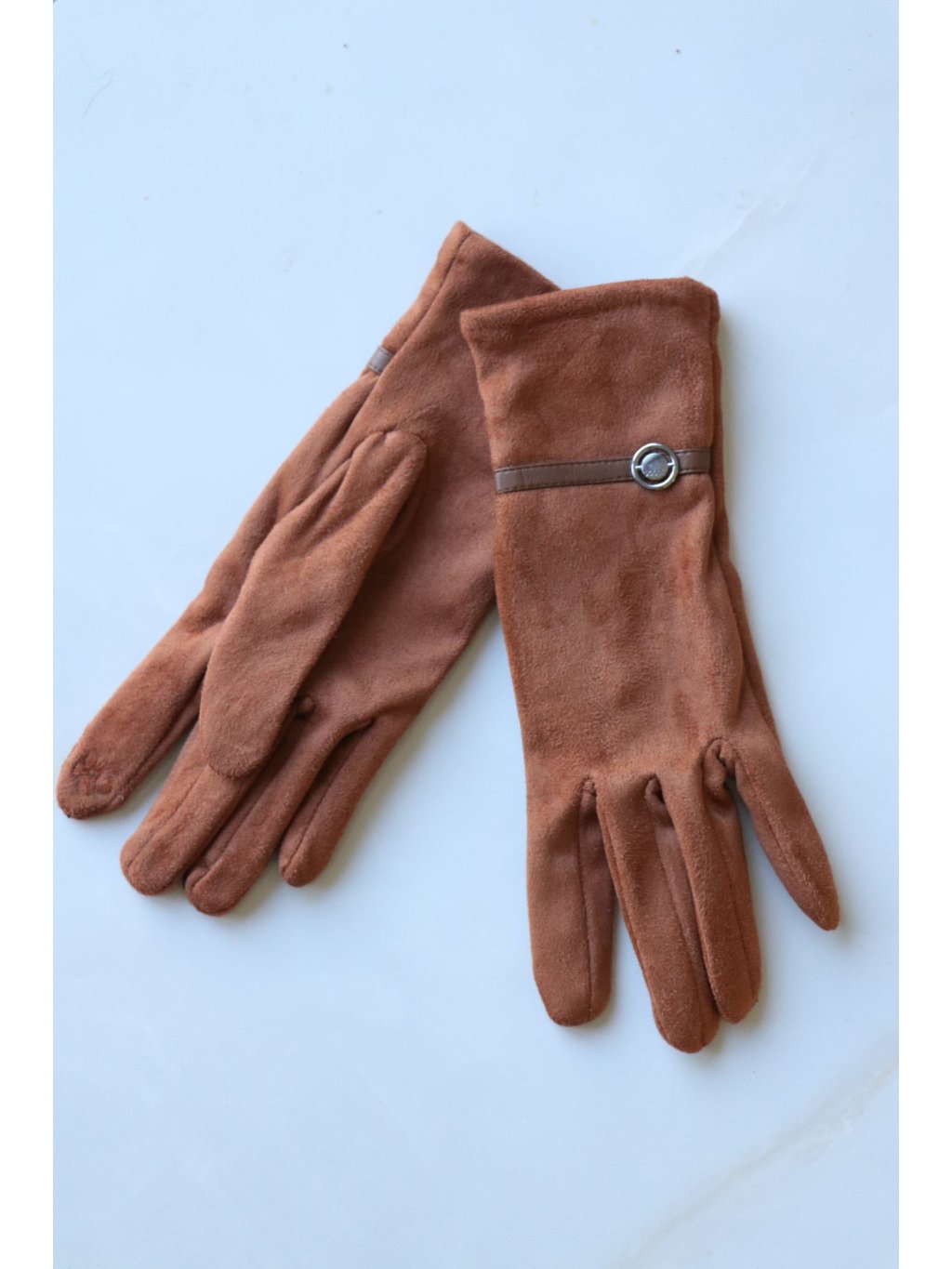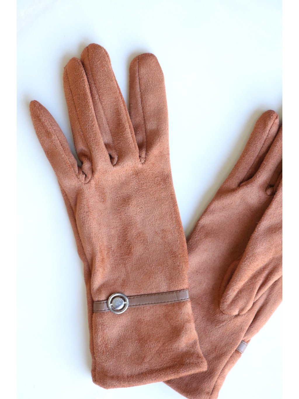 # 🧡 Rezavé rukavice s koženkovým páskem se stříbrným kolečkem
