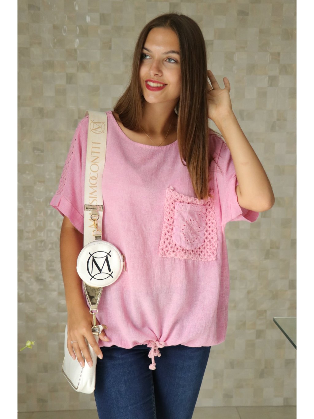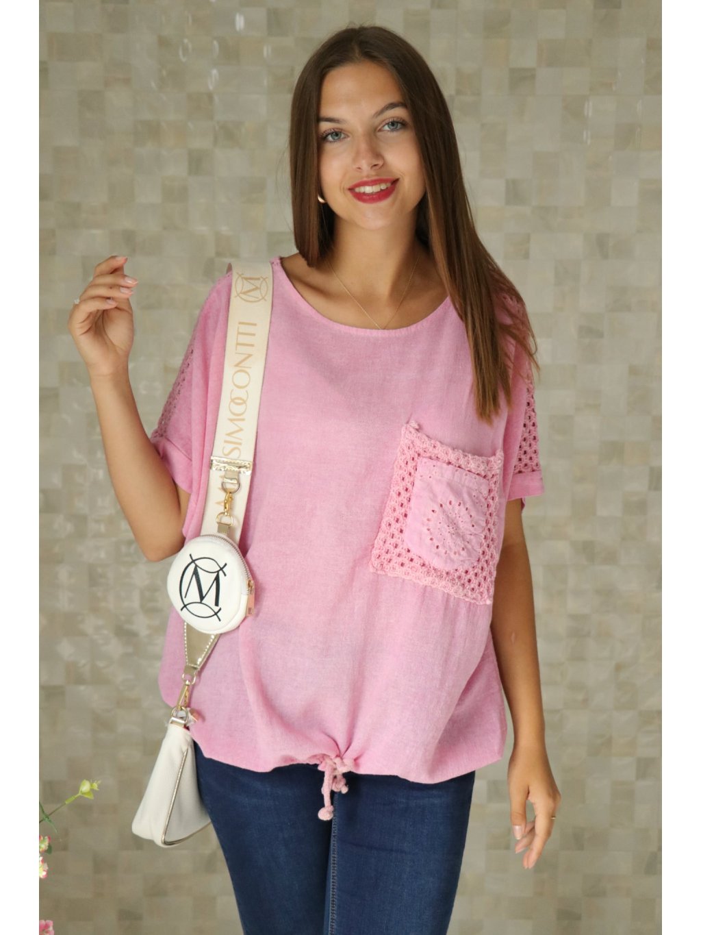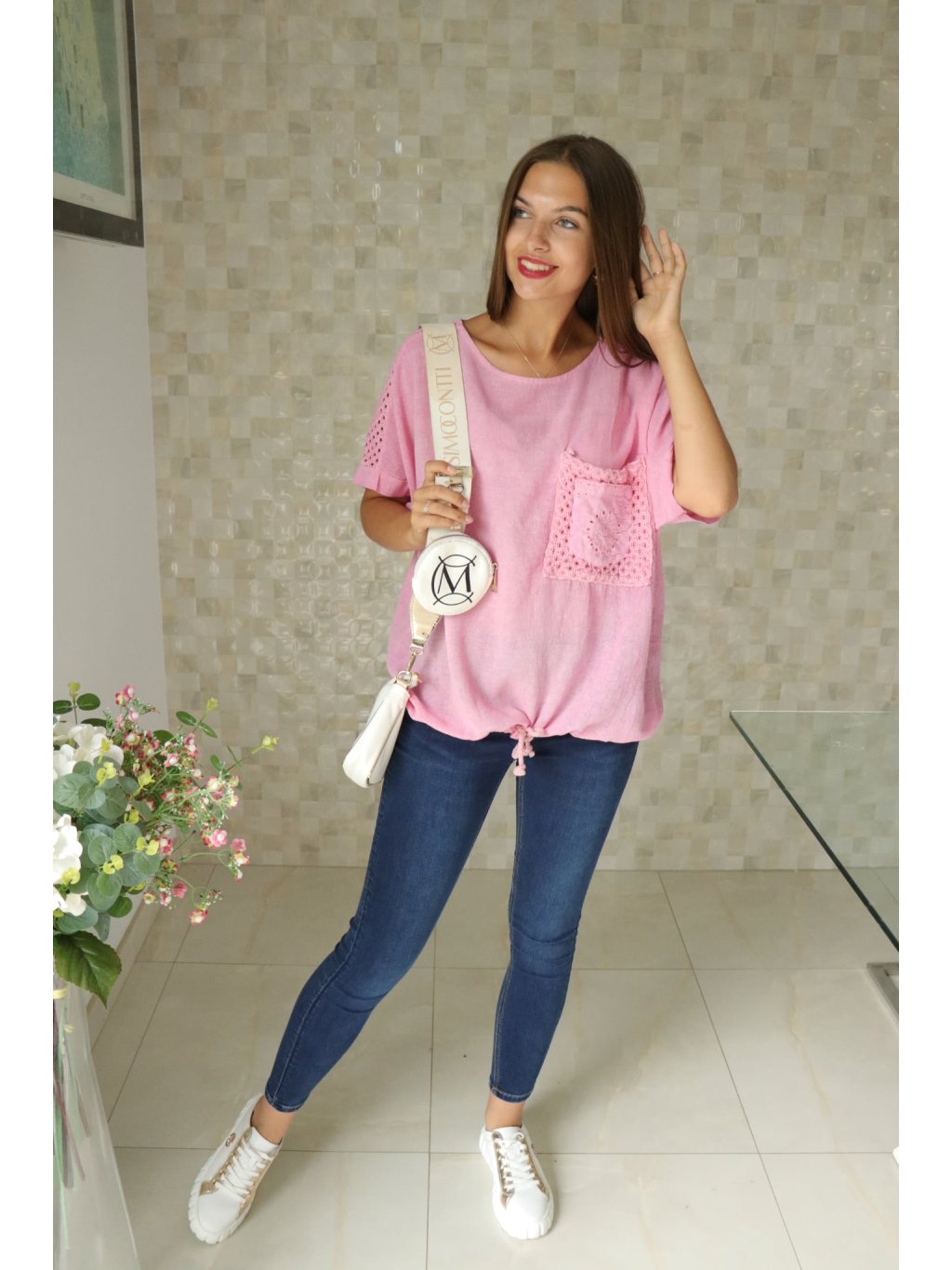 💃 Elegantní dámská halenka vyrobená z kvalitního materiálu (95% bavlna, 5% elastan) v přírodní barvě. Halenka má zajímavý design s dírovaným vzorem a kapsou ve přední části, který dodává nadčasový a ženský vzhled.