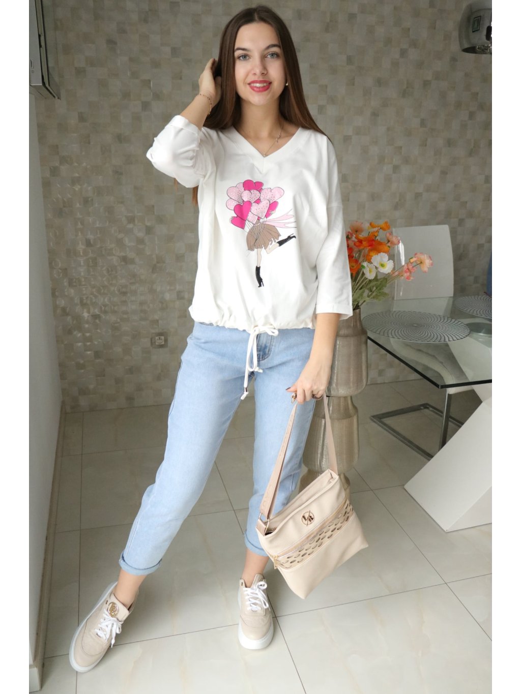 🌸✨ Růžová halenka s kamínky a balónovým efektem na stažení ✨🌸