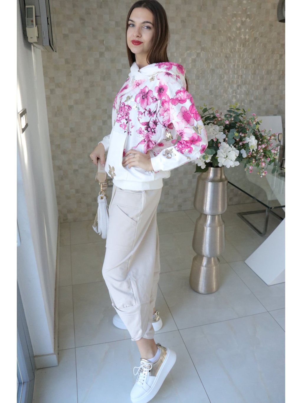 🌸 Růžová mikina s kapucí a květy – jarní kolekce 🌸