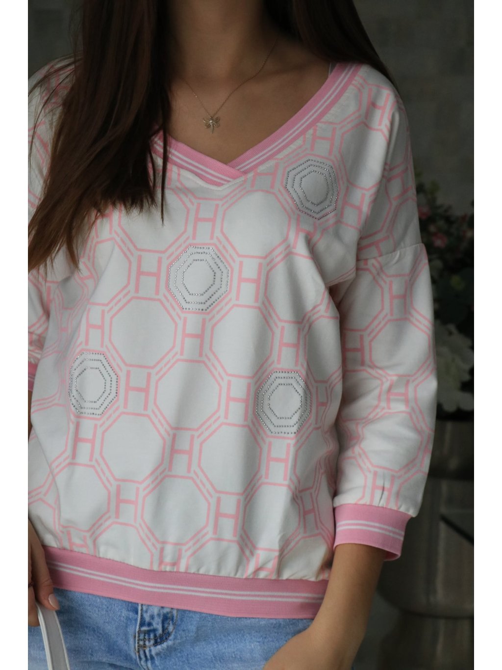 Růžová mikina s kolečky a kamínky H vel. S/M, L/XL