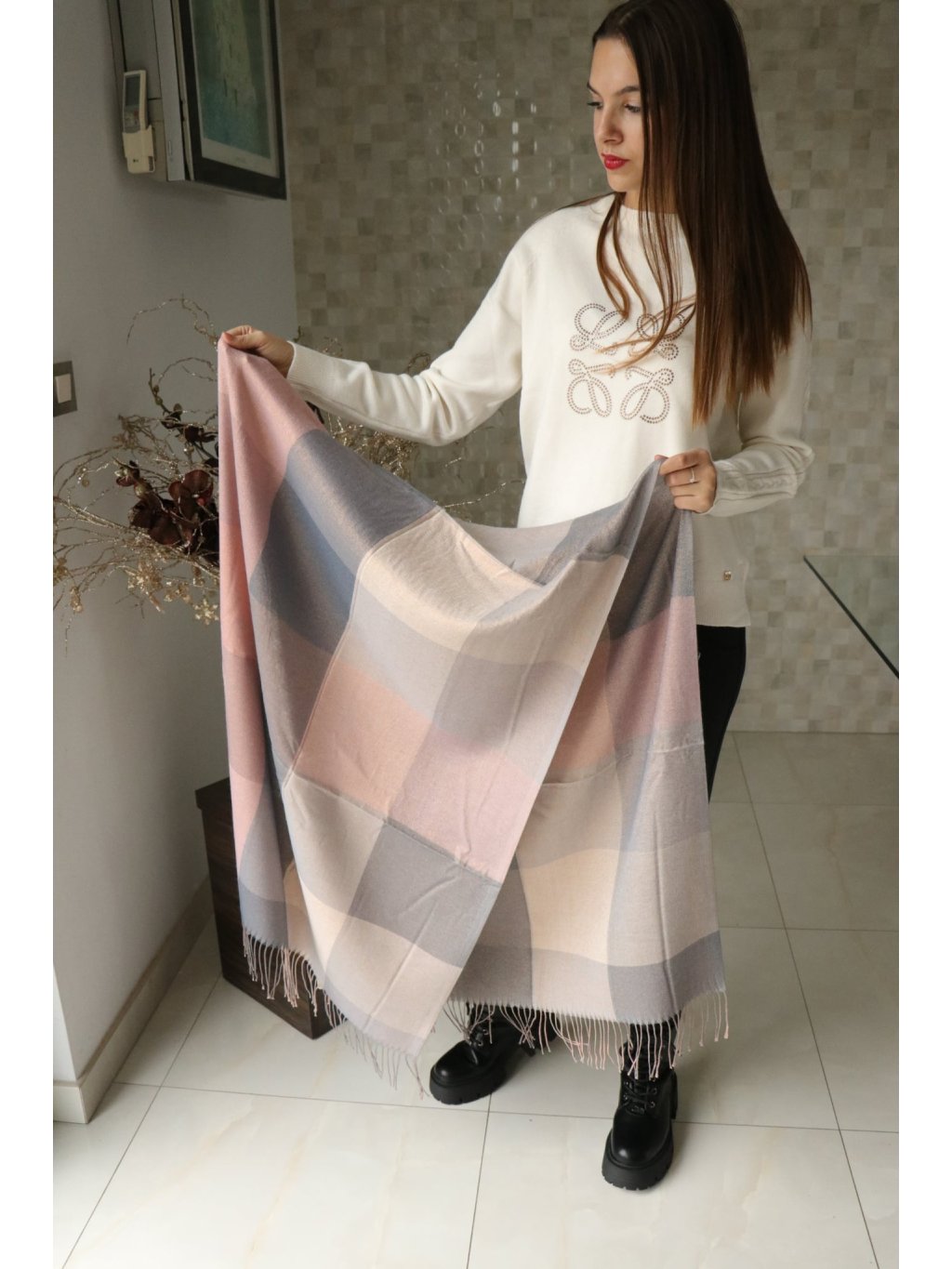 ✨ **Elegantní kostkovaný šátek** v jemné růžové barvě s třpytivým lurexem
