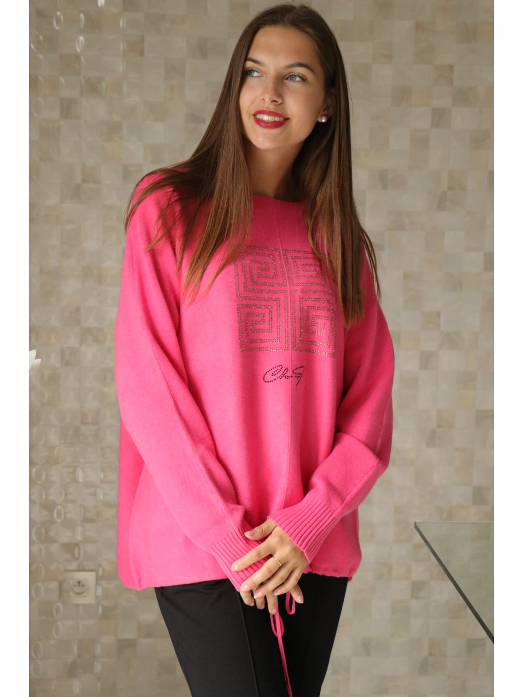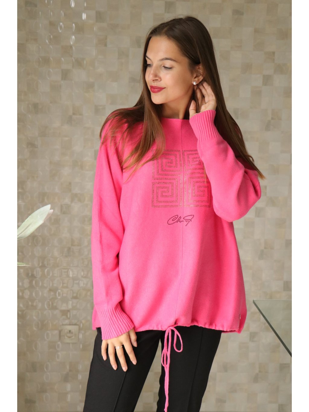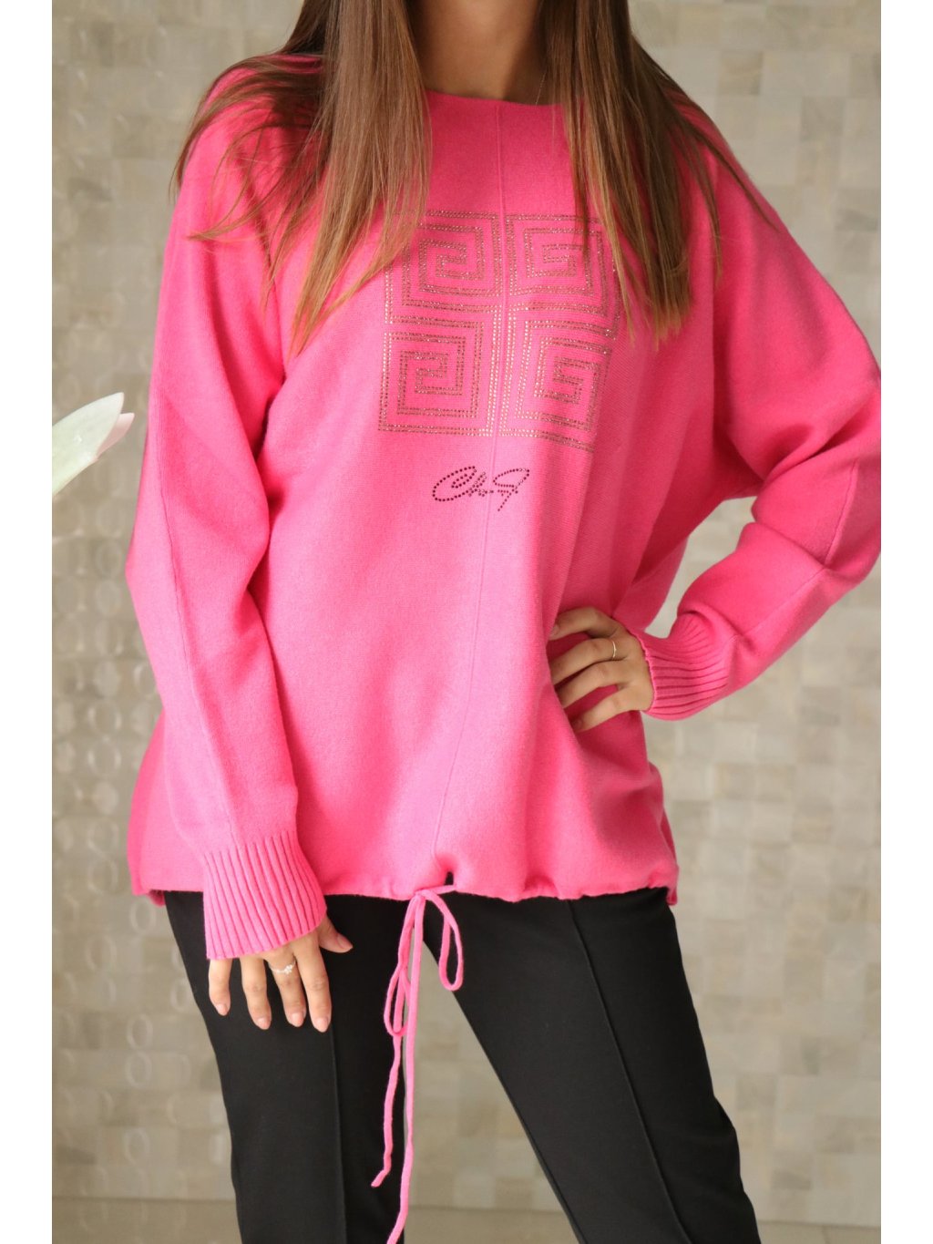 Hebký svetr v nadčasovém provedení z jemné směsi vláken s decentním leskem kamínků a stahováním v dolním lemu — pohodlný, pružný a ideální jako vrstva na podzim.