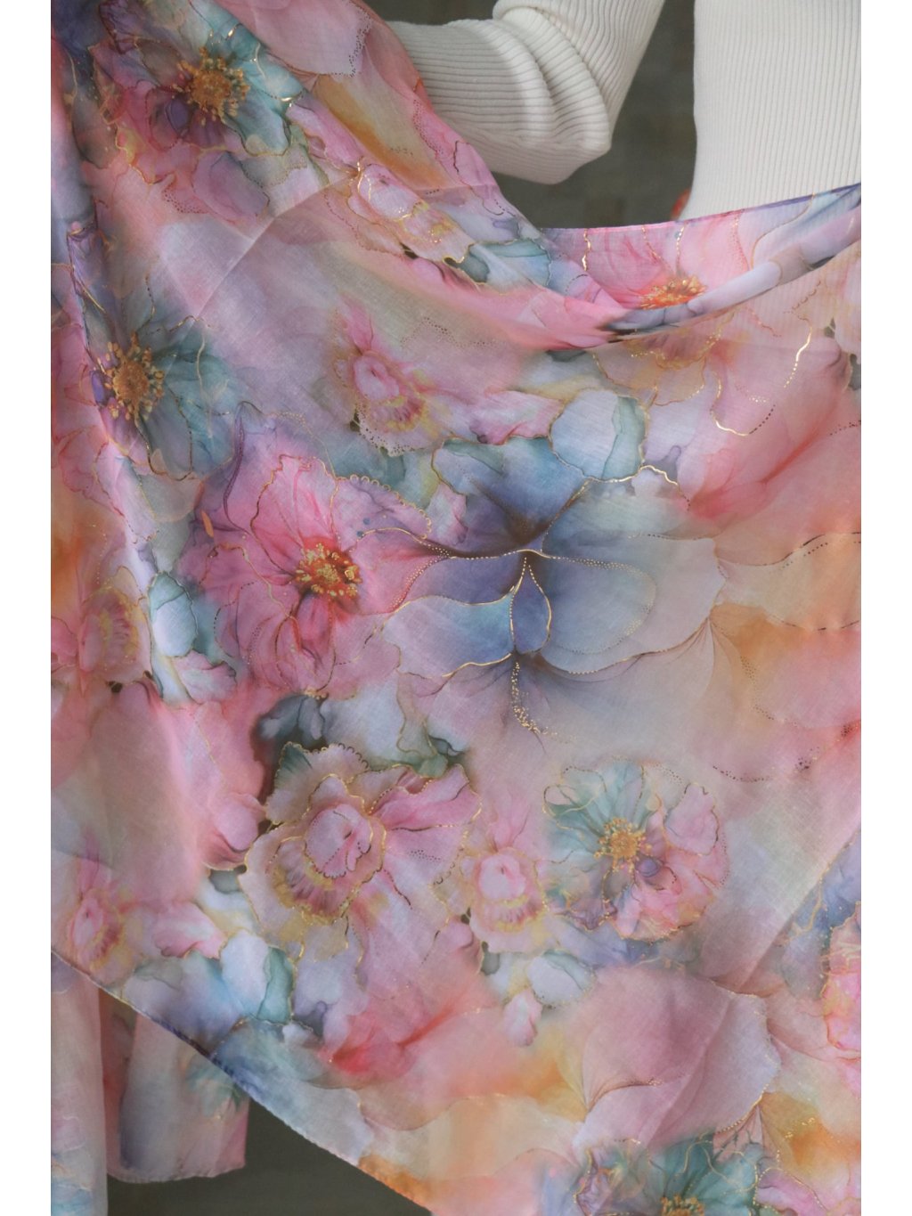 💗✨ Růžový šátek s květy a zlatými detaily – jemný a elegantní doplněk ✨💗
