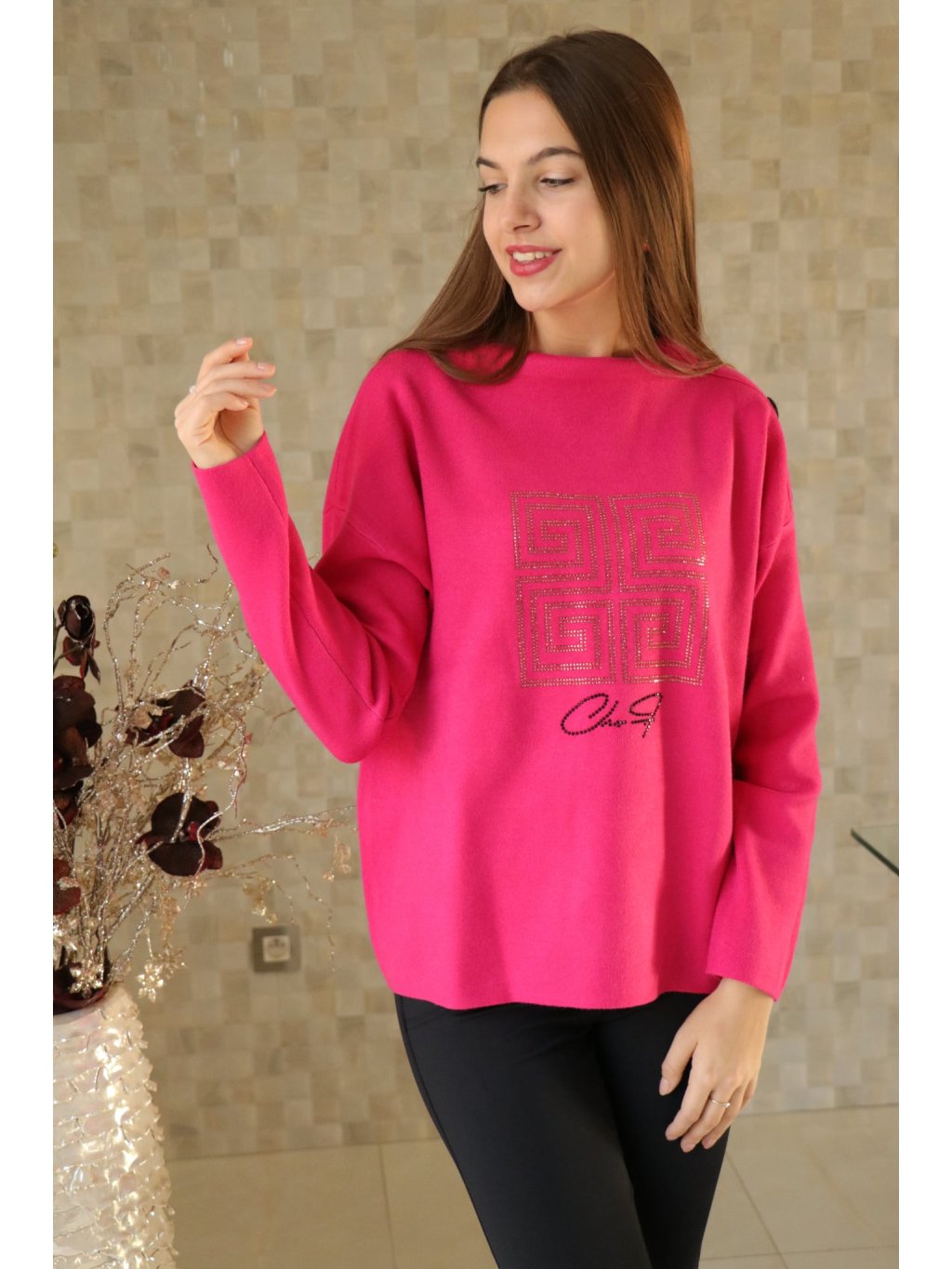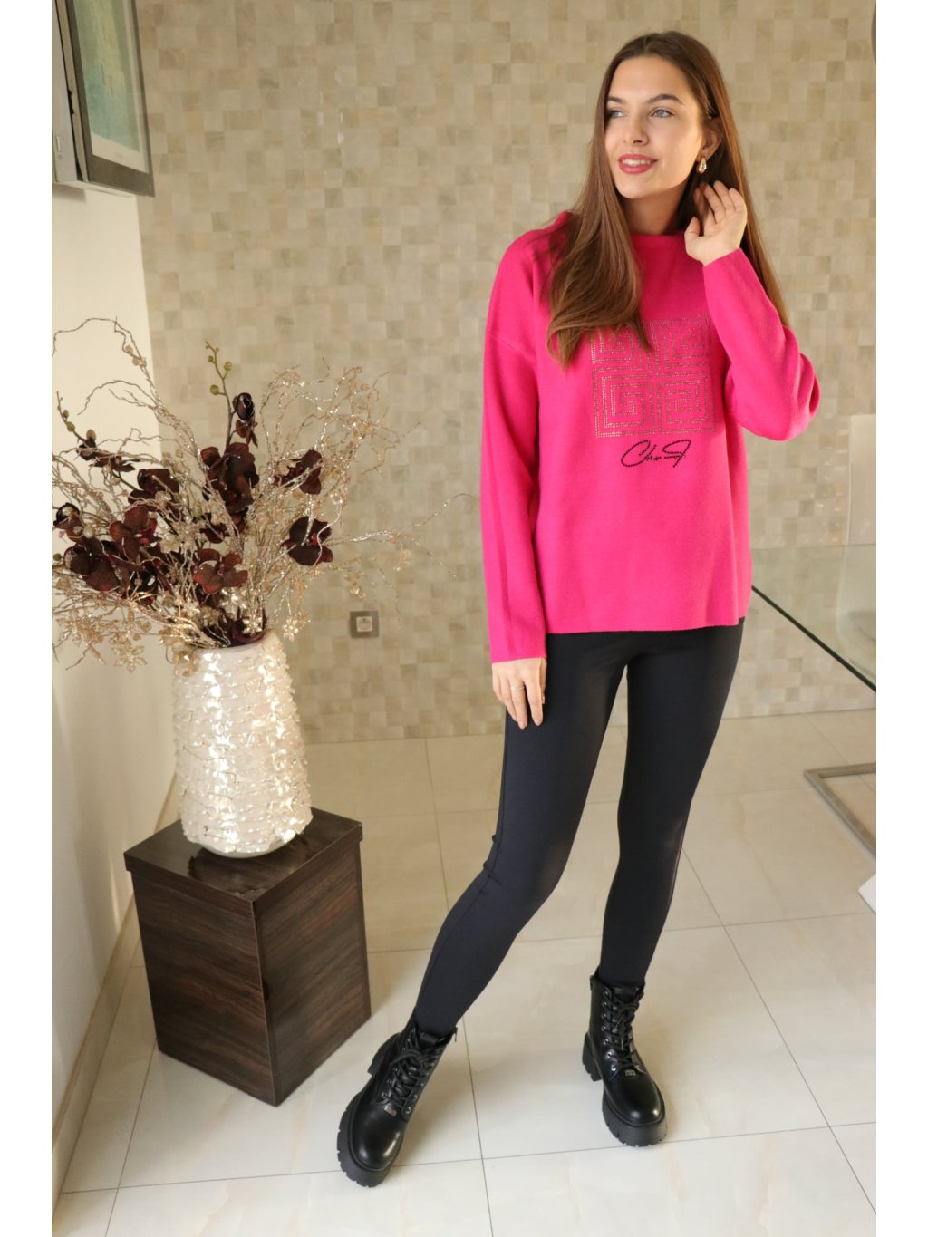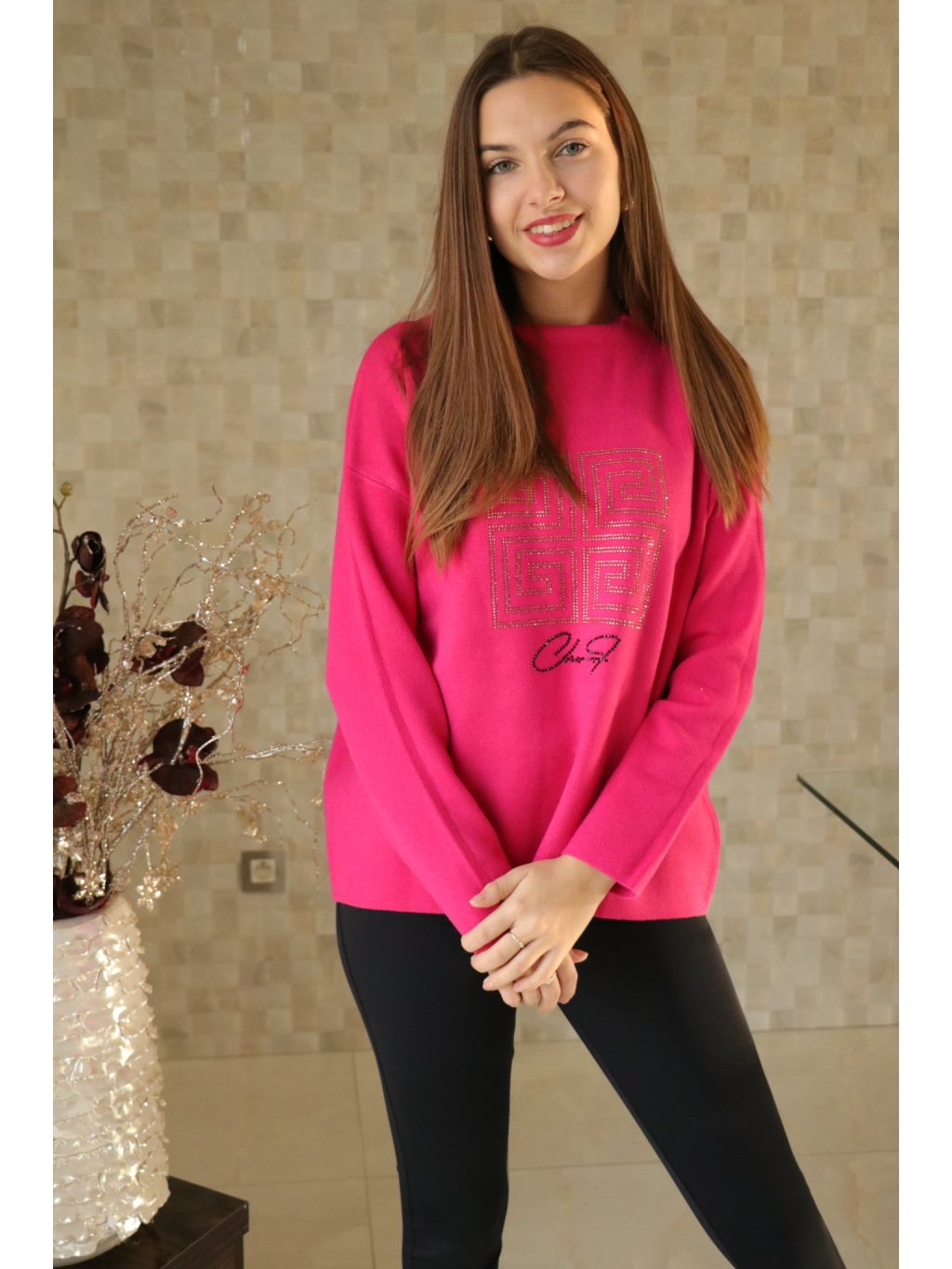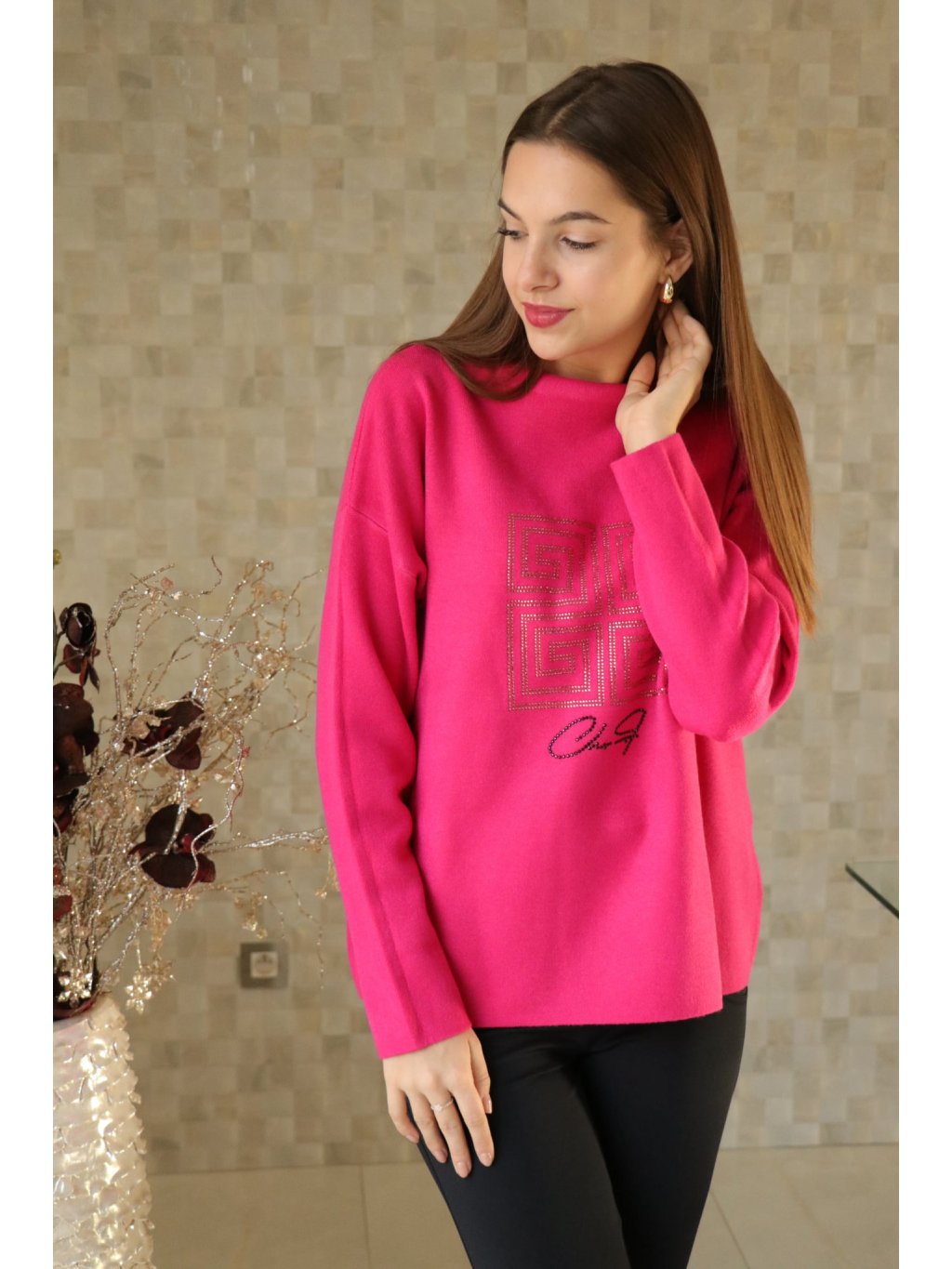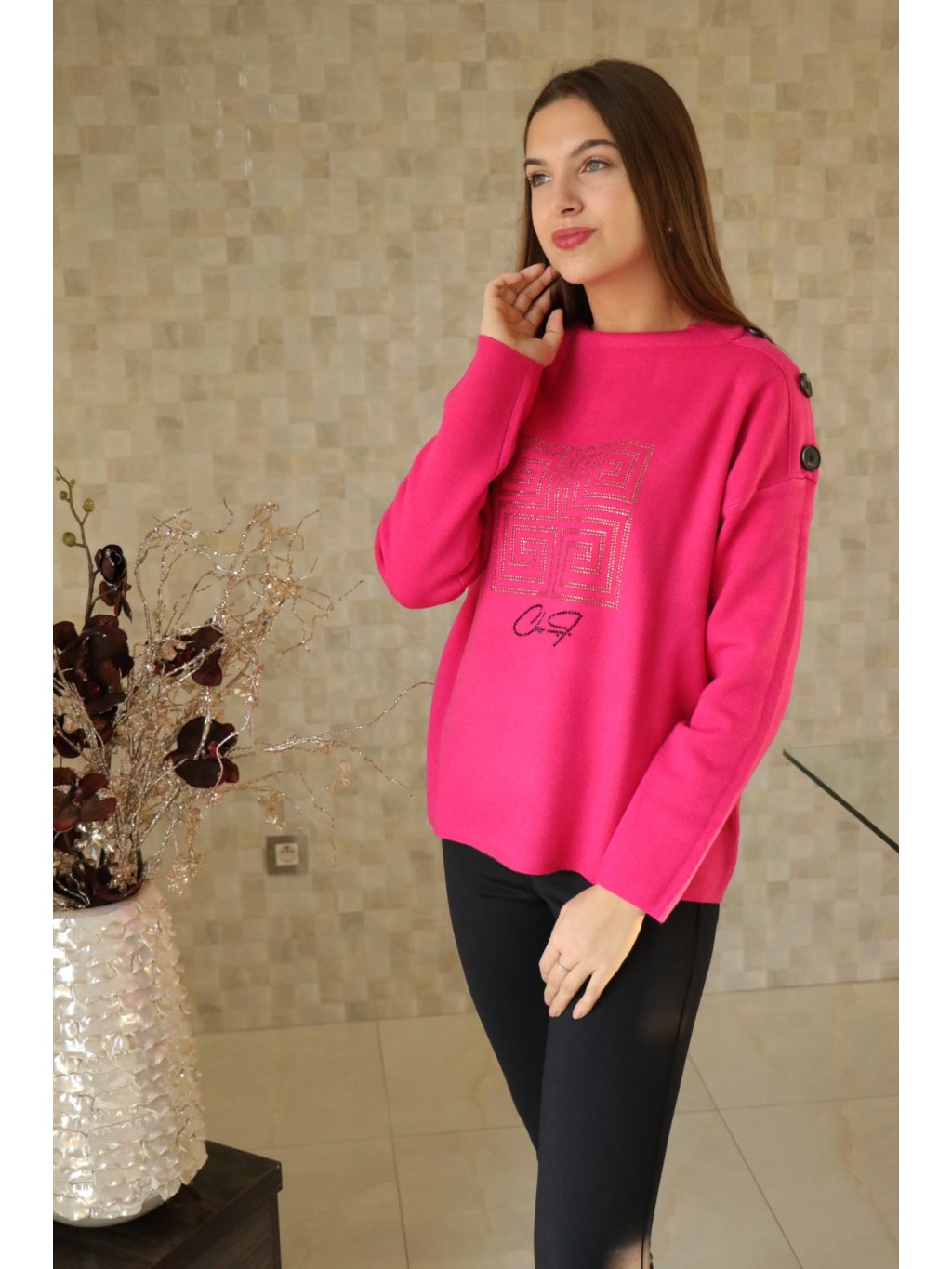 Růžový svetřík s kamínky a knoflíky u krku vel. UNI