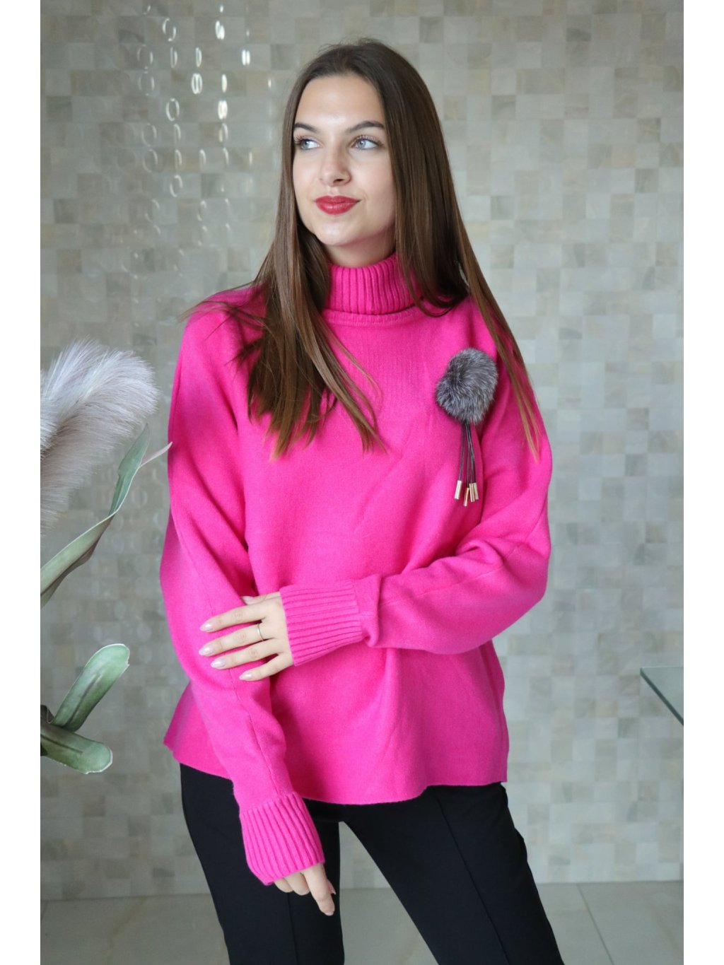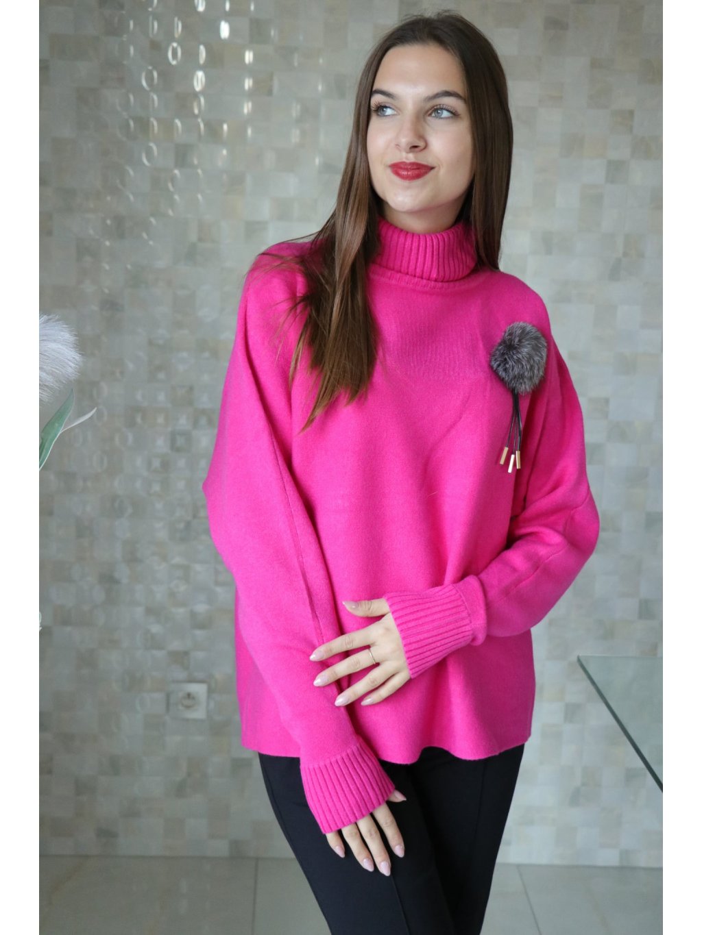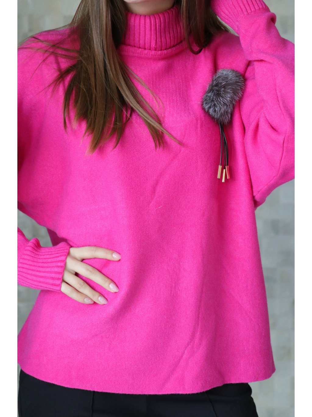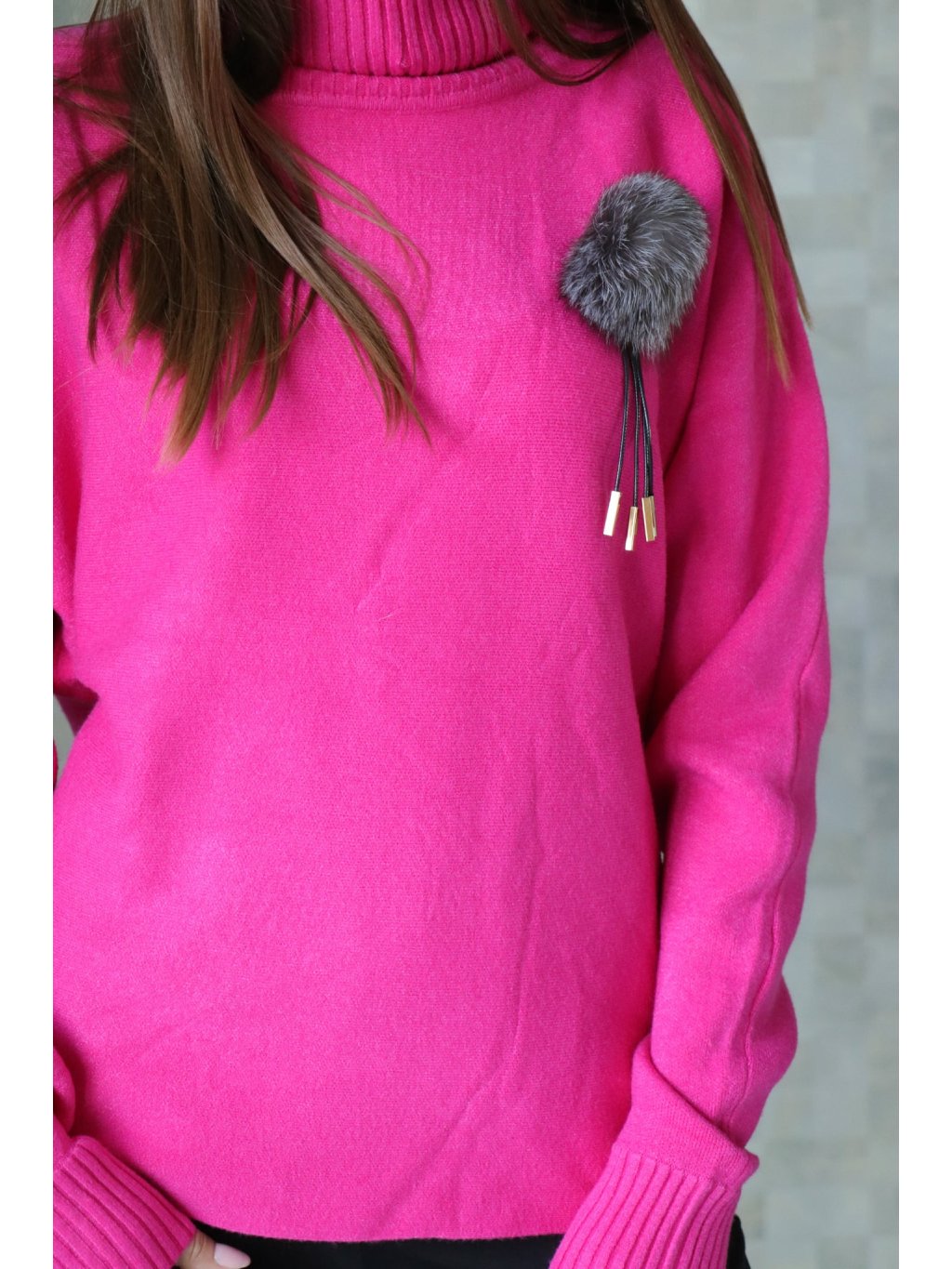 # Růžový svetřík s kožešinkou, vroubkovaný límec a konec rukávu 💗
