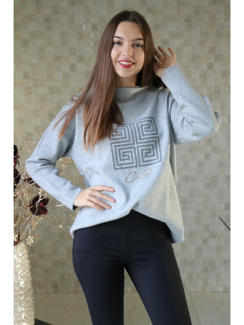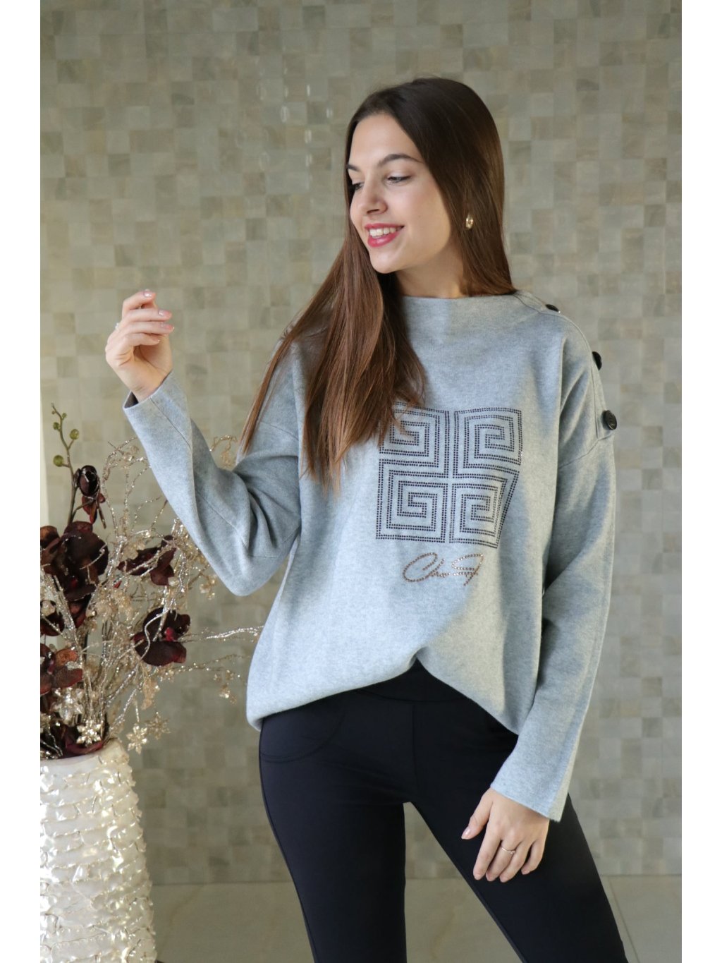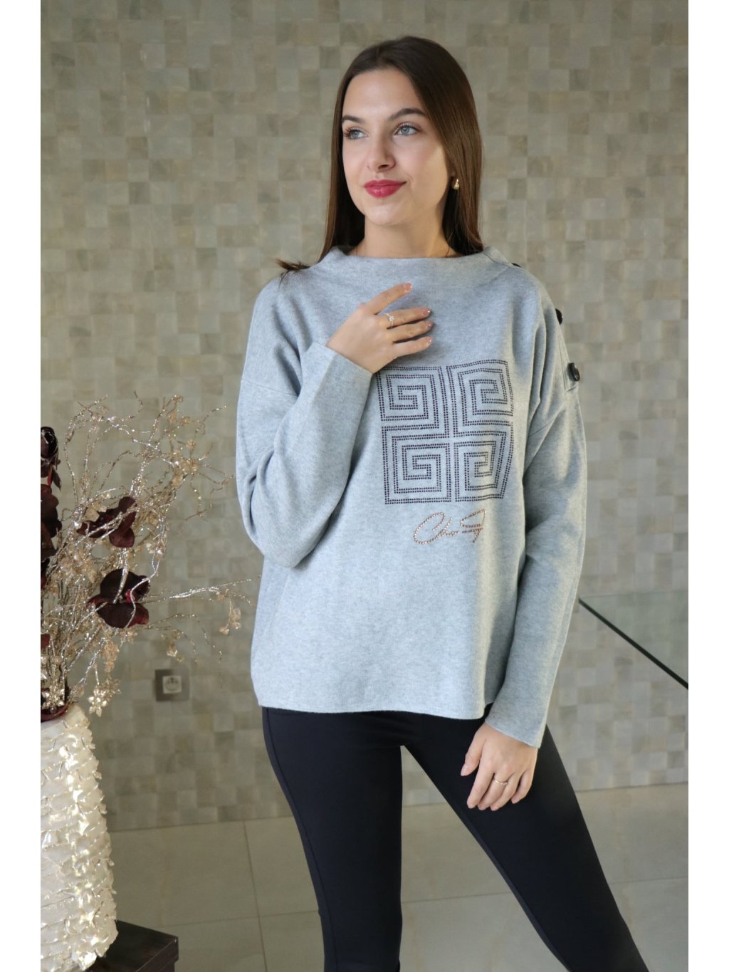 Šedý svetřík s kamínky a knoflíky u krku vel. UNI