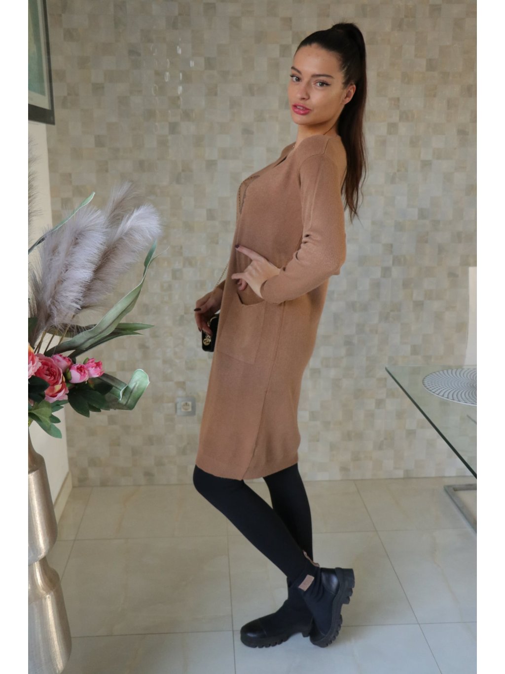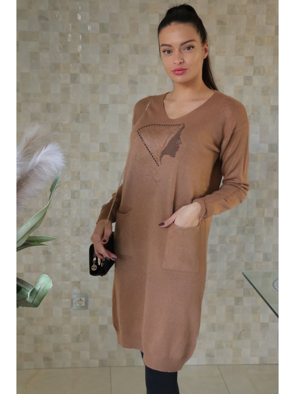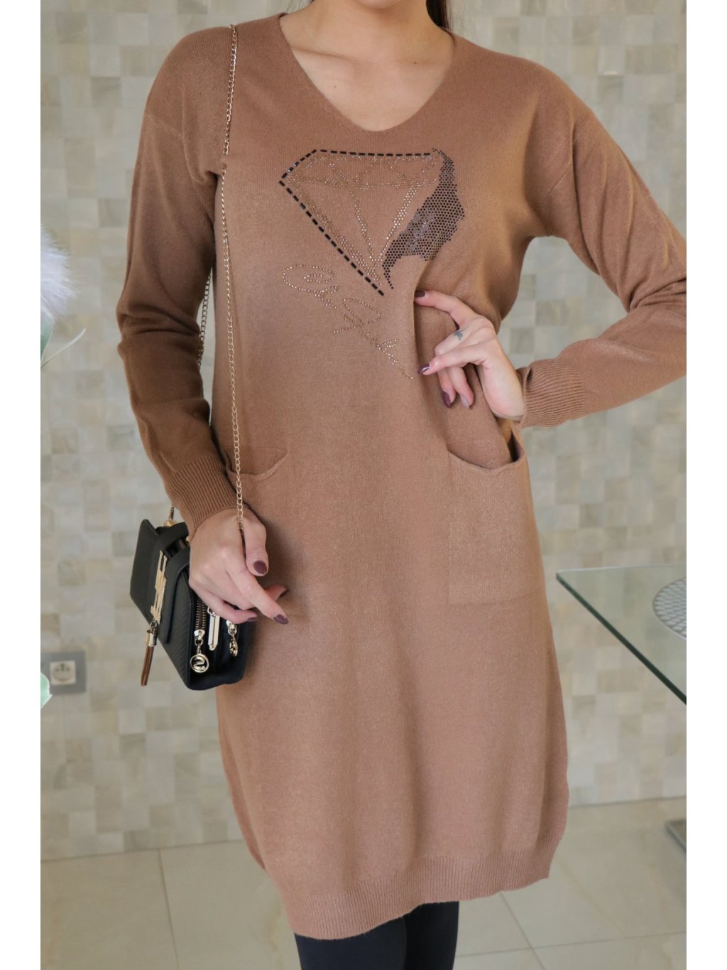 # 🤎 Skořicové šaty s kapsami a kamínky