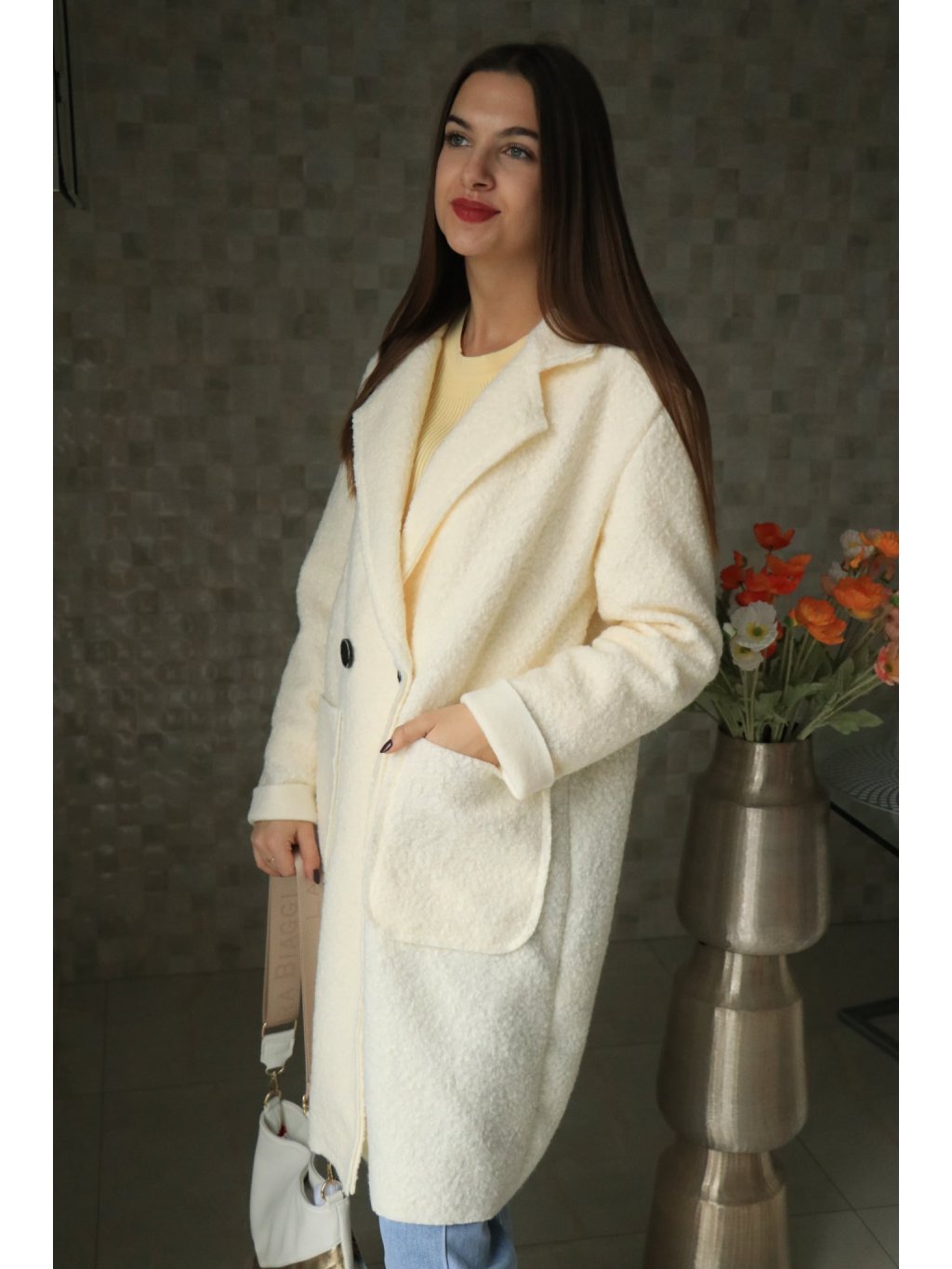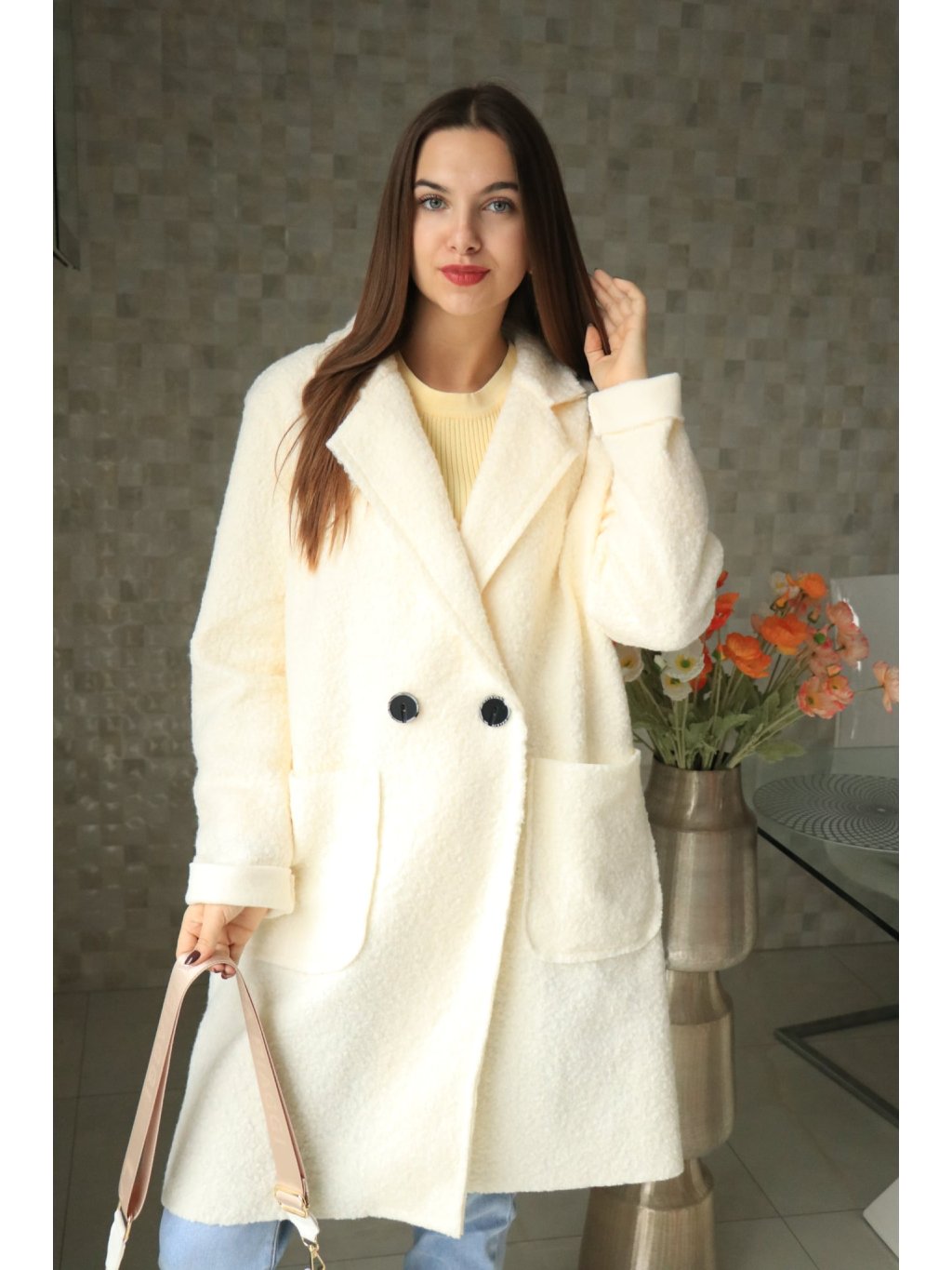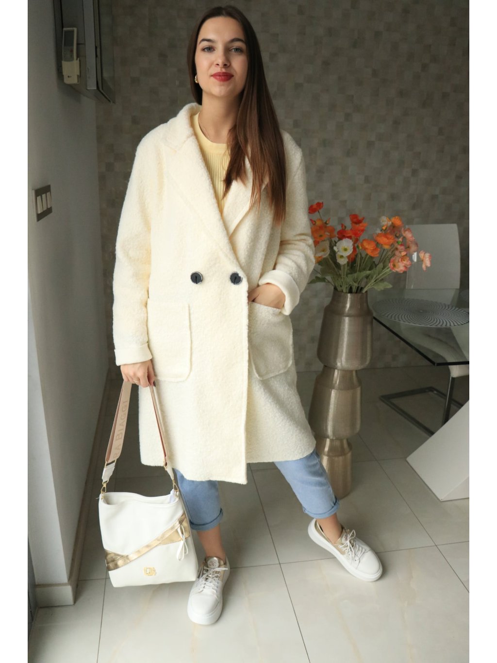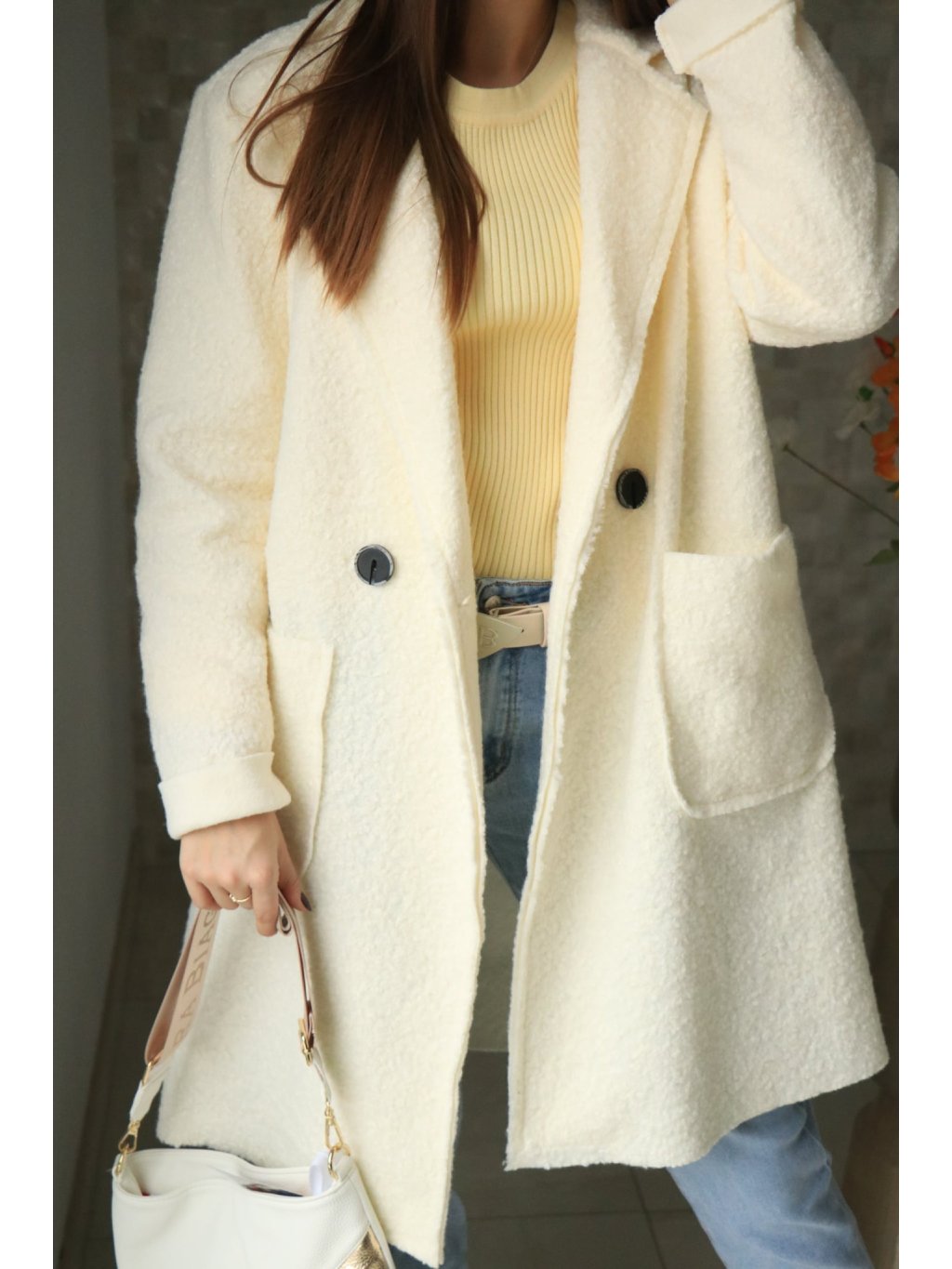 🤍✨ Smetanový buklé beránkový delší kabátek – jarní kolekce ✨🤍
