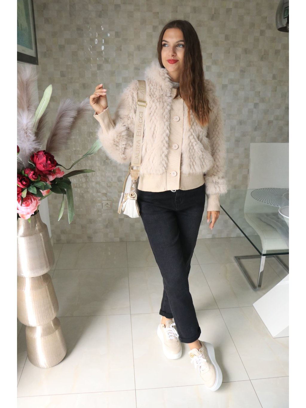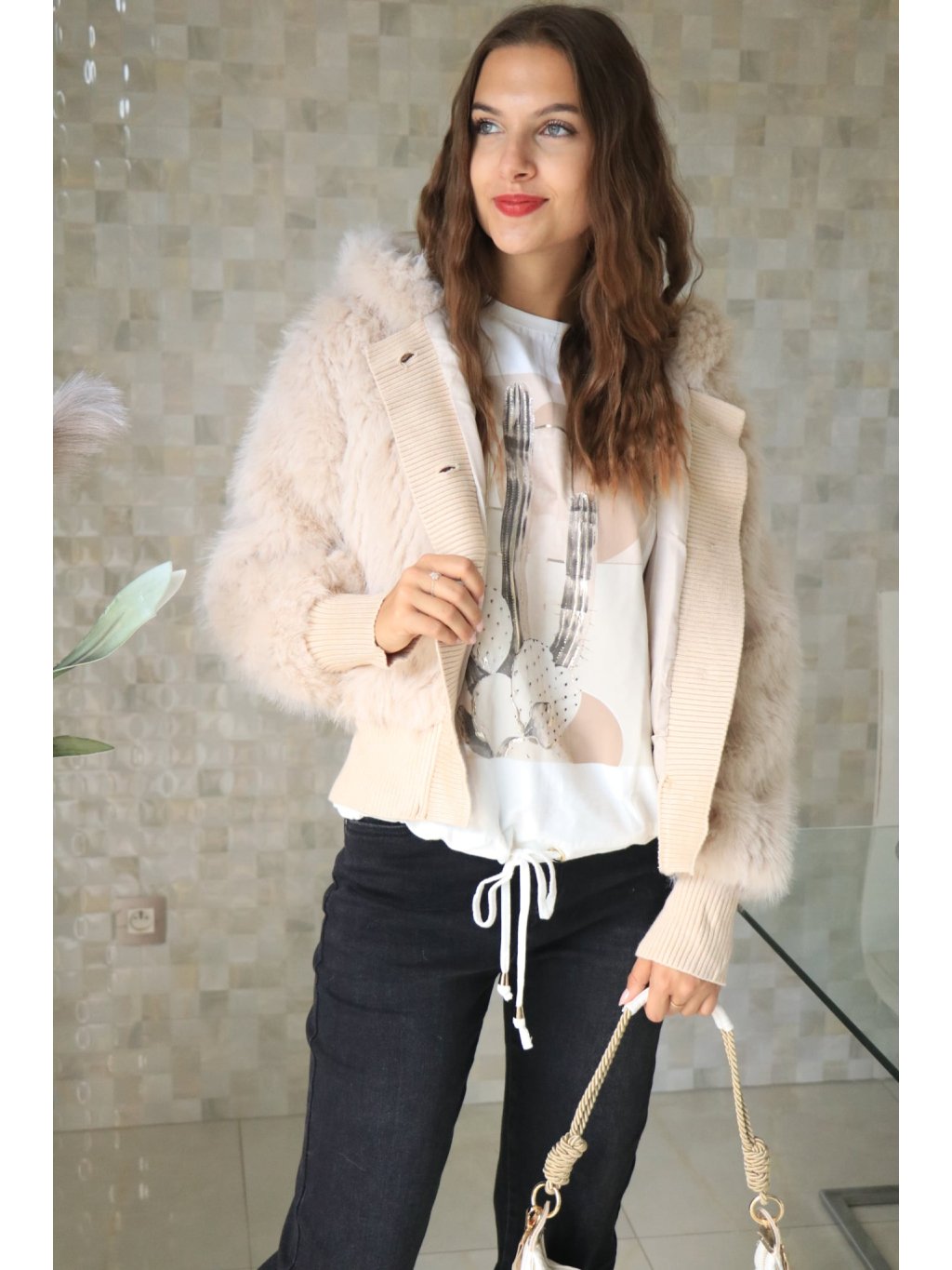 Světle béžová chlupatá mikina vel. S/M, M/L