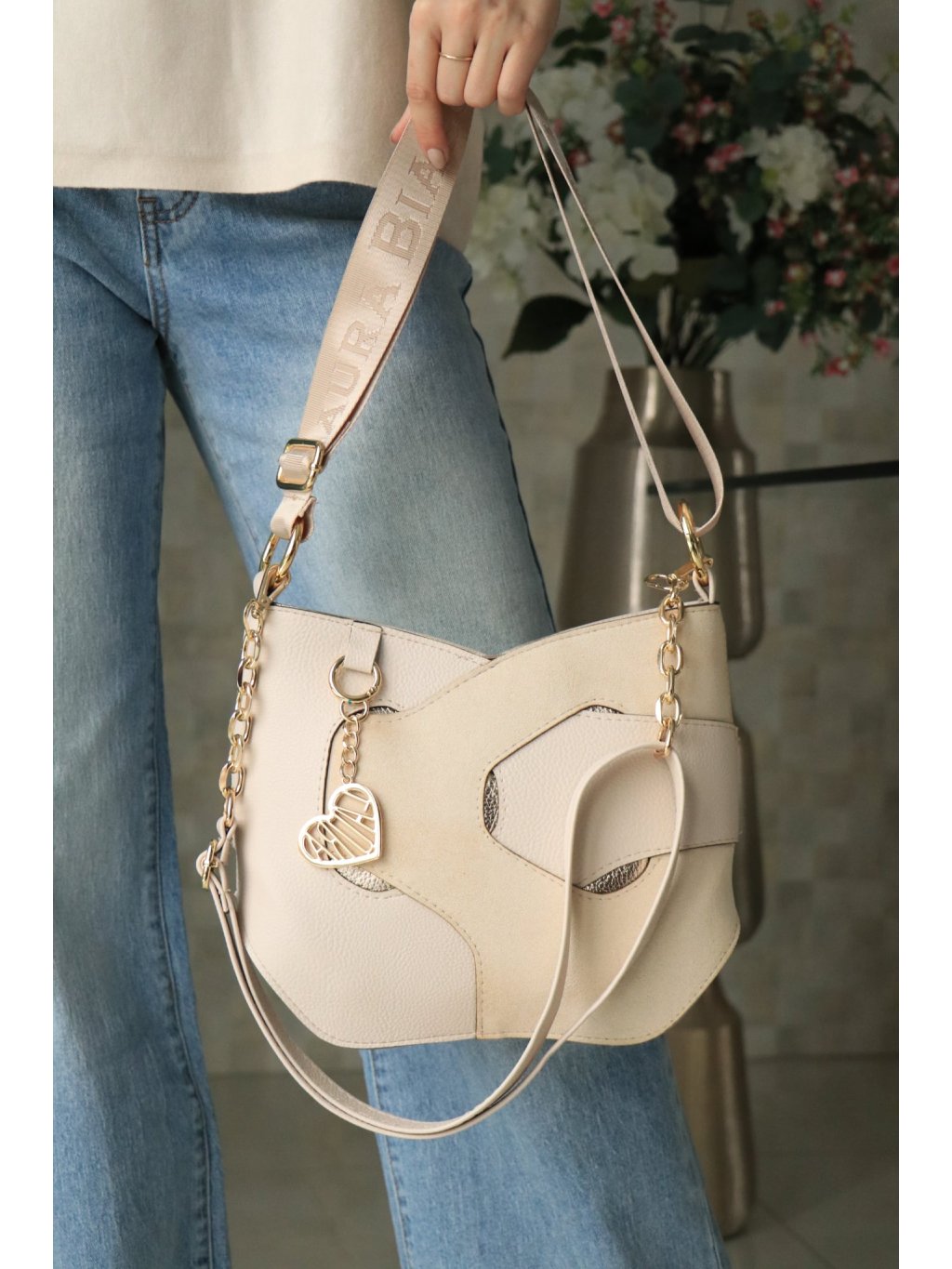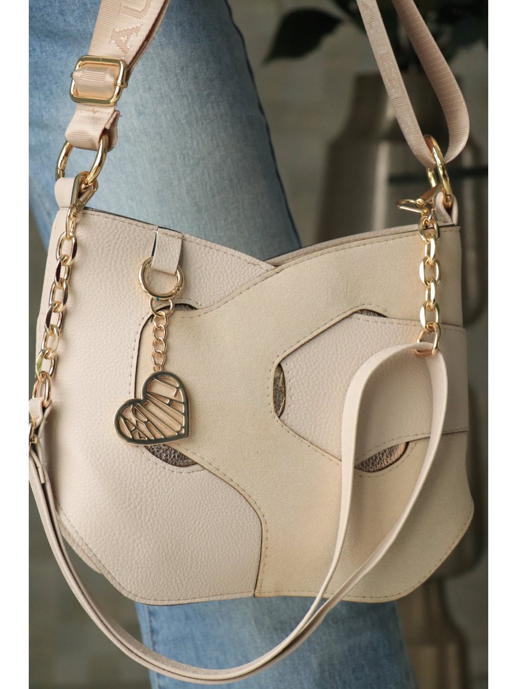 🤍 Světle béžová kabelka se srdíčkem a zlatými detaily – jarní kolekce 🤍
