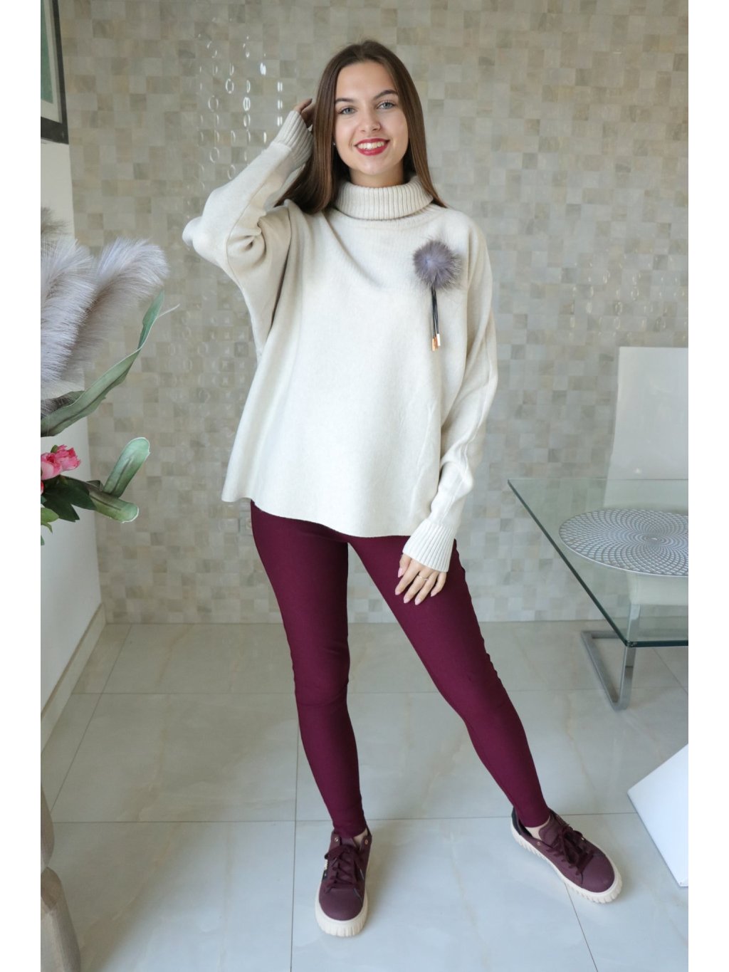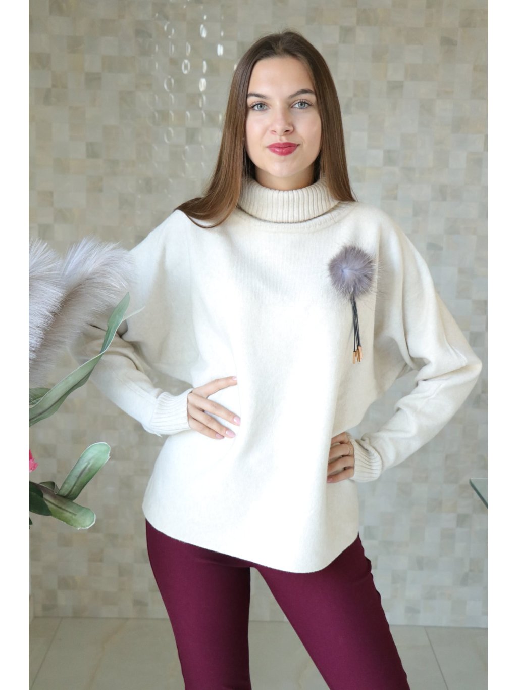 # Světle béžový svetřík s kožešinkou, vroubkovaný límec a konec rukávu 🤎