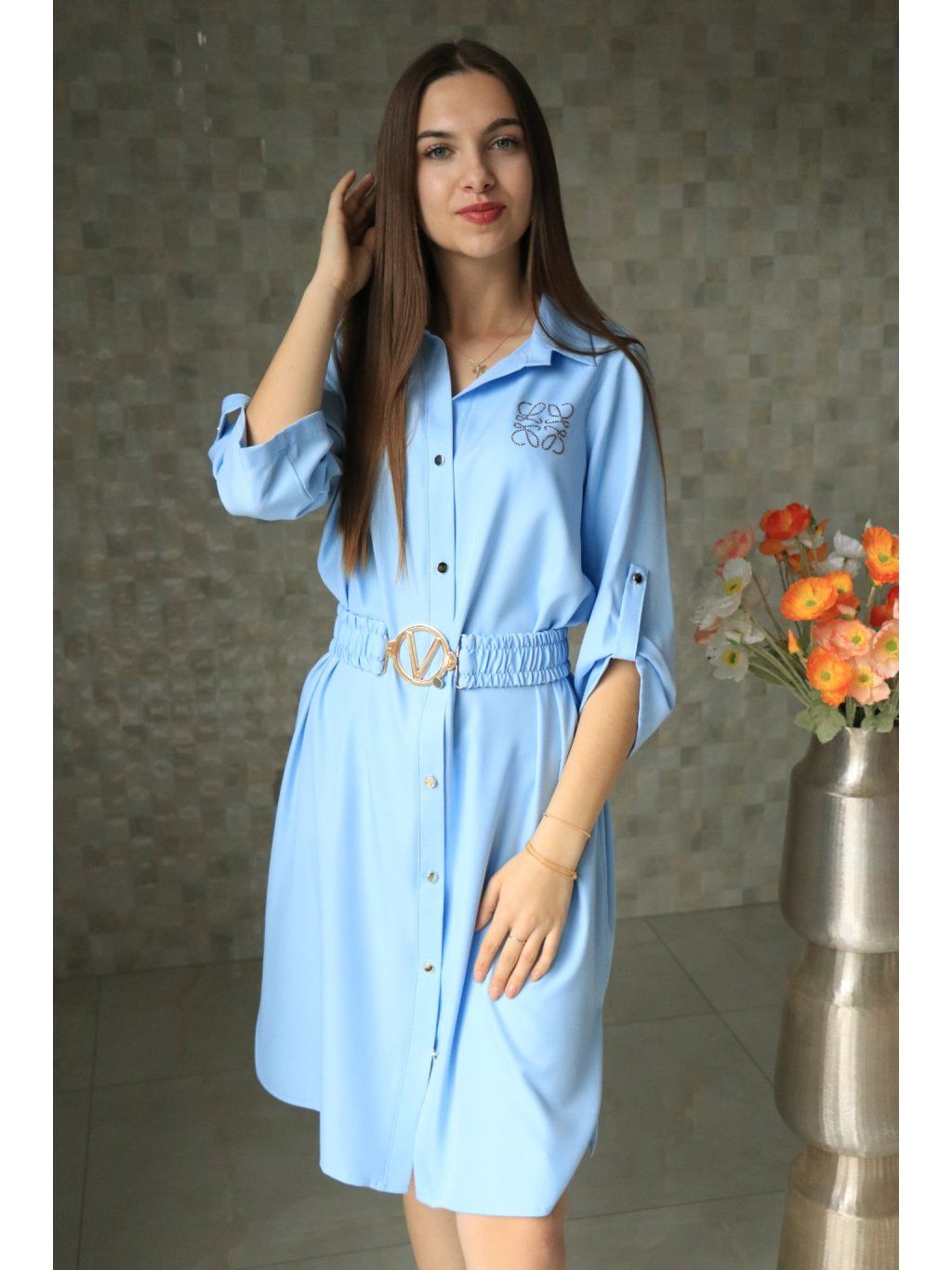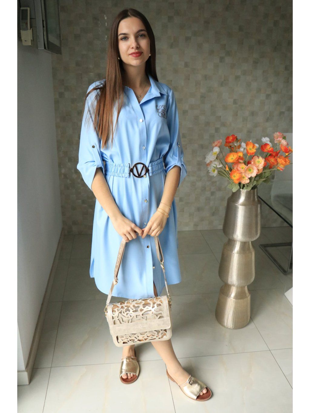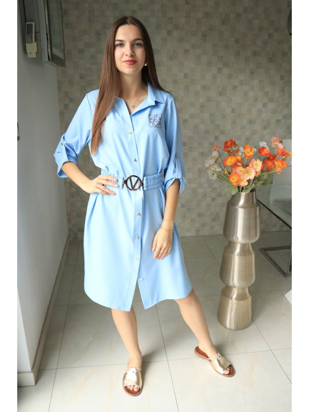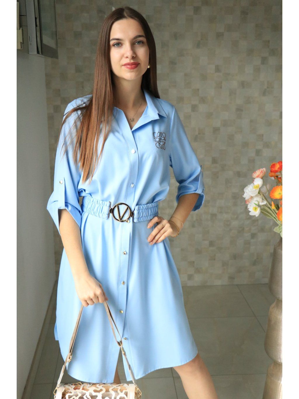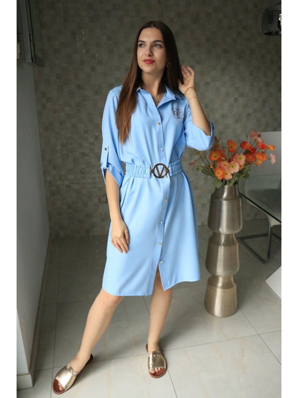 ✨💙 Světle modré šaty košilové s kamínky a páskem – elegantní a kouzelný styl ✨