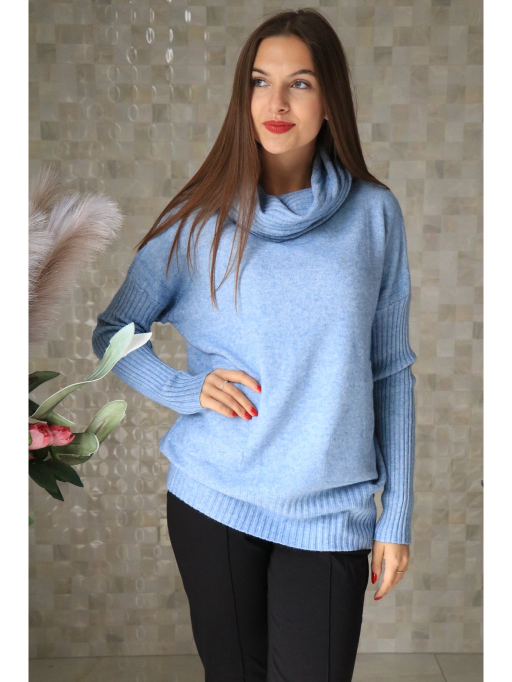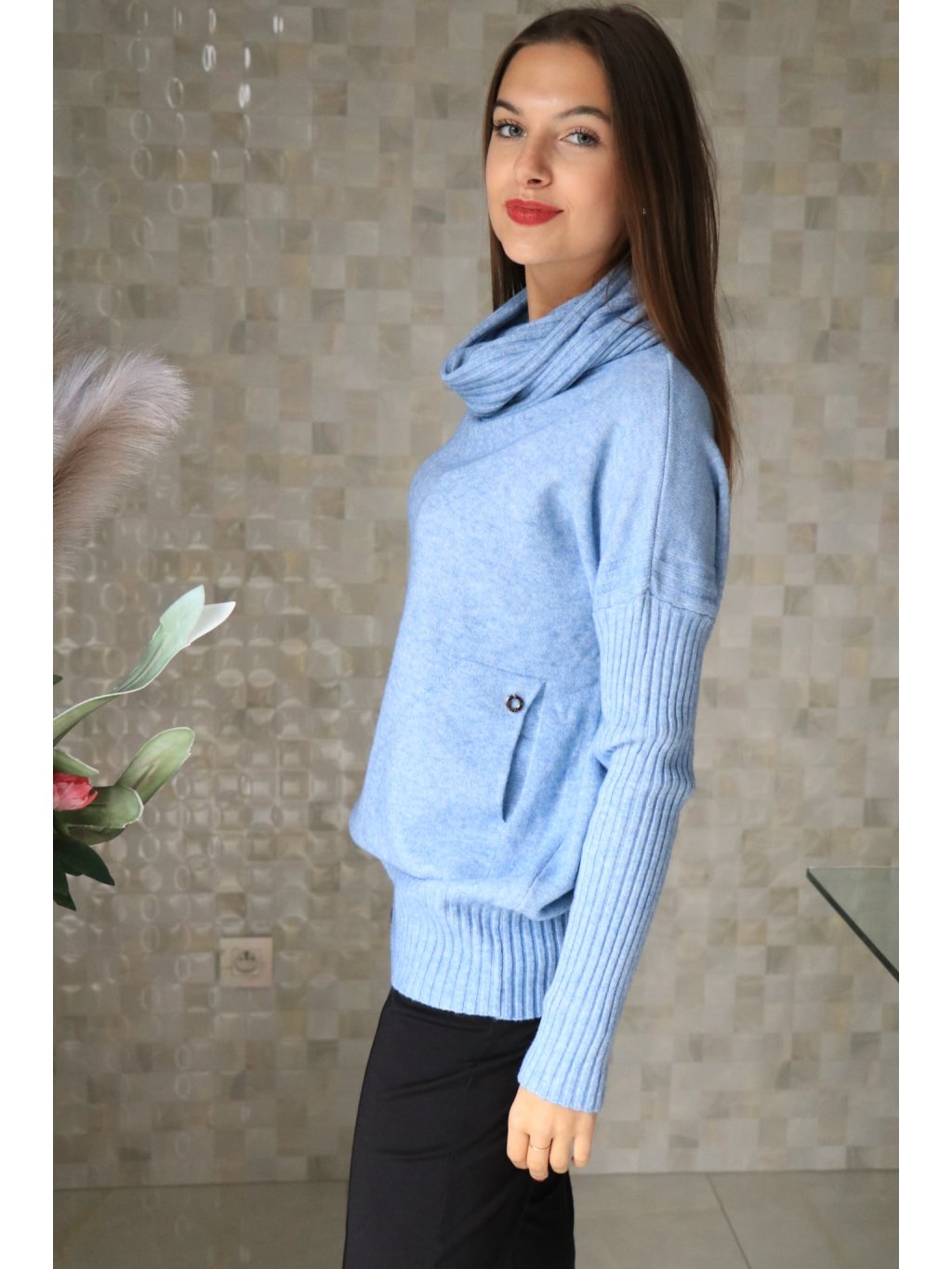 # Svetr s límcem světle modrý s kapsami