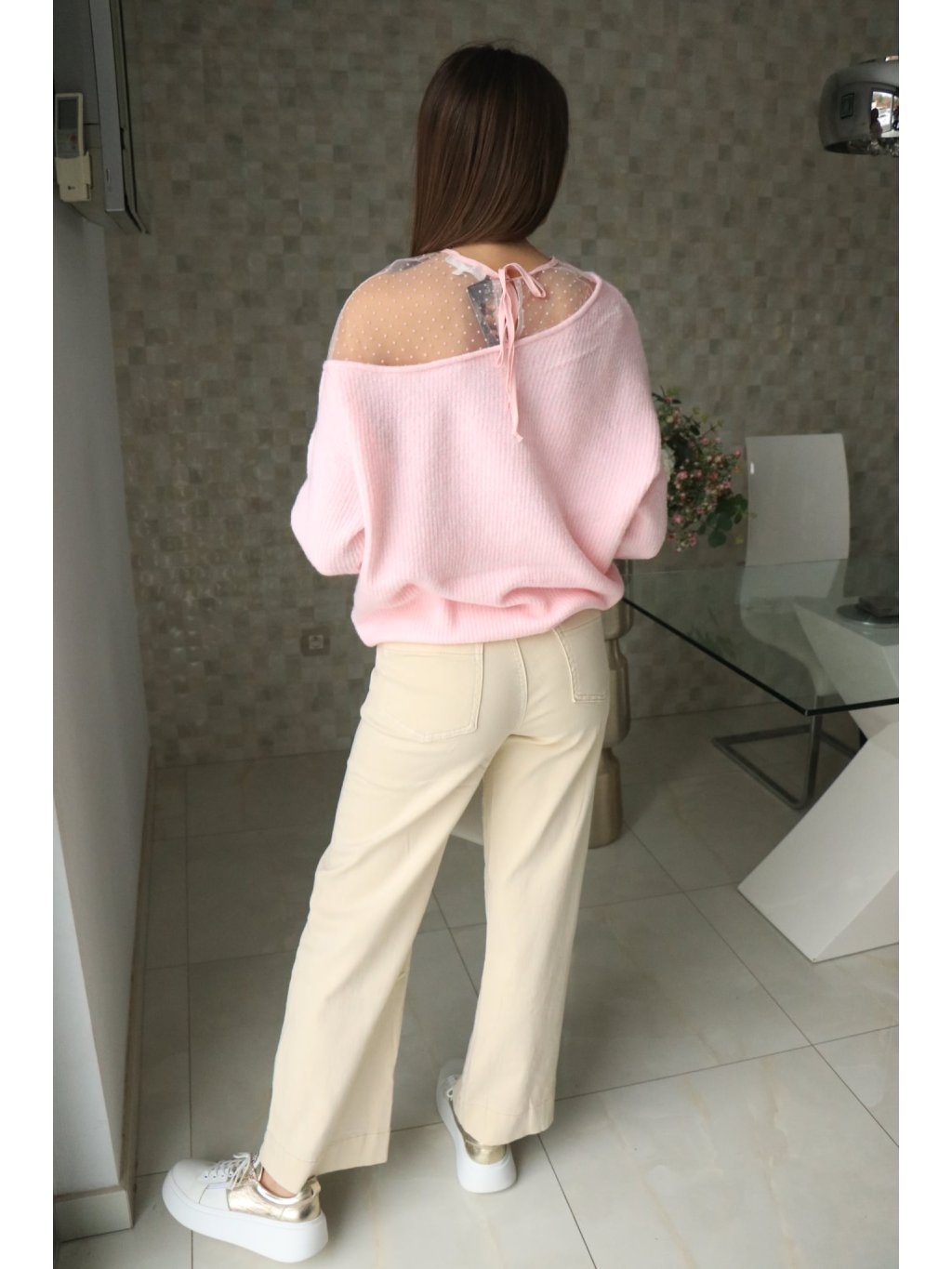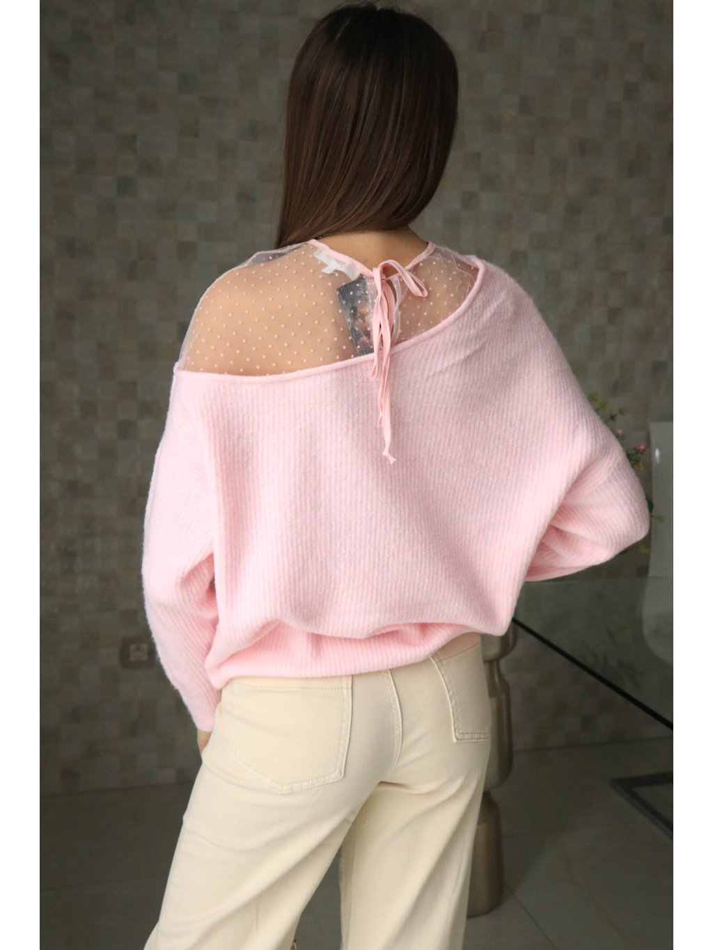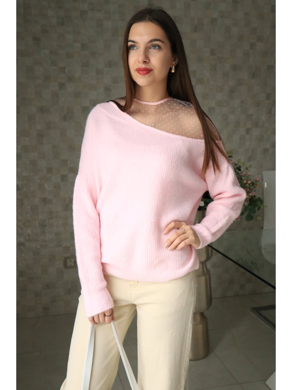 🌸 Světle růžový svetřík se síťkou a puntíky – jarní kolekce 🌸