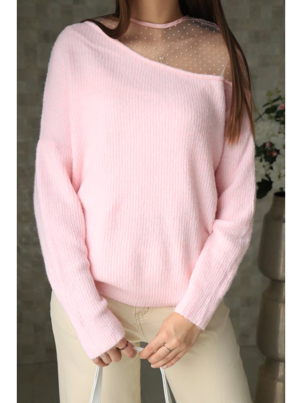 Světle růžový svetřík se síťkou a puntíky vel. UNI