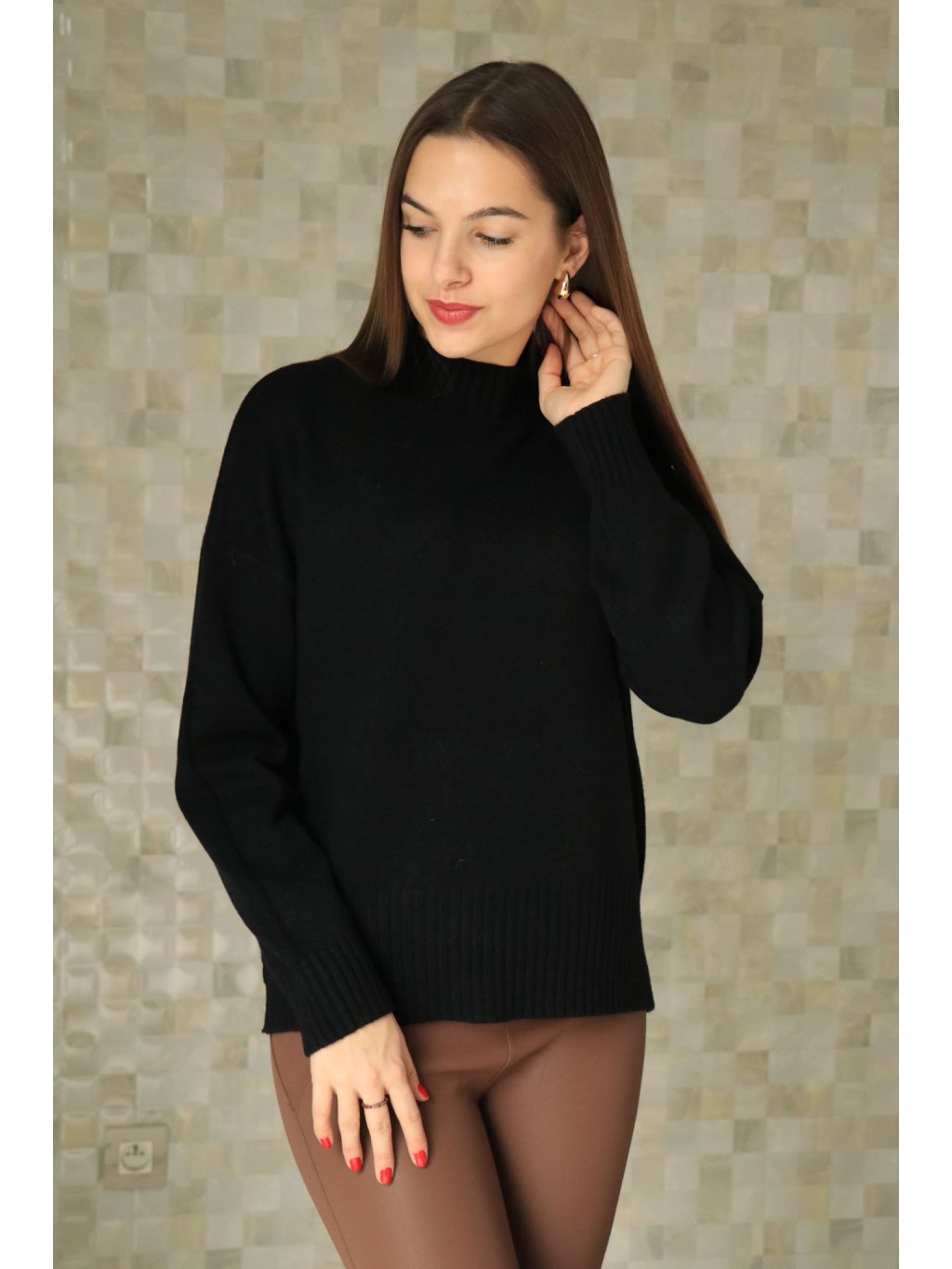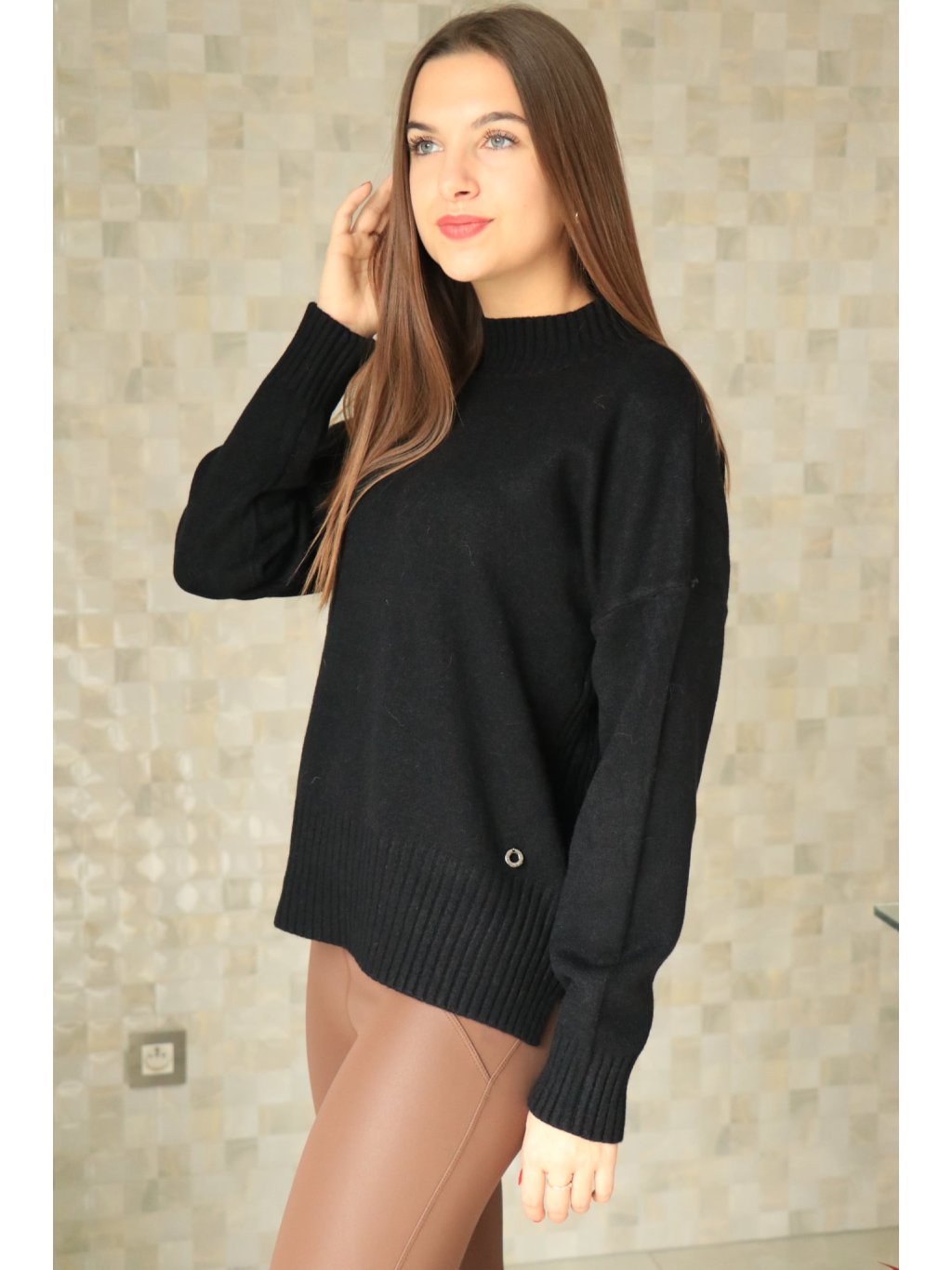 Svetr se stojáčkem v černé barvě