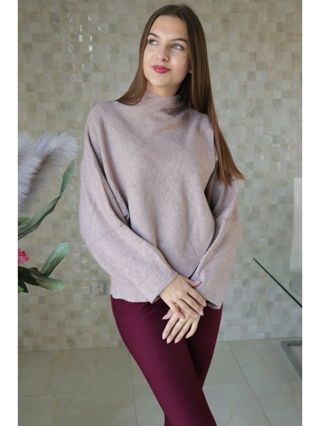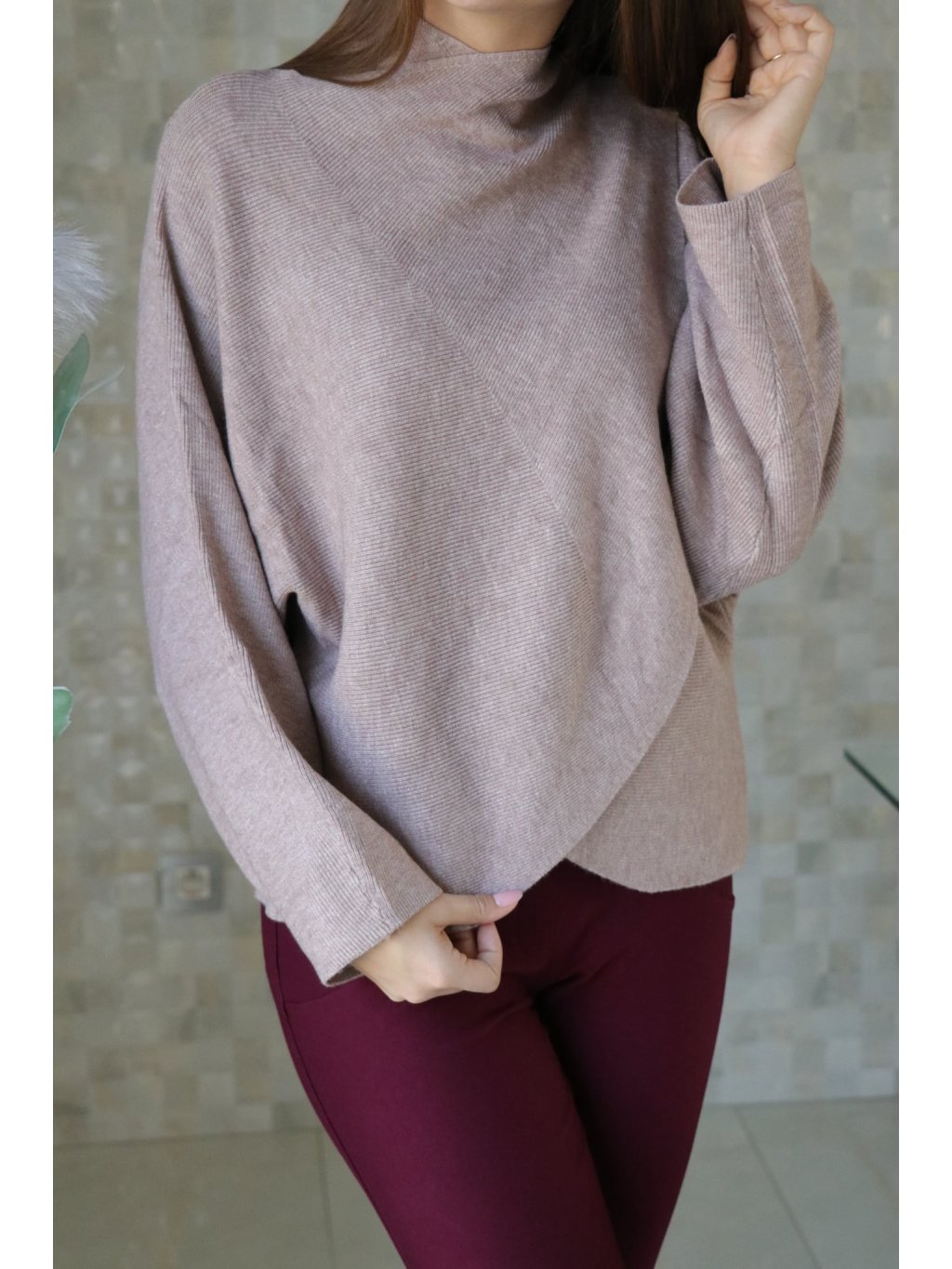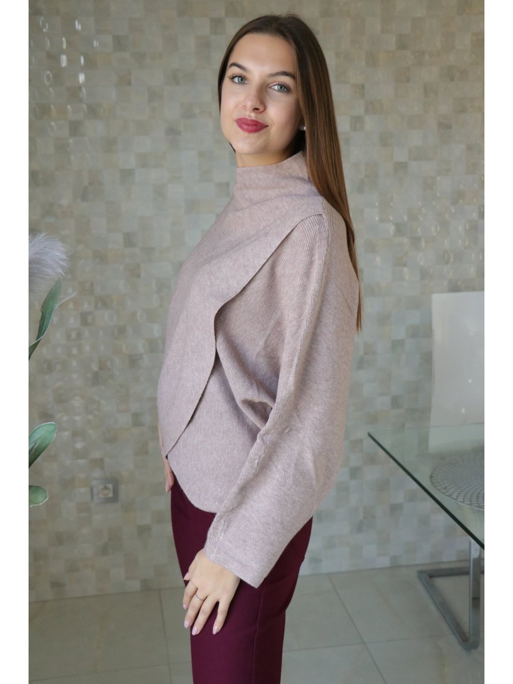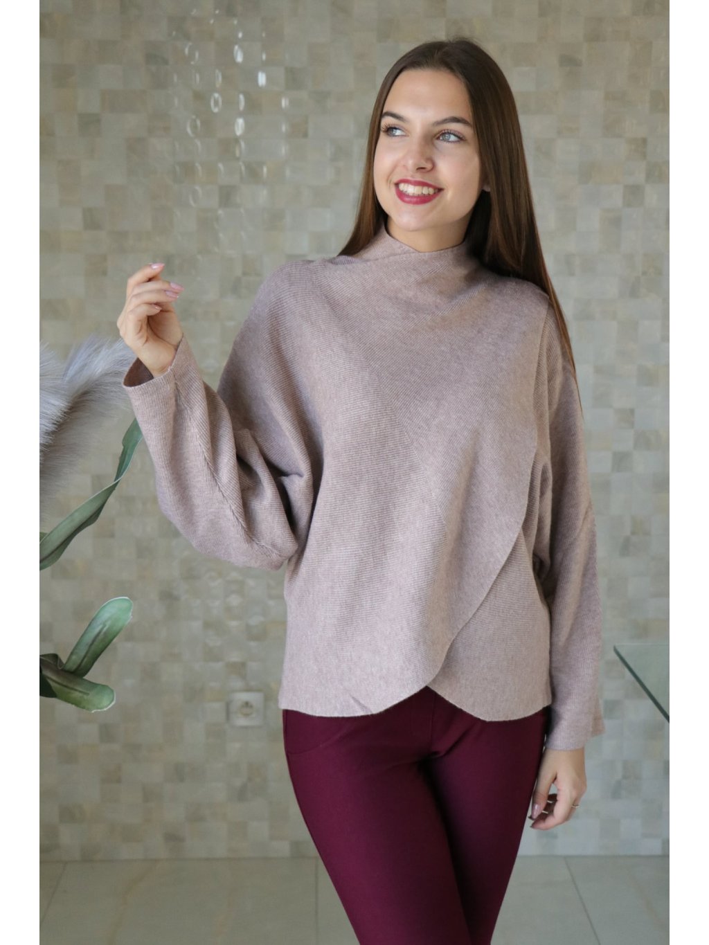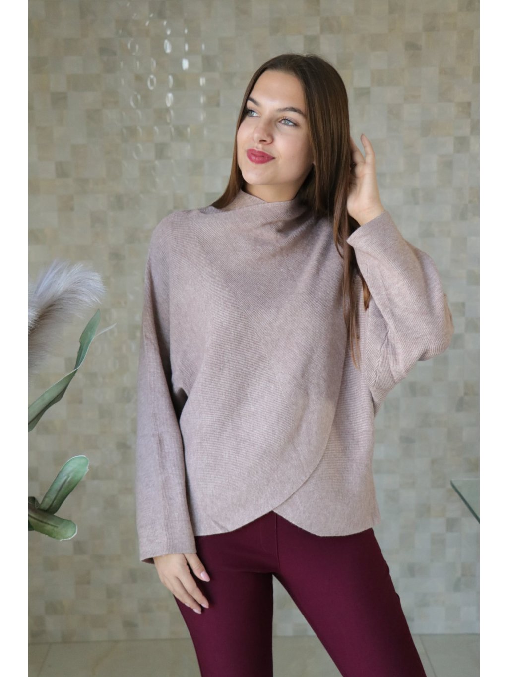 Tmavě béžový svetr překřížený s netopýřím rukávem vel. UNI