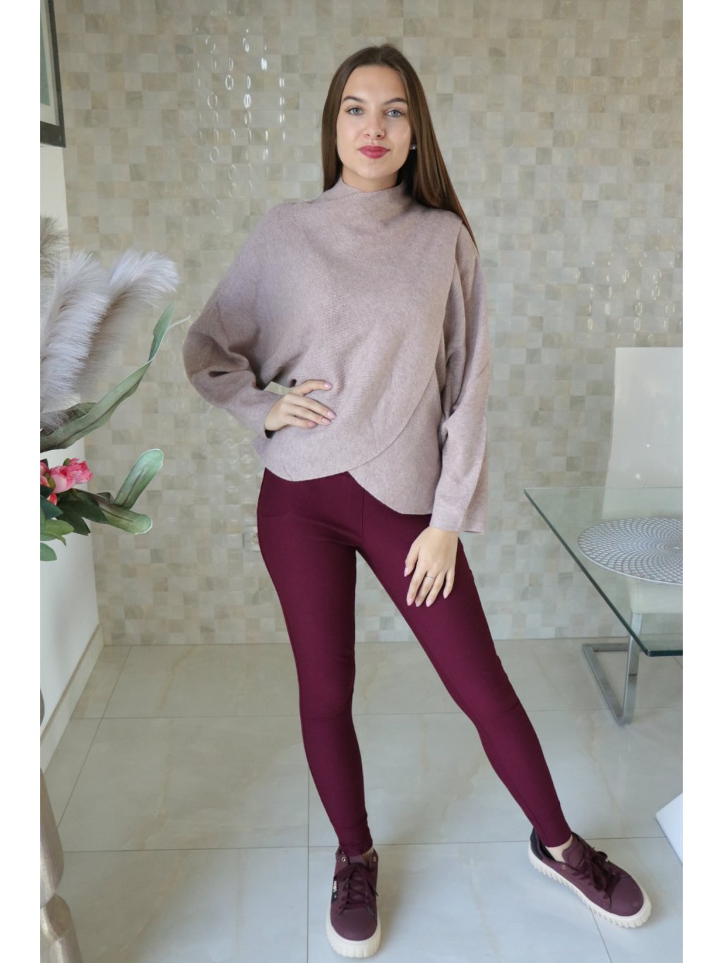 # Tmavě béžový svetr překřížený s netopýřím rukávem 🤎