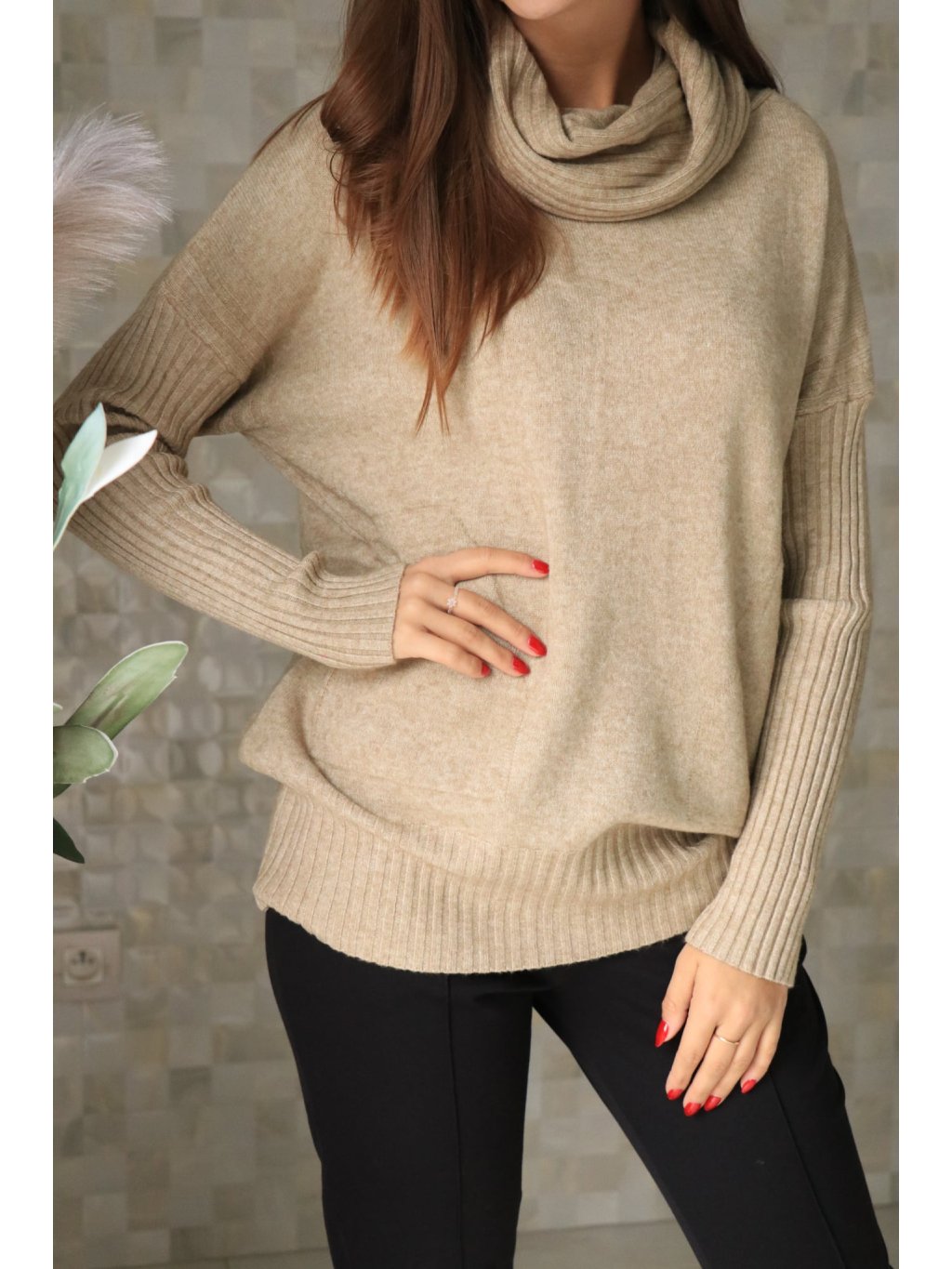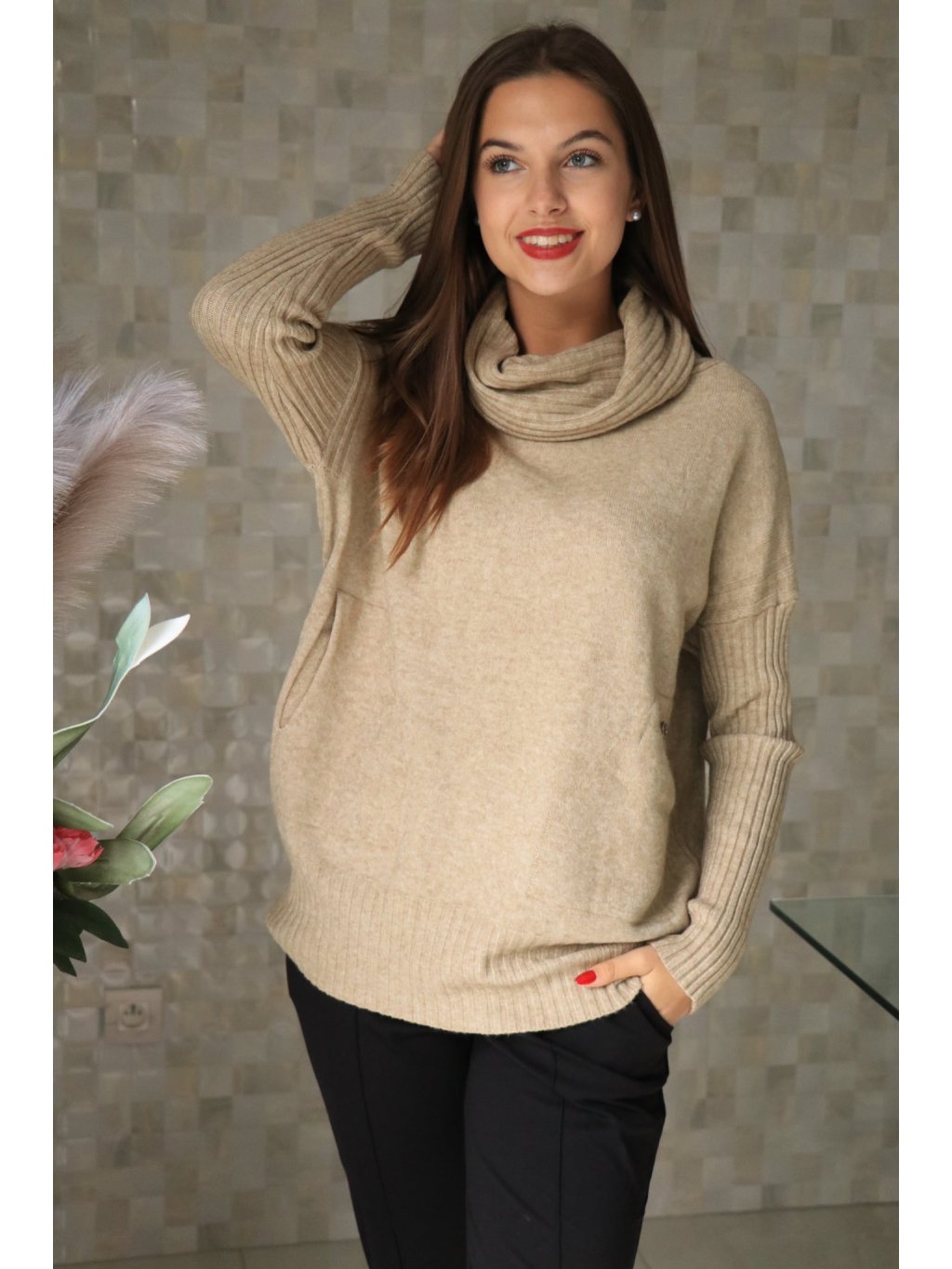 Tmavě béžový svetr s límcem a kapsami vel. L/XL