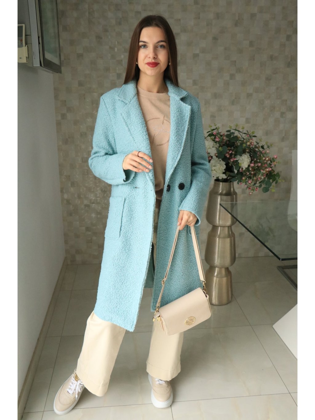 🌿 Tmavě mintový buklé beránkový kabátek – jarní kolekce 🌿