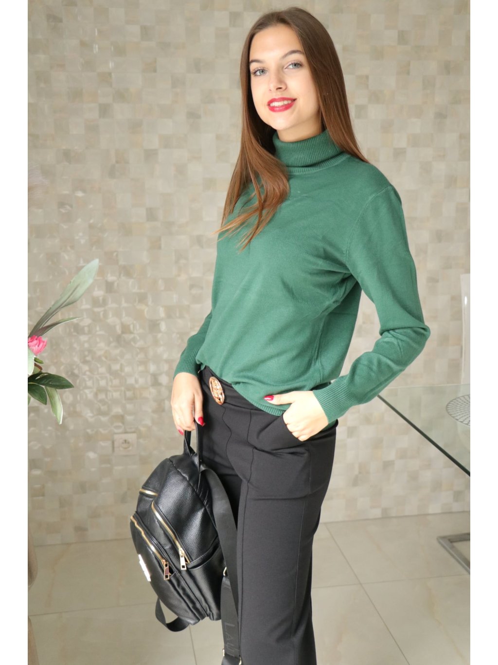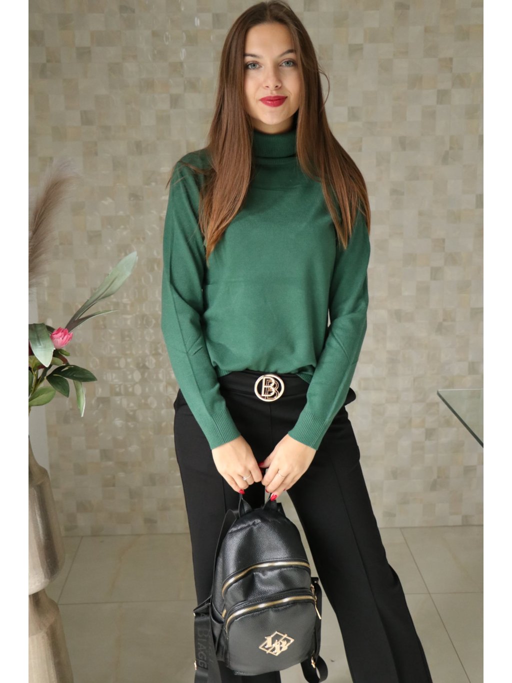 Objevte kouzlo podzimní elegance s naším tmavě zeleným svetříkem s rolákem. Nadčasový kousek, který dodá vašemu outfitu šmrnc a teplo.