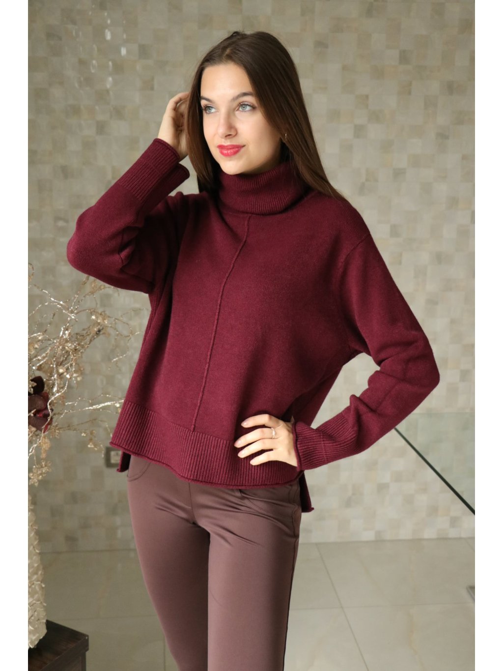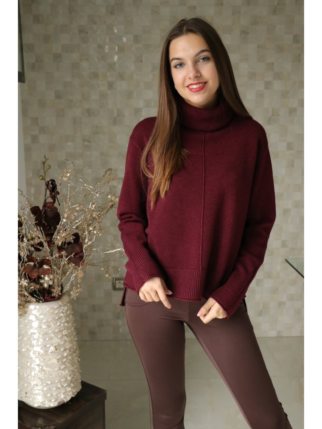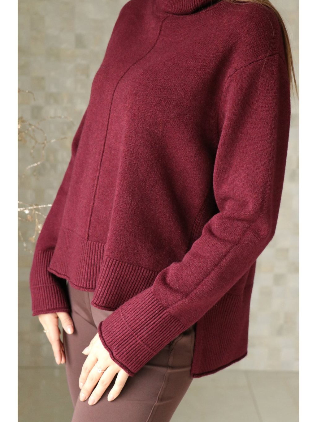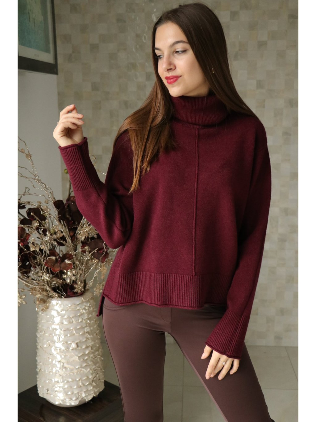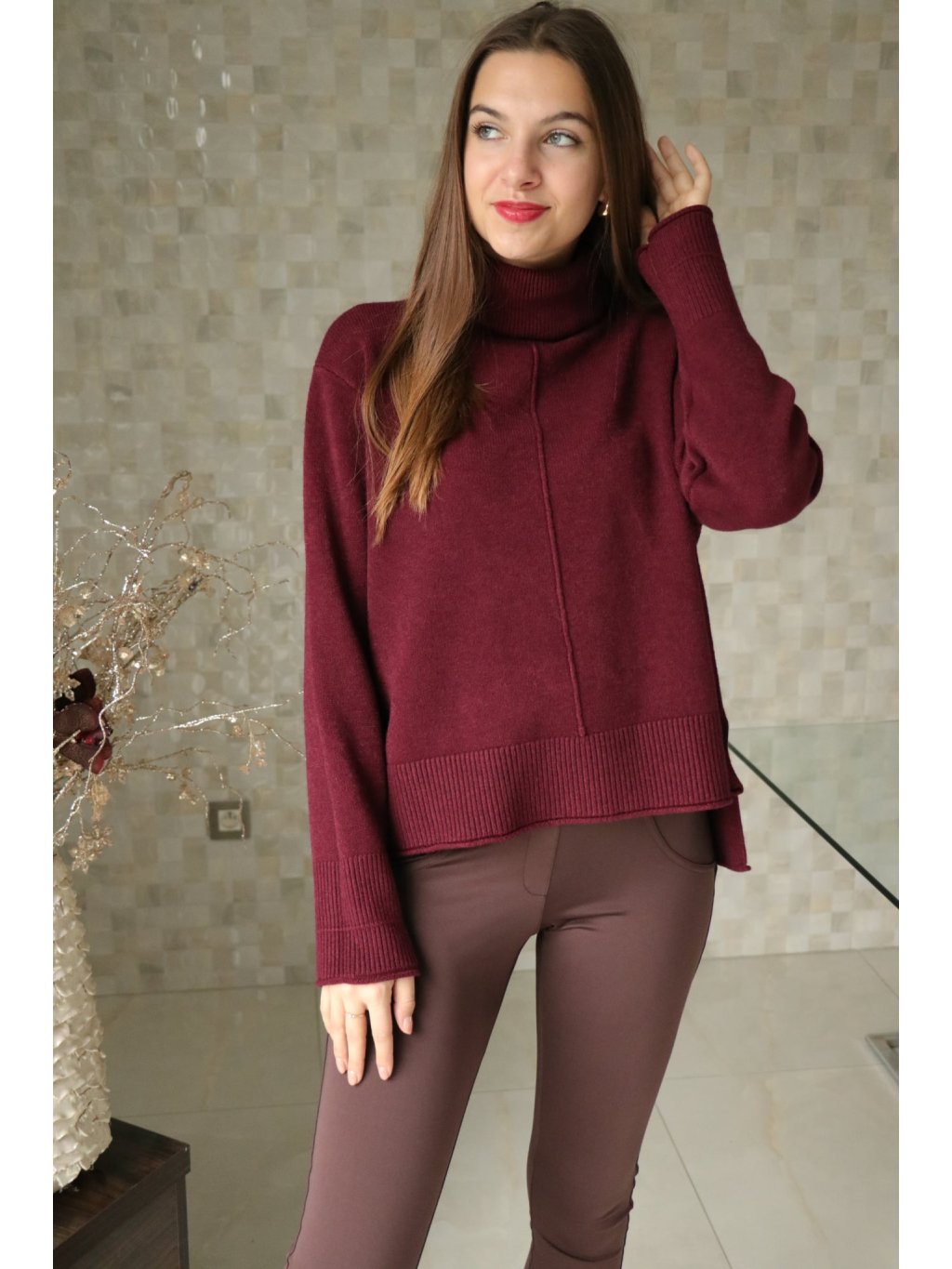 Vínový svetr s límcem a vykrojením dole vel. UNI
