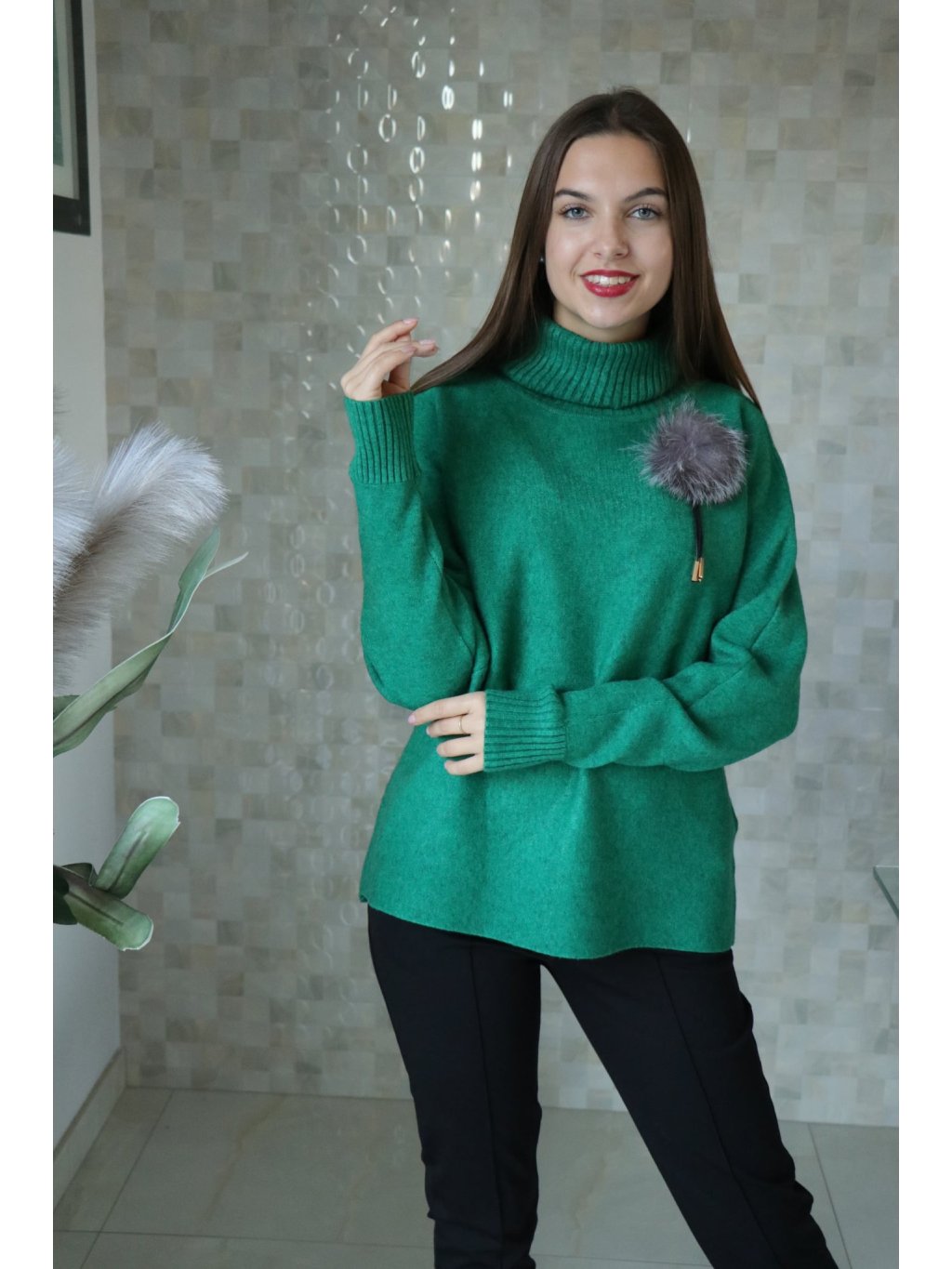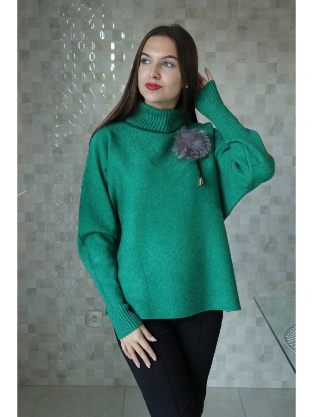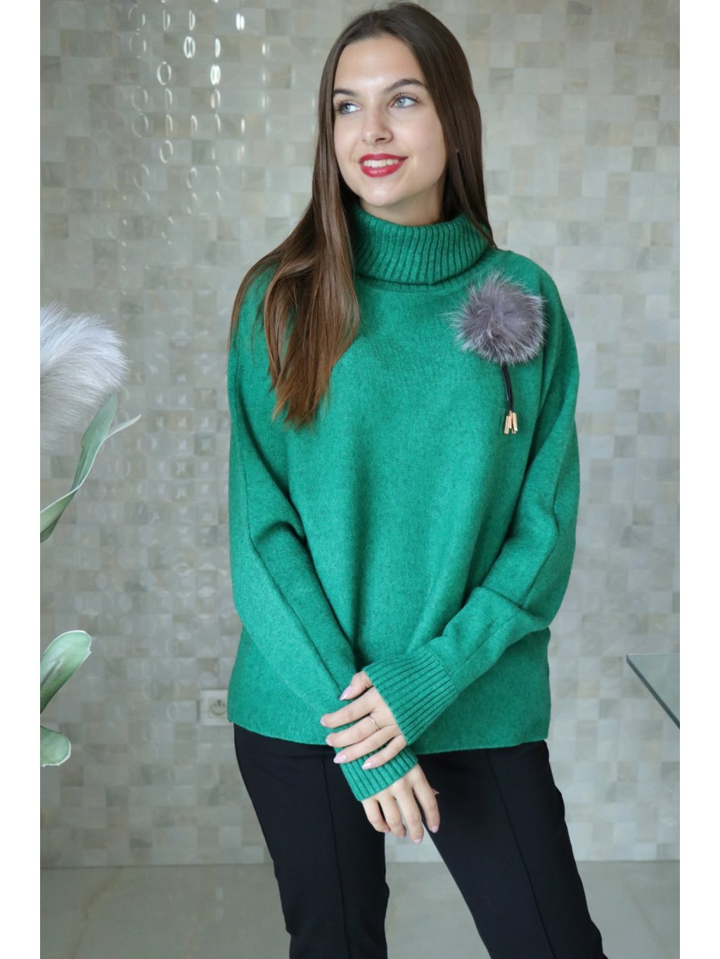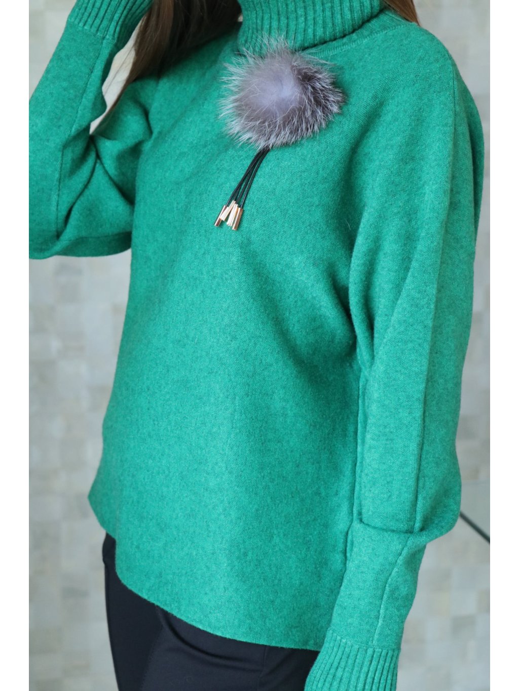 Zelený svetřík s kožešinkou, vroubkovaný límec a konec rukávu vel. UNI