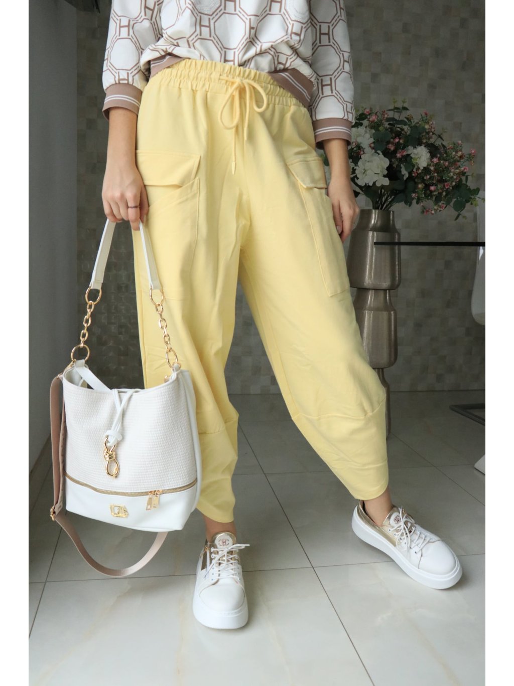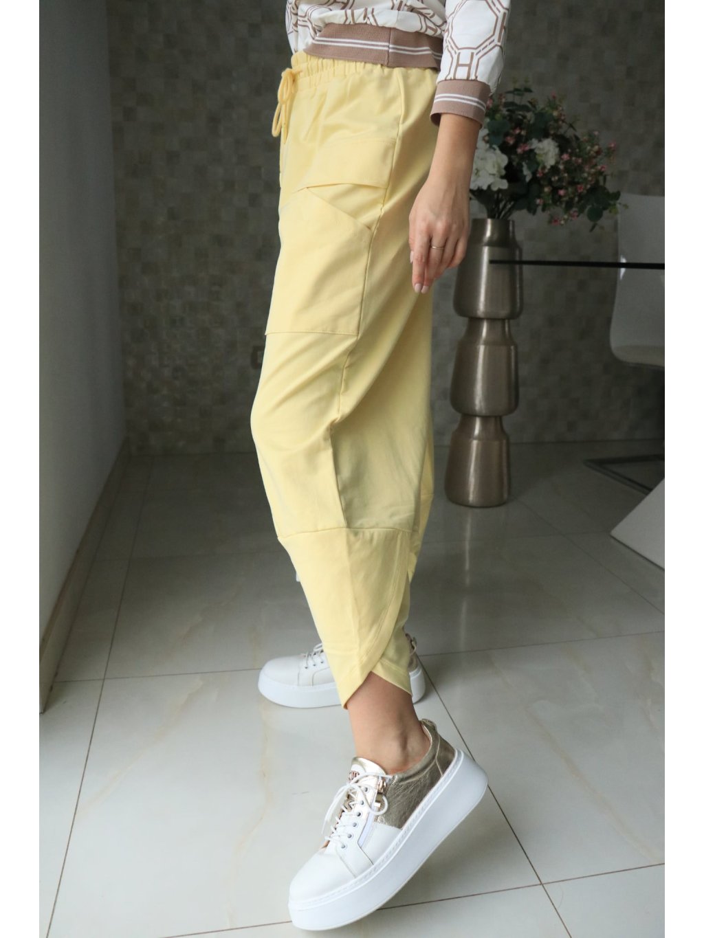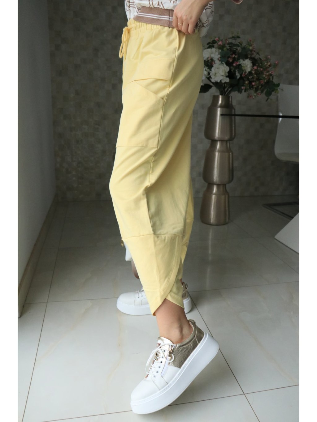 🌼 Žluté teplákové kalhoty s gumou v pase – jarní kolekce 🌼